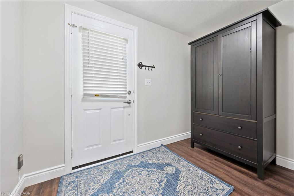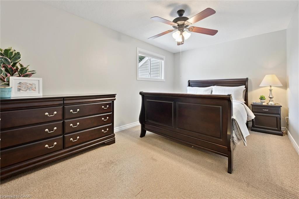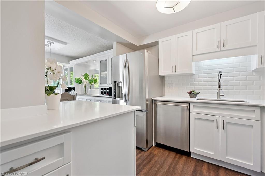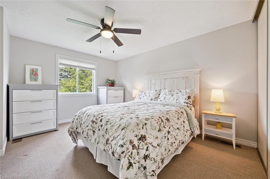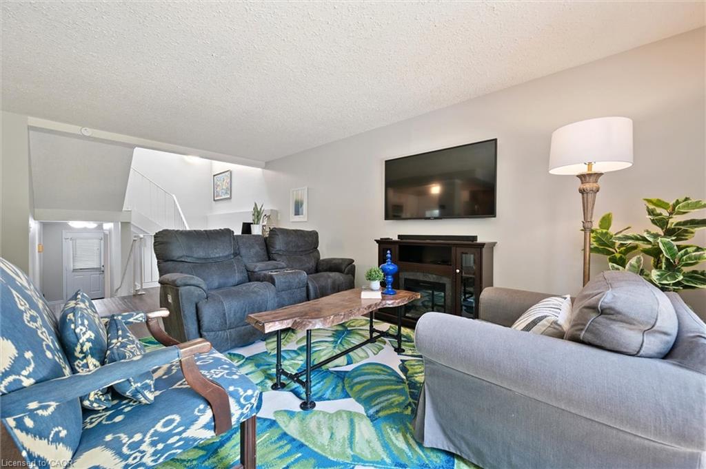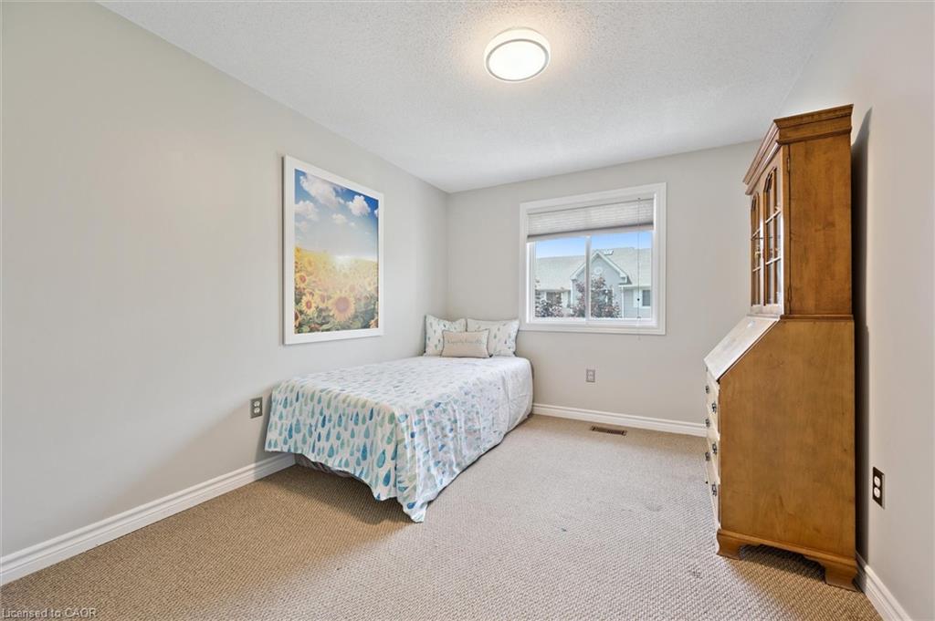 The bright walk-out basement is mostly finished and has a custom built-in entertainment unit. Walkout to a newer deck and fenced yard. Updated furnace and AC in 2022. Reasonable monthly condo fee includes water, roof which has been updated recently, and windows, along with landscaping and snow removal. Amazing location – near Conestoga College, quick access to 401, great amenities close-by include shopping, restaurants, library, park, playground, walking/biking trails, transit.
