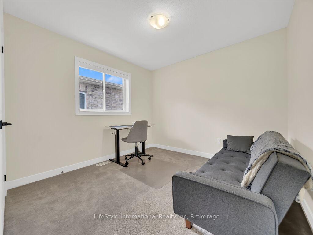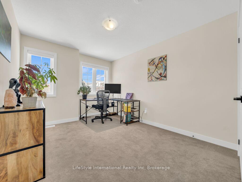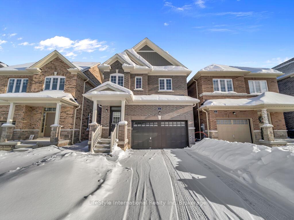 Welcome to this exceptional one-year-old luxury residence offering 4 bedrooms, 4 bathrooms, and a double car garage, perfectly situated in Guelph’s prestigious south end. Thoughtfully designed with premium upgrades throughout, the main level showcases elegant hardwood flooring, soaring 9-foot ceilings, and expansive windows that flood the space with natural light.The chef-inspired kitchen is a true centrepiece, featuring a striking waterfall quartz island, upgraded cabinetry, and stainless steel appliances-ideal for both everyday living and entertaining.The upper level is highlighted by a grand primary retreat with a spa-like 5-piece ensuite, complete with a soaker tub, double vanity, and a separate glass-enclosed shower. Three additional generously sized bedrooms, an upgraded 4-piece bathroom, and convenient second-floor laundry complete this level.The fully finished basement with a separate entrance adds exceptional versatility and future potential. This impeccably maintained, move-in-ready home offers refined finishes, modern comfort, and outstanding value in a highly sought-after location.