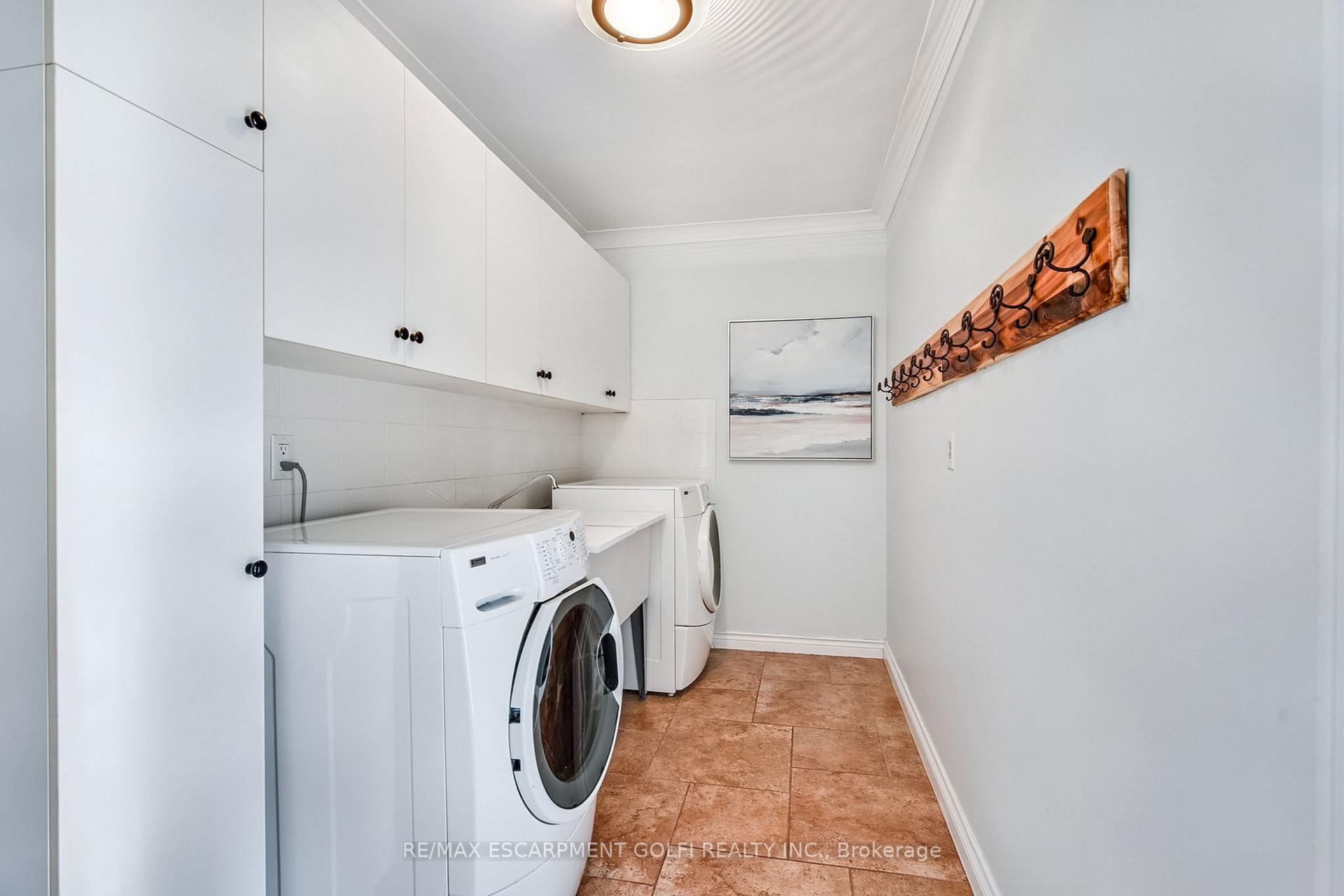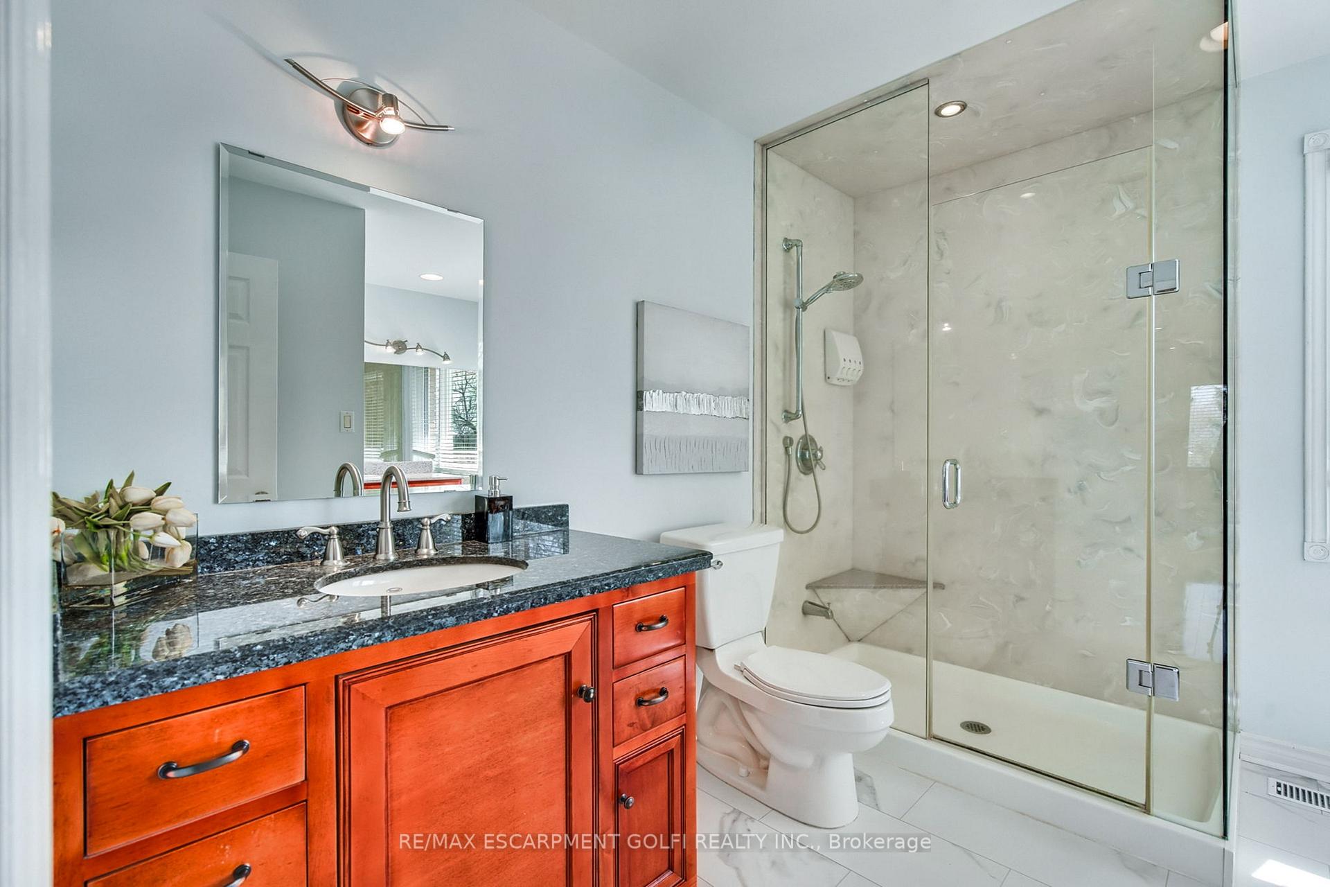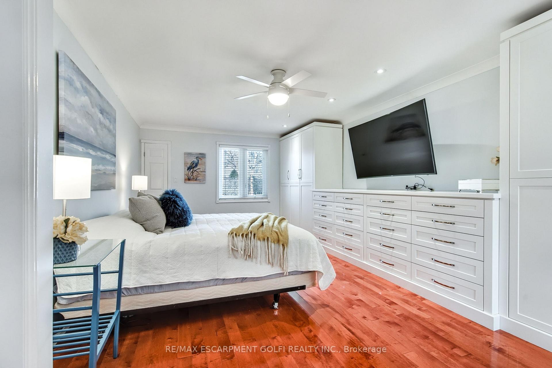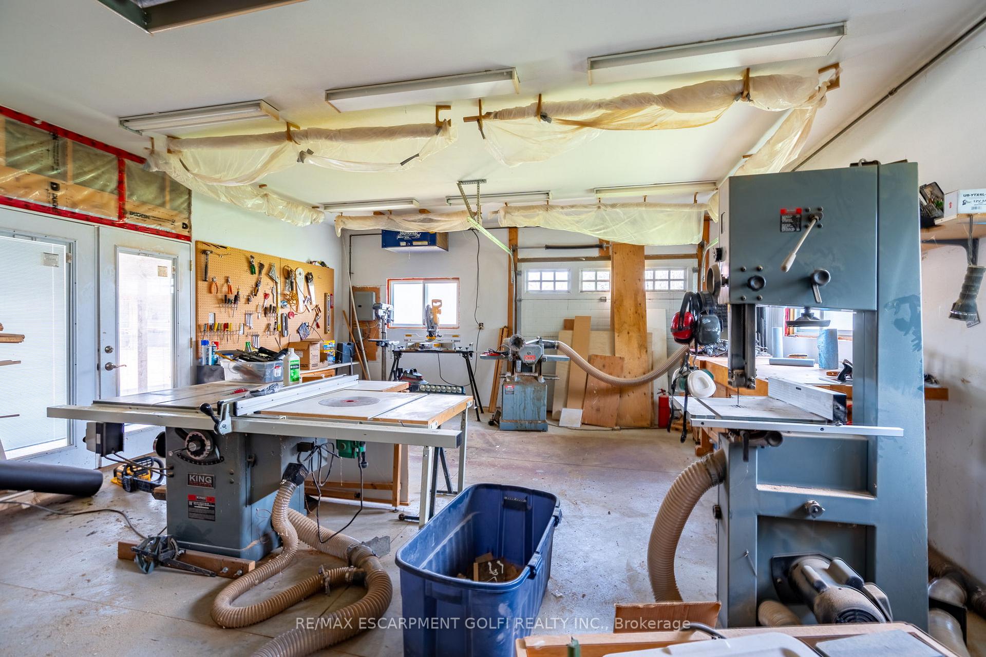 Situated on a quiet, beautifully manicured 0.99-acre lot in one of the most exclusive enclaves in the area, this impressive two-storey brick estate immediately captures attention with its elegant curb appeal, circular driveway, and landscaped centrepiece. This home has it all, offering four bedrooms, four bathrooms and over 4000 square feet of living space. No rear neighbours, an inground pool, hot tub, workshop & gazebo with a natural gas fireplace outside. The backyard is flat, unobstructed and surrounded by trees. Plenty of useable space for entertaining, family games/events and a huge ice rink. Breathtaking foyer illuminated by cascades of natural light and a stunning centre staircase. Exquisite Brazilian hardwood flooring flows seamlessly through the formal dining and entertainment spaces, where a natural gas fireplace adds a warm, ambiance ideal for both grand entertaining and intimate gatherings. The custom kitchen is a masterpiece of craftsmanship, featuring cherry maple oak soft-close cabinetry, under-cabinet lighting, heated floors, granite countertops, skylights, and a toe-kick central vacuum for effortless living. The step-down living room features large windows overlooking the private back yard, pot lights through-out and gleaming hardwood floors. The expansive primary suite impresses with two walk-in closets, custom built-in wall-to wall cabinetry, and an elegant ensuite featuring dual vanities and a walk-in shower. The fully finished basement features a spacious recreation room, a bathroom, a private office, an oversized storage room, and a separate walk-up staircase leading directly to the garage. Nestled in a prime location just five minutes from Waterdown, this location offers unrivaled access to excellent schools, parks, trails, golf courses, and fitness centers, a rare setting where every lifestyle amenity is within easy reach, yet the surroundings remain serene and exclusive.