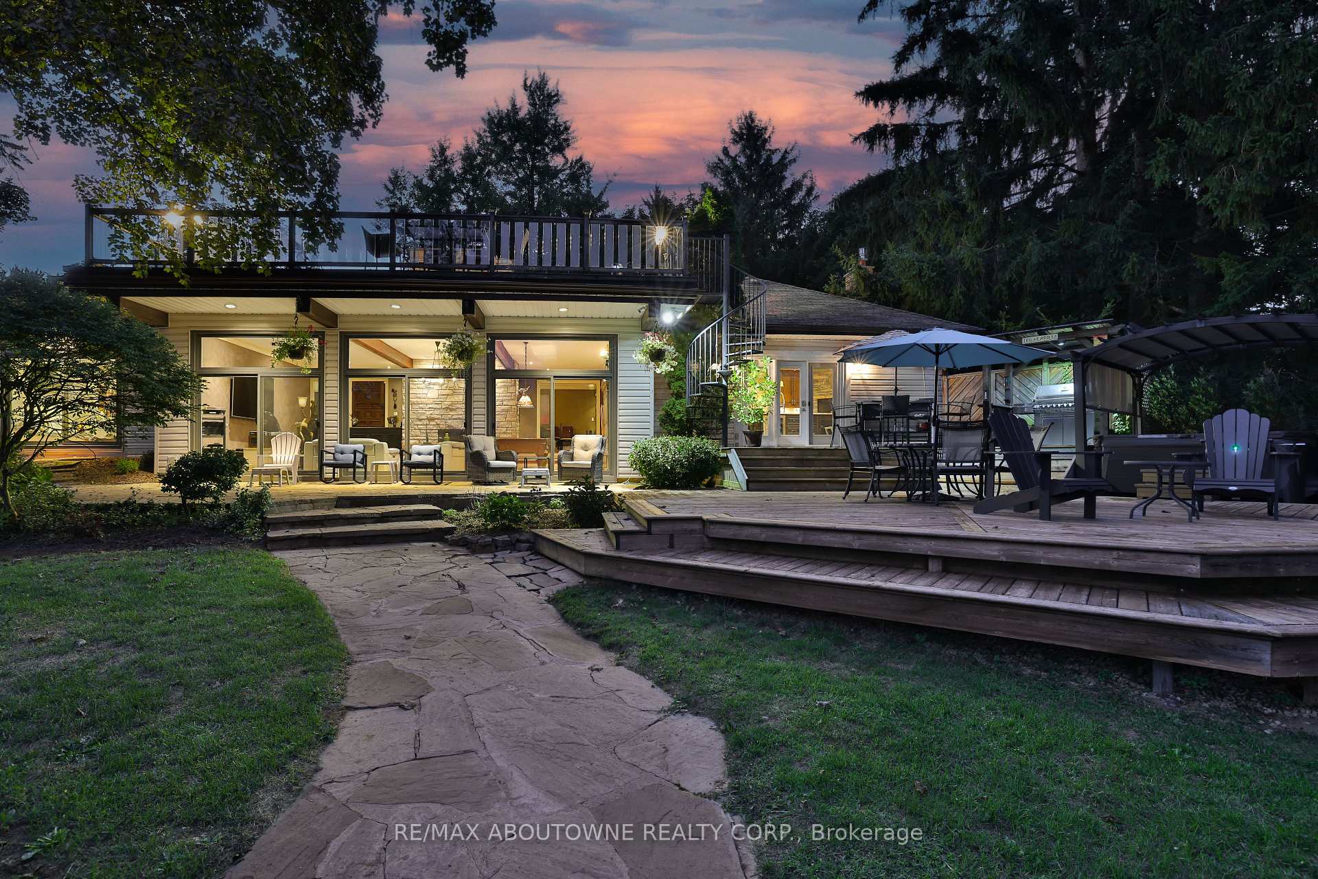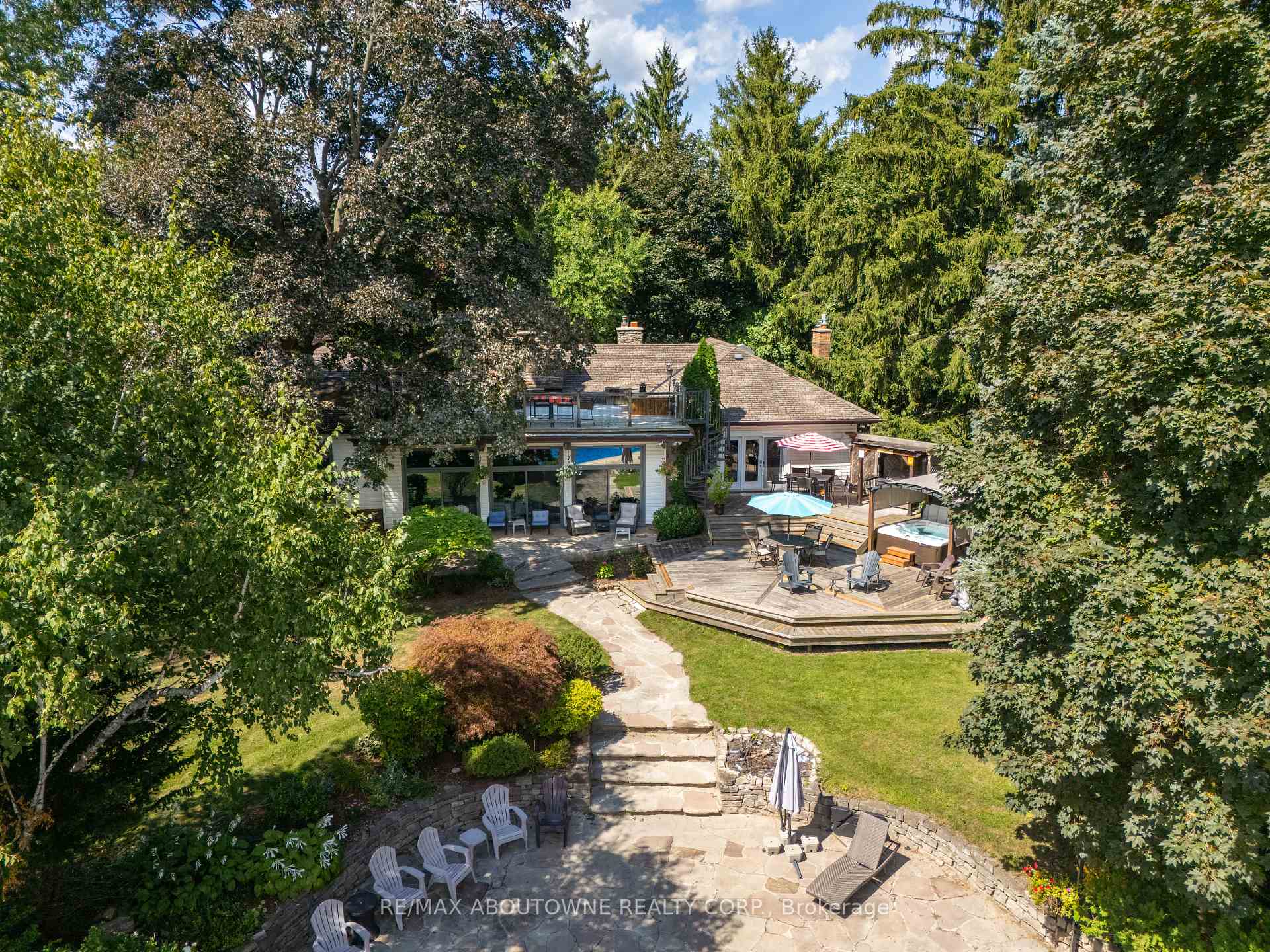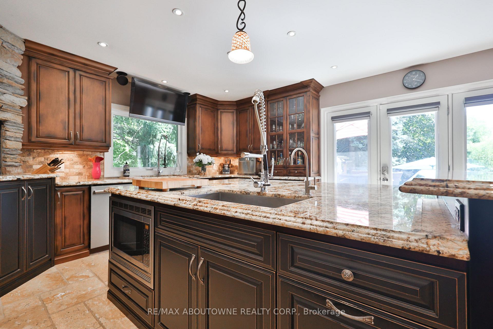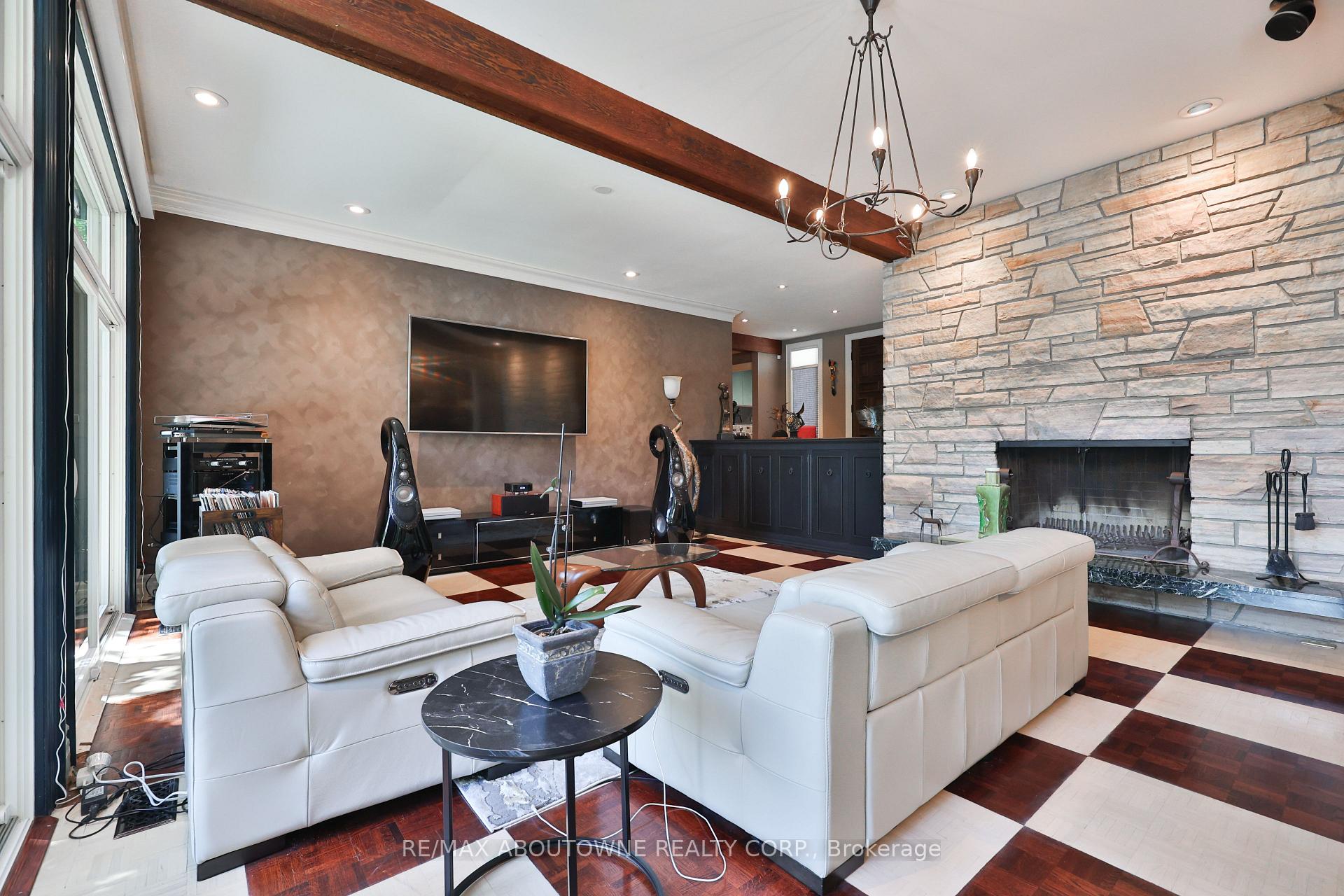 Welcome to Muskoka in the city! This extraordinary .96ac property, with its breathtaking views and unparalleled privacy. Just steps to Sealey Park and the beautiful Smokey Hollow Waterfall. The gorgeous sprawling bungalow features 6,317SF of high-end finished space (3,417 AG) which over the last 15 years has had over 1 mil. in whole home renovations. Just to mention a few: Georgian Bay Ledge Rock exterior and massive rooftop terrace to enjoy the spectacular scenery. CHEF’S CUSTOM DREAM KITCHEN with solid wood cabinets, gas fireplace, Viking Pro Series 48″ 6-burner double oven gas range with commercial grade exhaust hood, 3 dishwashers, Bosch B/I microwave, Electrolux 66″ fridge & freezer combo, Hisense beverage fridge, Reverse Osmosis drinking water system, Commercial draft beer taps with chilled lines and True Keg cooler, Barista bar with La Spaziale commercial espresso machine, Pioneer B/I 5.1 Dolby audio system with subwoofer, Sony 42″ TV and heated floors. Step into the Huge Great Room with 10′ ceilings. LED pot lighting T/O. Hardwood flooring T/O. Custom library/office with 2-sided gas fireplace and lounge area. Bathrooms have high-end fixturing, heated floors and extensive use of marble, granite and porcelain. Electronic blinds in kitchen, great room and primary bedroom. B/I temperature controlled wine cabinet in dining room. Special fiberglass roof shingles with 50 year warranty. Eavestroughs have LeafFilter screens. Main windows and patio doors replaced. Concrete pool has a special paint finish, new Hayward heater, pump and salt water filtration. Recently completed basement with industrial design inspiration and bedroom with Arizona vistas. 22,000 watt Generac back-up generator. 3-car garage, insulated, heated and air conditioned. Adding to its quaint charm, is the train track in the valley next to the property that sees 2-4 slow moving trains per week. Please click on the links below for brochure, inclusions and floorplans. Convenient to everything. 10+++