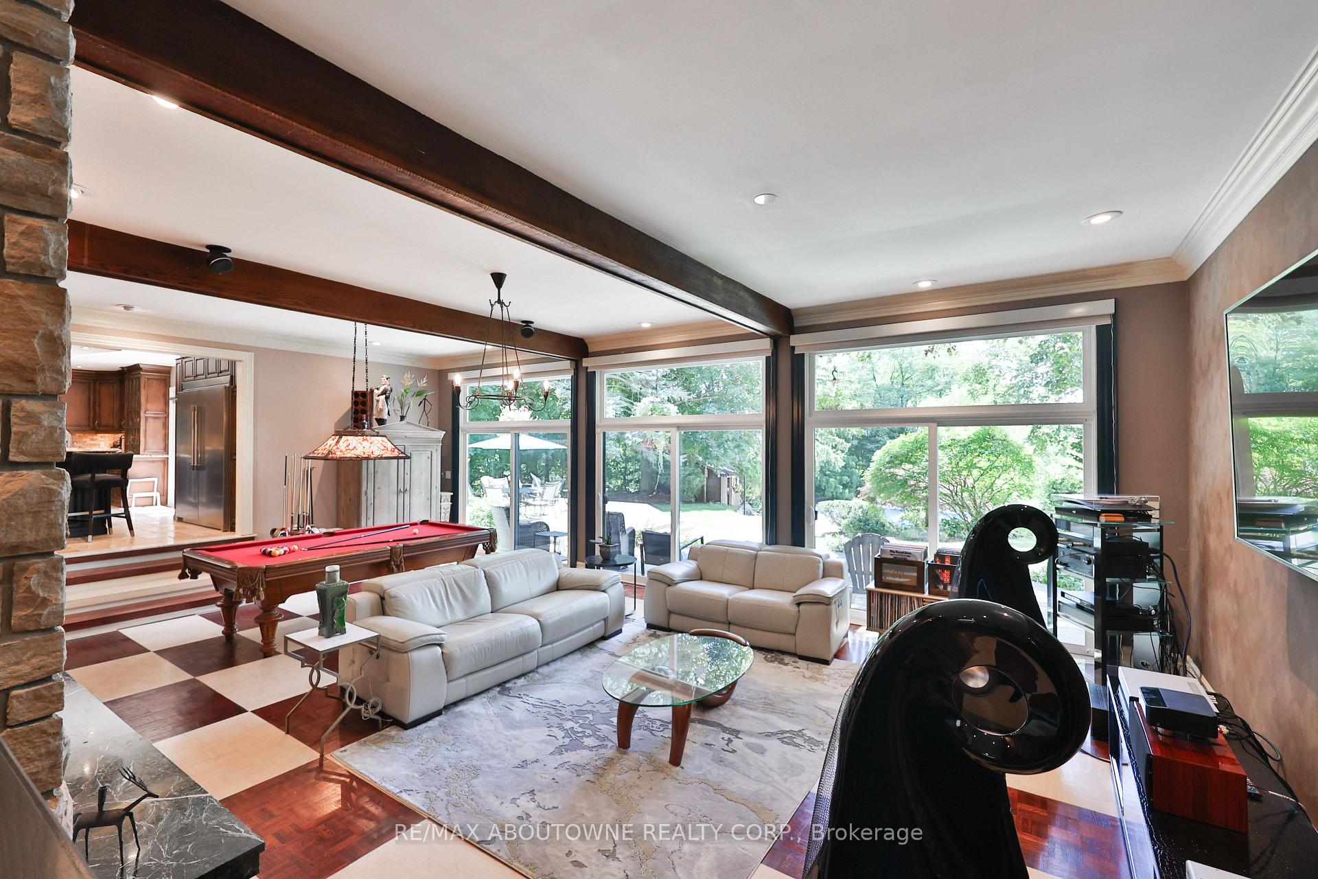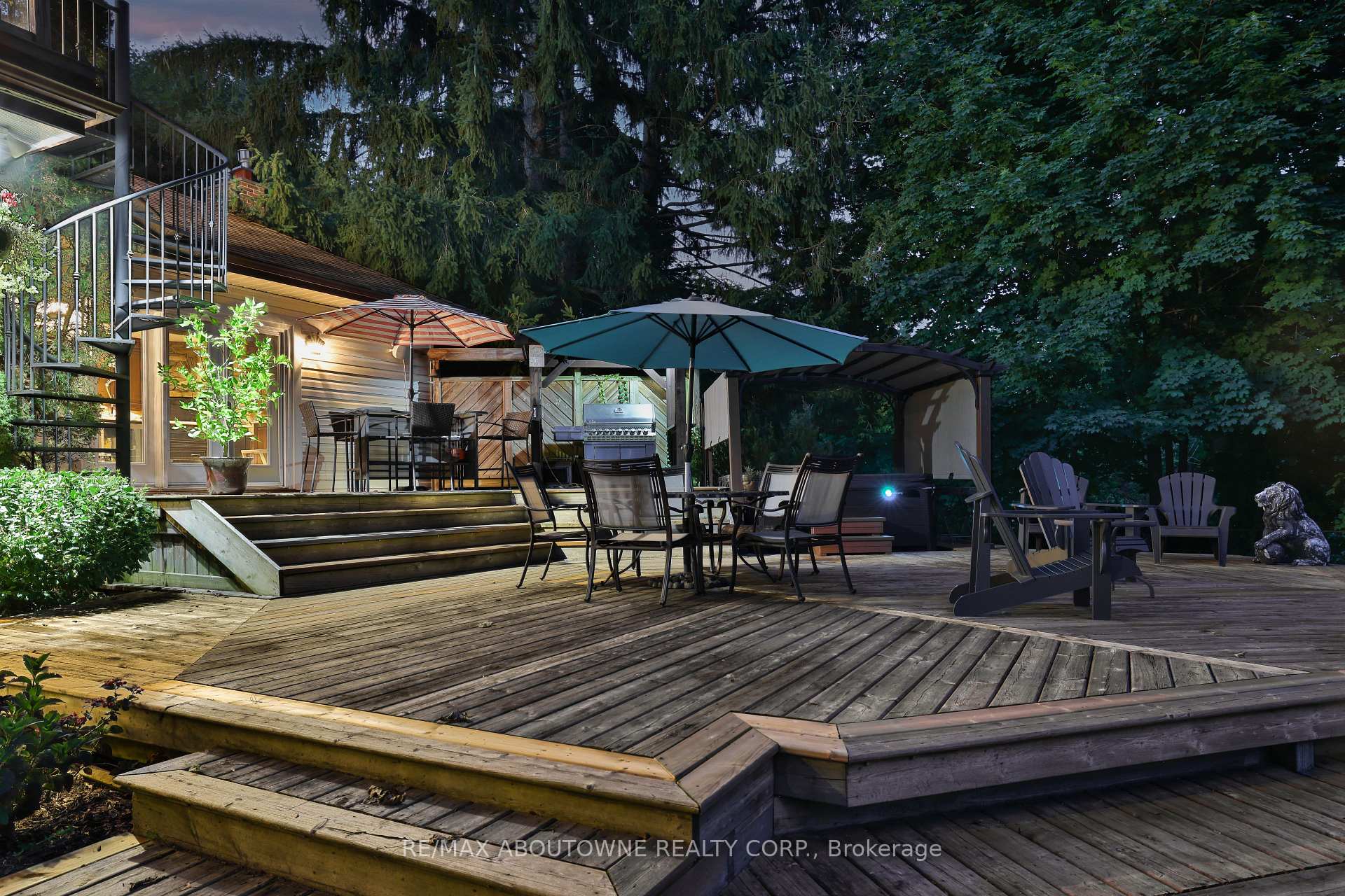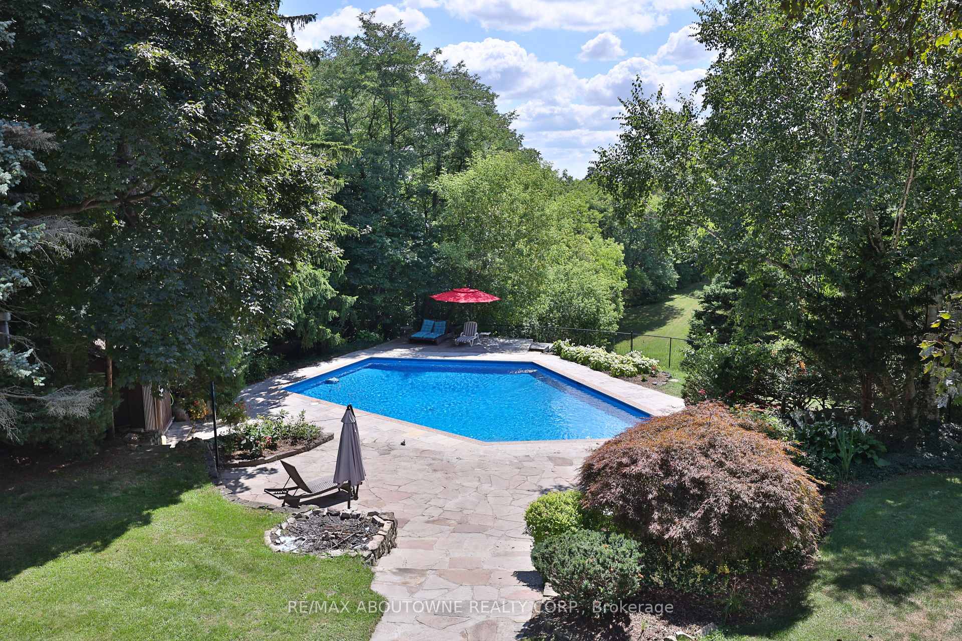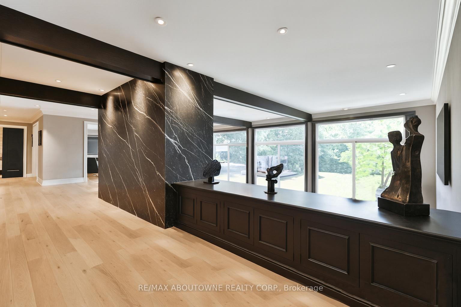 Welcome to Muskoka in the city! This extraordinary .96ac property, with its breathtaking views and unparalleled privacy. Just steps to Sealey Park and the beautiful Smokey Hollow Waterfall. The gorgeous sprawling bungalow features 6,317SF of high-end finished space (3,417 AG) which over the last 15 years has had over 1 mil. in whole home renovations. Just to mention a few: Georgian Bay Ledge Rock exterior and massive rooftop terrace to enjoy the spectacular scenery. CHEF’S CUSTOM DREAM KITCHEN with solid wood cabinets, gas fireplace, Viking Pro Series 48″ 6-burner double oven gas range with commercial grade exhaust hood, 3 dishwashers, Bosch B/I microwave, Electrolux 66″ fridge & freezer combo, Hisense beverage fridge, Reverse Osmosis drinking water system, Commercial draft beer taps with chilled lines and True Keg cooler, Barista bar with La Spaziale commercial espresso machine, Pioneer B/I 5.1 Dolby audio system with subwoofer, Sony 42″ TV and heated floors. Step into the Huge Great Room with 10′ ceilings. LED pot lighting T/O. Hardwood flooring T/O. Custom library/office with 2-sided gas fireplace and lounge area. Bathrooms have high-end fixturing, heated floors and extensive use of marble, granite and porcelain. Electronic blinds in kitchen, great room and primary bedroom. B/I temperature controlled wine cabinet in dining room. Special fiberglass roof shingles with 50 year warranty. Eavestroughs have LeafFilter screens. Main windows and patio doors replaced. Concrete pool has a special paint finish, new Hayward heater, pump and salt water filtration. Recently completed basement with industrial design inspiration and bedroom with Arizona vistas. 22,000 watt Generac back-up generator. 3-car garage, insulated, heated and air conditioned. Adding to its quaint charm, is the train track in the valley next to the property that sees 2-4 slow moving trains per week. Please click on the links below for brochure, inclusions and floorplans. Convenient to everything. 10+++