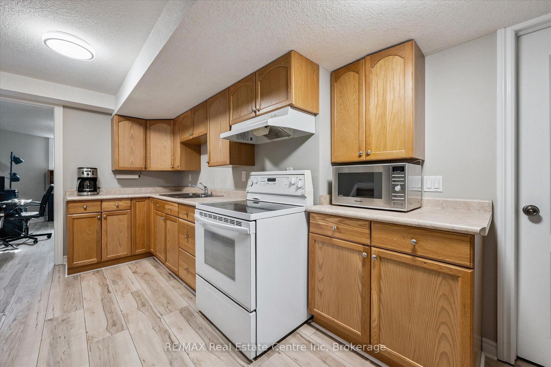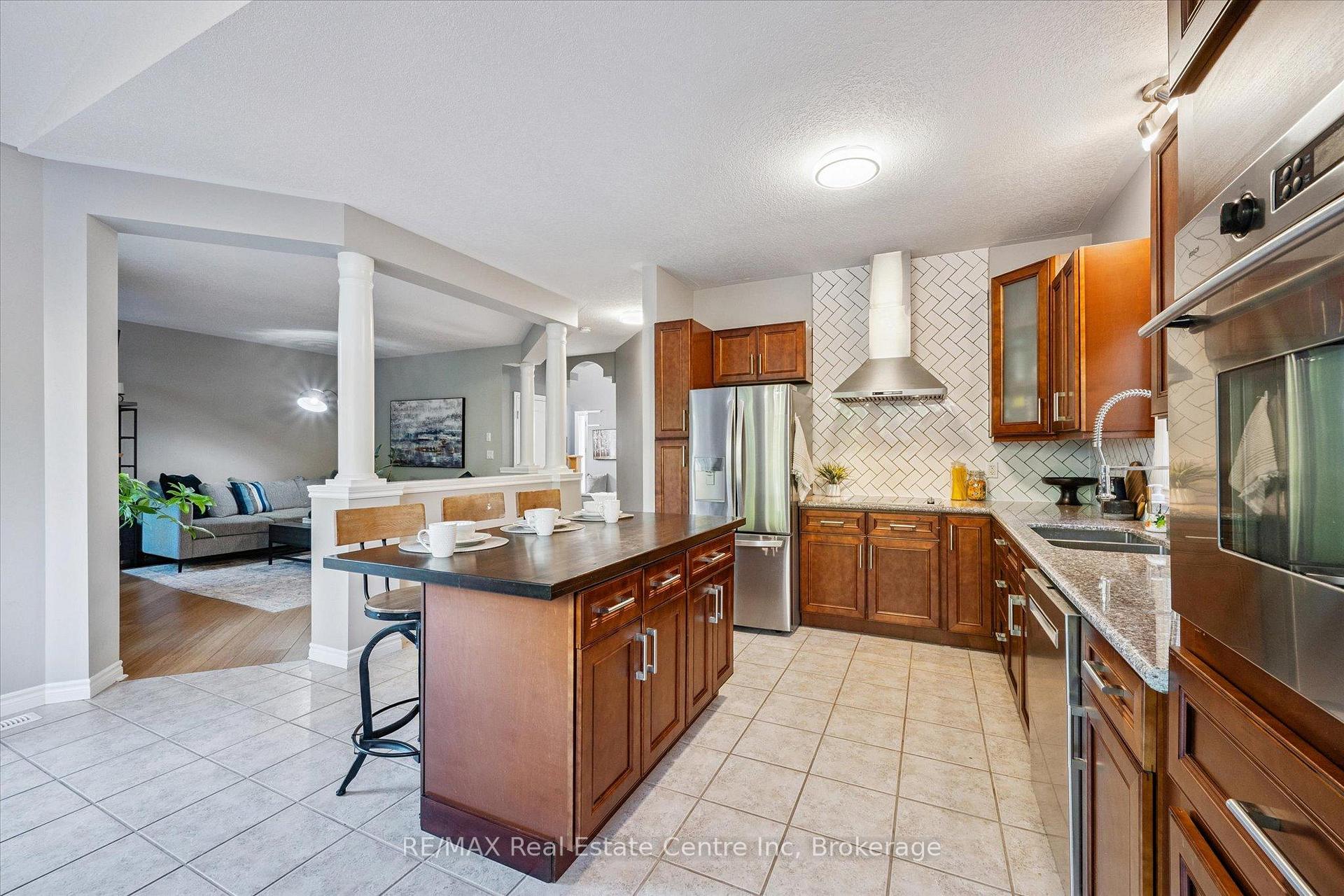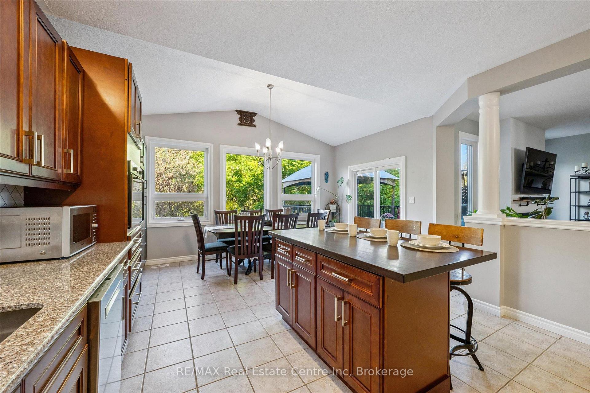 Impressive 5-bdrm, 3.5-bath home W/LEGAL 2-bdrm + den W/O bsmt apt offering 3400sqft of living space backing onto greenspace! Stunning curb appeal W/modern black dbl car garage & window framing (2023), front porch, distinctive architectural lines & landscaped front yard. Inside the main level offers spacious layout for modern living & entertaining. Front office W/tray ceilings, bamboo floors & bay window. Living room W/new gas fireplace is framed by 2 large windows. Chef-inspired kitchen W/dark cabinetry, granite counters, top-tier S/S appliances incl. B/I oven, tile backsplash & centre island W/bar-height wood countertop & seating. Dining area W/vaulted ceiling, custom wall of B/Is W/coffee bar, storage & wall of windows framing views of backyard. Step outside to upper-level Trex composite deck & take in views of greenspace beyond. 2pc bath completes this level. Upstairs primary bdrm boasts multiple windows, W/I closet & 5pc ensuite W/oversized vanity, quartz counters, dbl sinks, soaker tub & W/I glass shower. 2 add’l bdrms share 4pc bath with tub/shower & large vanity. Laundry area is located in the upper-level bathroom. Legal W/O bsmt apt offers 2 bdrms + den (one bdrm has B/I closet organizer), kitchen W/ample cabinetry & 4pc bath W/modern vanity, tub/shower & its own laundry. Luxury vinyl plank floors & sliding glass doors flood space W/natural light & provide access to lower deck & backyard. Ideal for multi-generational living or income potential, this well-designed apt offers opportunity to offset your mtg W/strong rental potential of approx. $3000/mth, private entrance & close prox. to UofG. Outside the fenced backyard offers lower deck W/stairs connecting to upper level, grassy area & peaceful wooded backdrop making it ideal space for families & pets. Upgrades: metal roof 2021, furnace & AC 2016, triple-pane windows Dec 2023, exterior & garage doors 2024 & fencing 2020. Walking distance to Rickson Ridge PS, mins from UofG & easy access to Hanlon Pkwy & 401