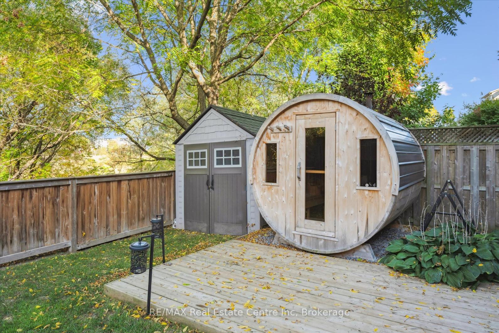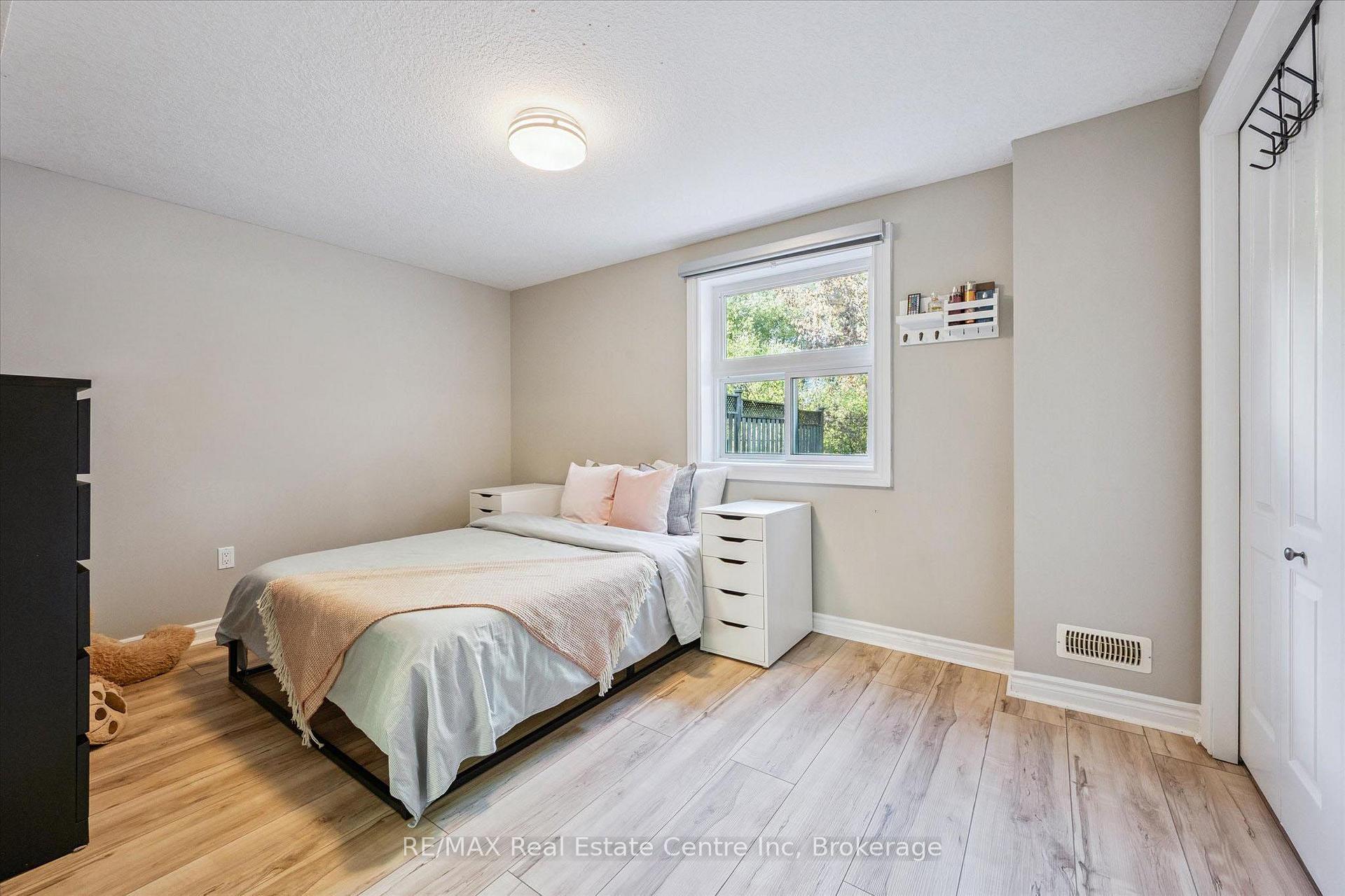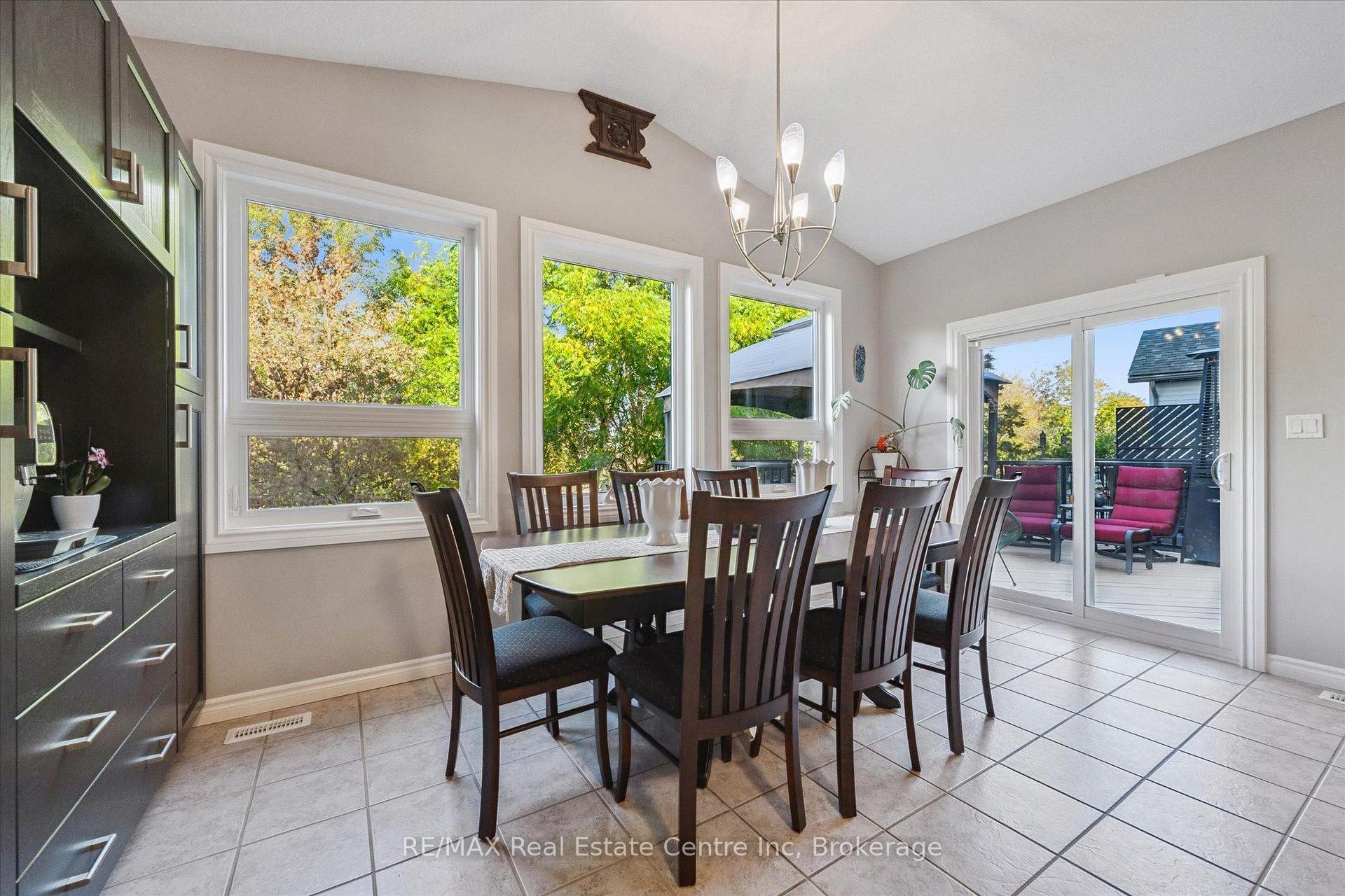 Impressive 5-bdrm, 3.5-bath home W/LEGAL 2-bdrm + den W/O bsmt apt offering 3400sqft of living space backing onto greenspace! Stunning curb appeal W/modern black dbl car garage & window framing (2023), front porch, distinctive architectural lines & landscaped front yard. Inside the main level offers spacious layout for modern living & entertaining. Front office W/tray ceilings, bamboo floors & bay window. Living room W/new gas fireplace is framed by 2 large windows. Chef-inspired kitchen W/dark cabinetry, granite counters, top-tier S/S appliances incl. B/I oven, tile backsplash & centre island W/bar-height wood countertop & seating. Dining area W/vaulted ceiling, custom wall of B/Is W/coffee bar, storage & wall of windows framing views of backyard. Step outside to upper-level Trex composite deck & take in views of greenspace beyond. 2pc bath completes this level. Upstairs primary bdrm boasts multiple windows, W/I closet & 5pc ensuite W/oversized vanity, quartz counters, dbl sinks, soaker tub & W/I glass shower. 2 add’l bdrms share 4pc bath with tub/shower & large vanity. Laundry area is located in the upper-level bathroom. Legal W/O bsmt apt offers 2 bdrms + den (one bdrm has B/I closet organizer), kitchen W/ample cabinetry & 4pc bath W/modern vanity, tub/shower & its own laundry. Luxury vinyl plank floors & sliding glass doors flood space W/natural light & provide access to lower deck & backyard. Ideal for multi-generational living or income potential, this well-designed apt offers opportunity to offset your mtg W/strong rental potential of approx. $3000/mth, private entrance & close prox. to UofG. Outside the fenced backyard offers lower deck W/stairs connecting to upper level, grassy area & peaceful wooded backdrop making it ideal space for families & pets. Upgrades: metal roof 2021, furnace & AC 2016, triple-pane windows Dec 2023, exterior & garage doors 2024 & fencing 2020. Walking distance to Rickson Ridge PS, mins from UofG & easy access to Hanlon Pkwy & 401