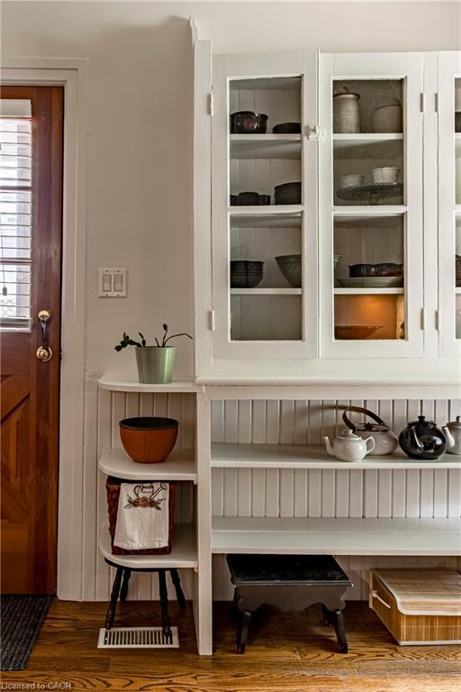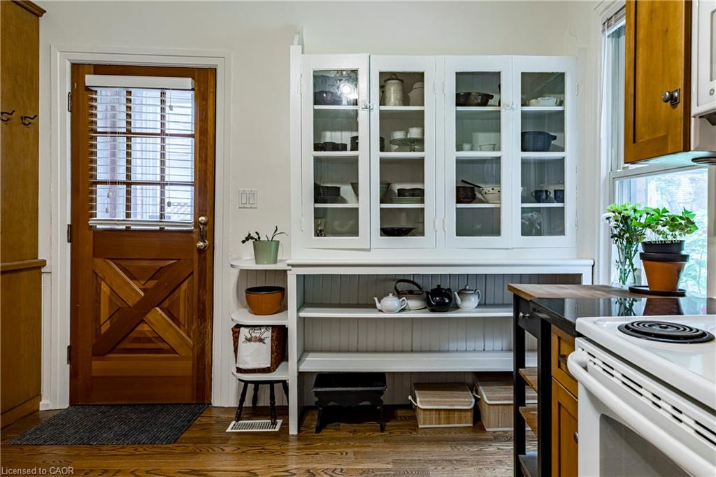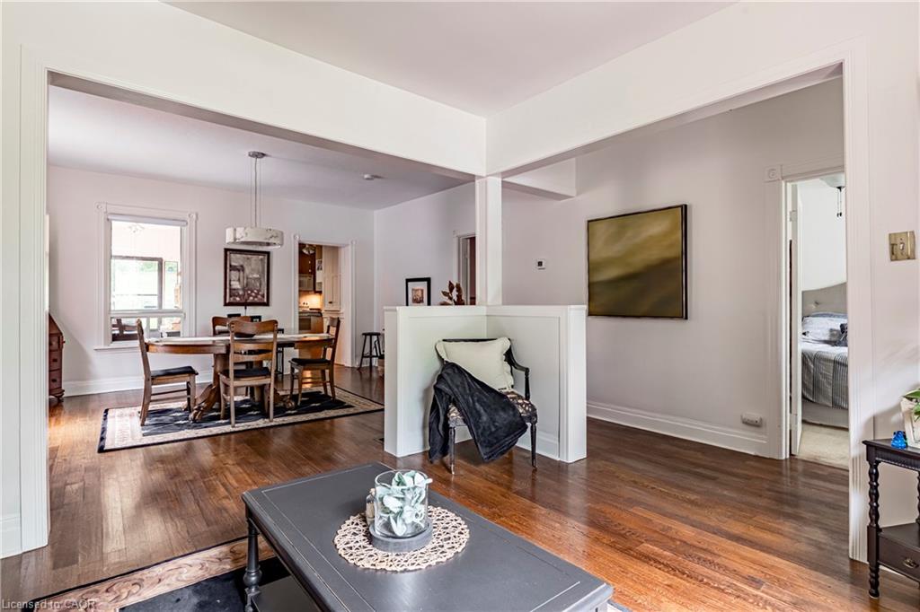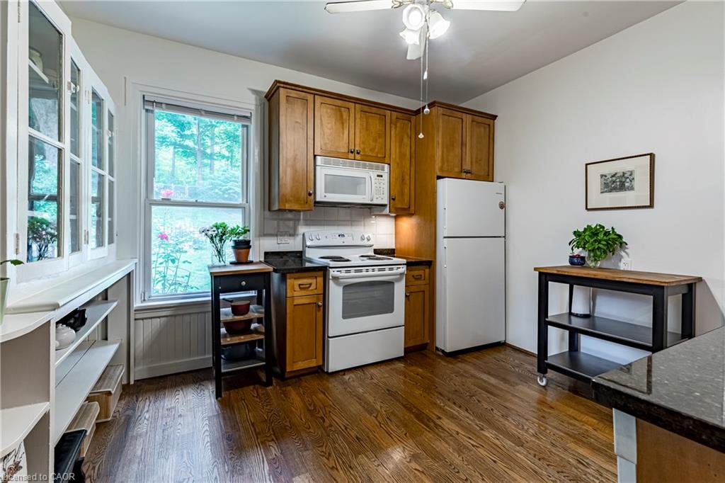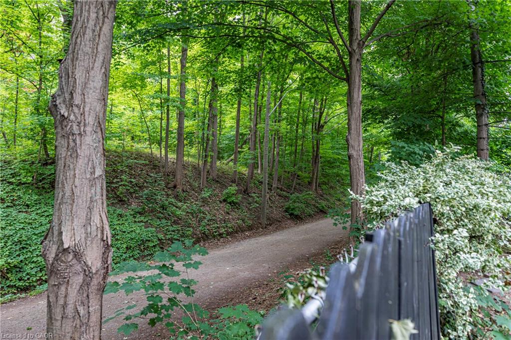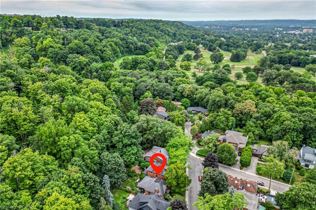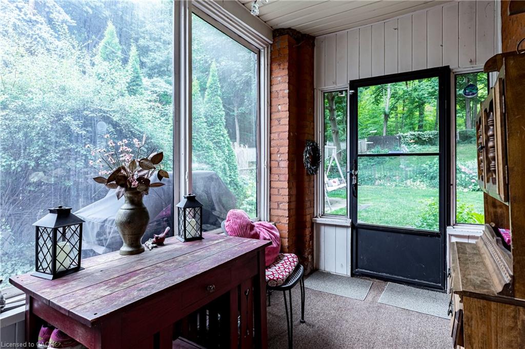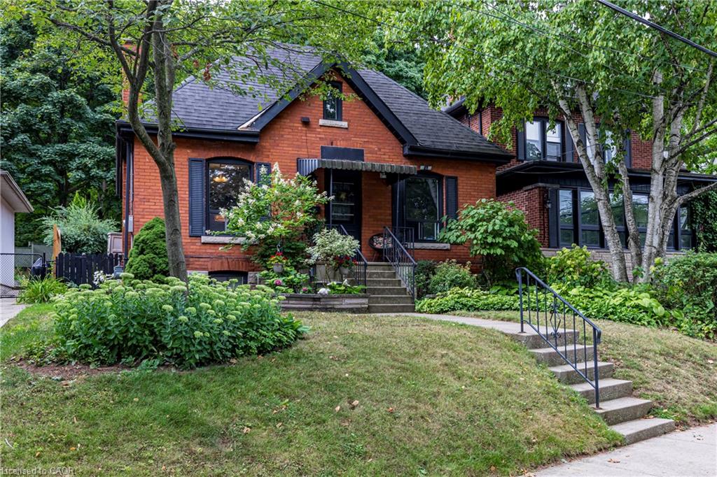 Charming brick one-floor original cottage built in 1917 backing onto the Bruce Trail & steps to Chedoke Golf Course between the top of Chedoke & Flatt Ave. This is a beautiful property set in a sought-after neighbourhood and a rare opportunity with great potential for the 1st-time purchaser or retiring couple. Current owner for 2 decades who updated this property to 2 bedrooms (was 3) with solid wood flooring in the separate dining room, living room and kitchen. The kitchen, updated with quality cupboards and an attractive period piece, leads to a bathroom and laundry area with slate heated flooring (stackable washer and dryer on this level). On the left of the kitchen is a 3-season sunroom (sq. footage not included in floor plan) looking over the trails and escarpment which is a fabulous view. Close to all conveniences, “403”, parks, trails, McMaster, excellent schools, and Locke St. Some updated include the Furnace 2020, Shingles 2010, Central Air 2025, Electrical 2005. Seller has applied for a single driveway permit from the city. Great patio area with private fenced backyard, this home with a full unfinished basement has endless possibilities for the appreciative buyer. RSA