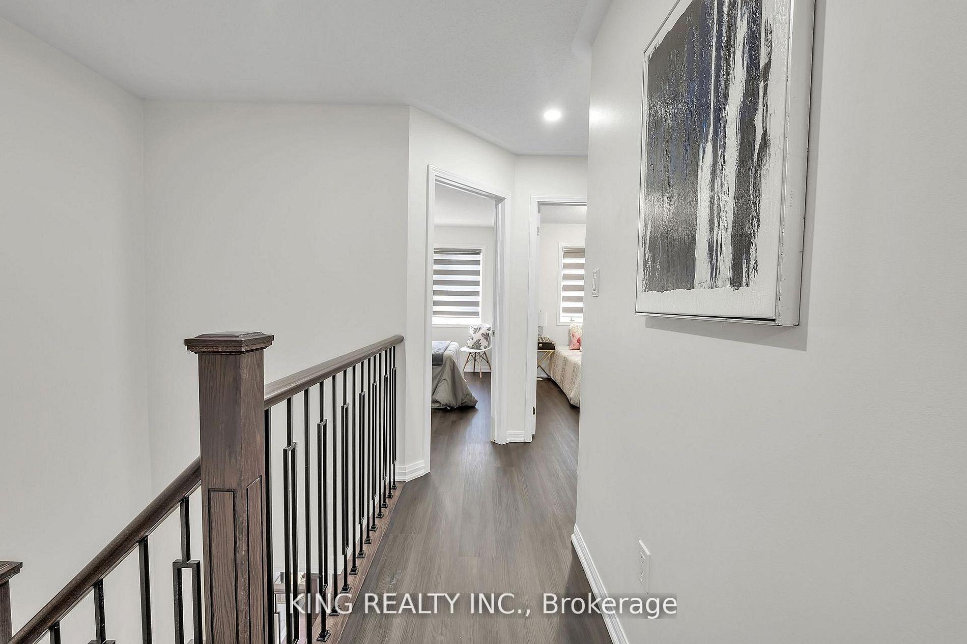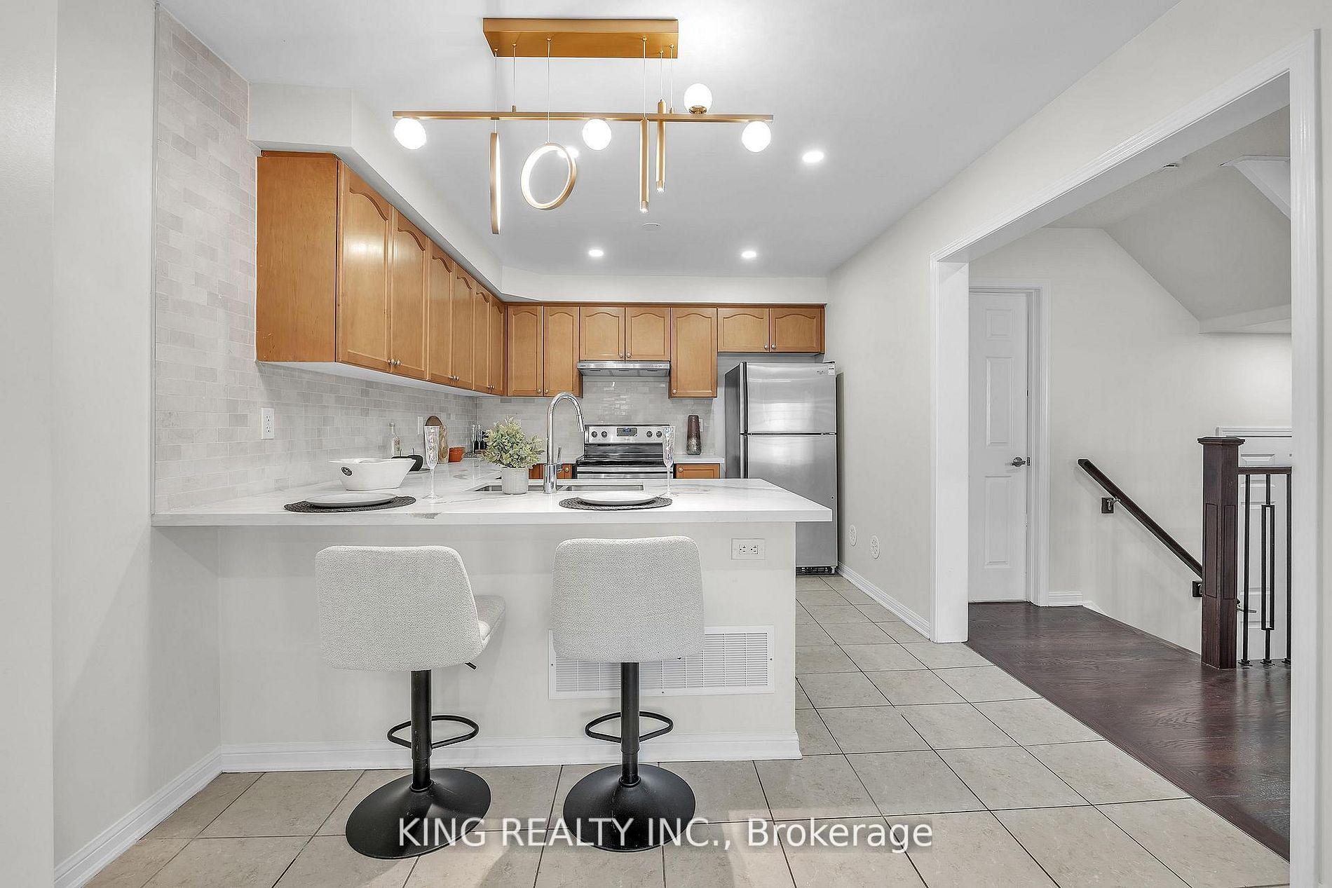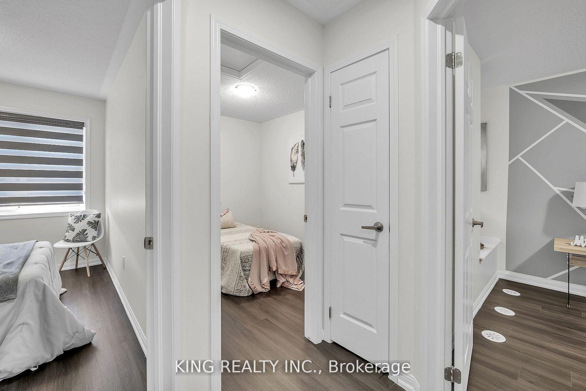 Outstanding Opportunity in South Milton! This spacious 3-level freehold townhome Approximately 1356 sqft. offers perfectly situated near top-rated schools, parks, sports complexes, hospital, and shopping. The ground level features a generous mudroom/den with inside access to the garage and utility room, ideal for families and everyday convenience. enhanced with pot lights for a bright, airy feel The second level showcases a bright open-concept living and dining area with hardwood flooring throughout. the dining area offers a walkout to a private balcony, large elevated approx. 10’8″x8′ balcony/terrace, perfect for relaxing or entertaining and upgraded laundry Machines in Laundry room. The spacious kitchen is designed for functionality and style, offering ample counter and cupboard space, stainless steel appliances (stove, fridge, built-in dishwasher), and an elegant tile backsplash. A hardwood staircase leads to the upper level, which features three well-appointed bedrooms. The primary bedroom includes a large closet,. Two additional bedrooms at the front of the home offer windows, closets,, along with a second main bathroom. Extra-long driveway fits 2 cars + 1 in garage