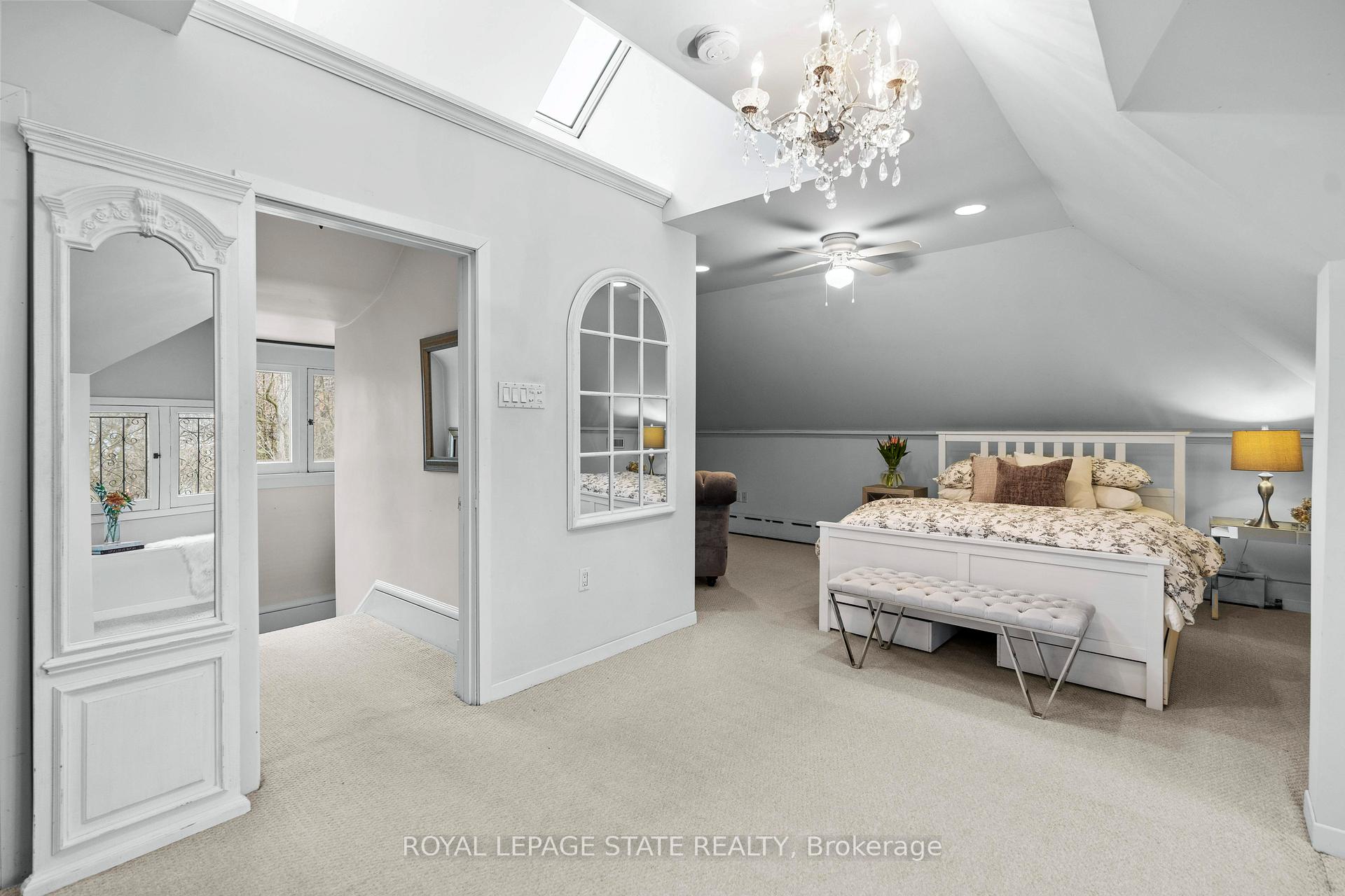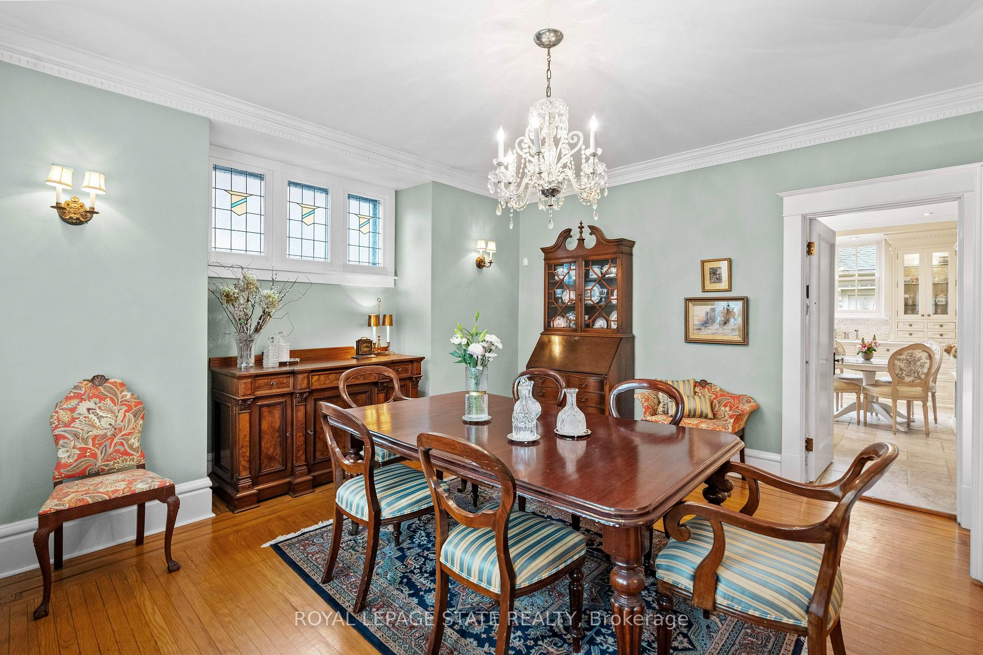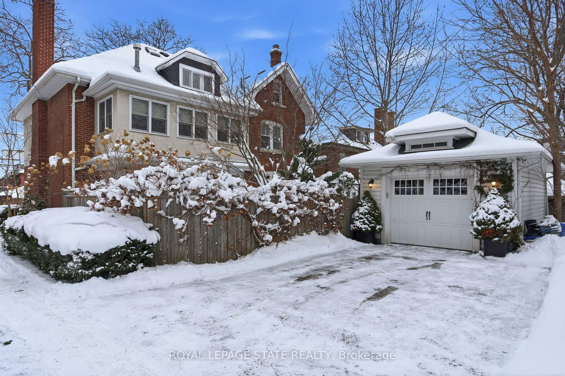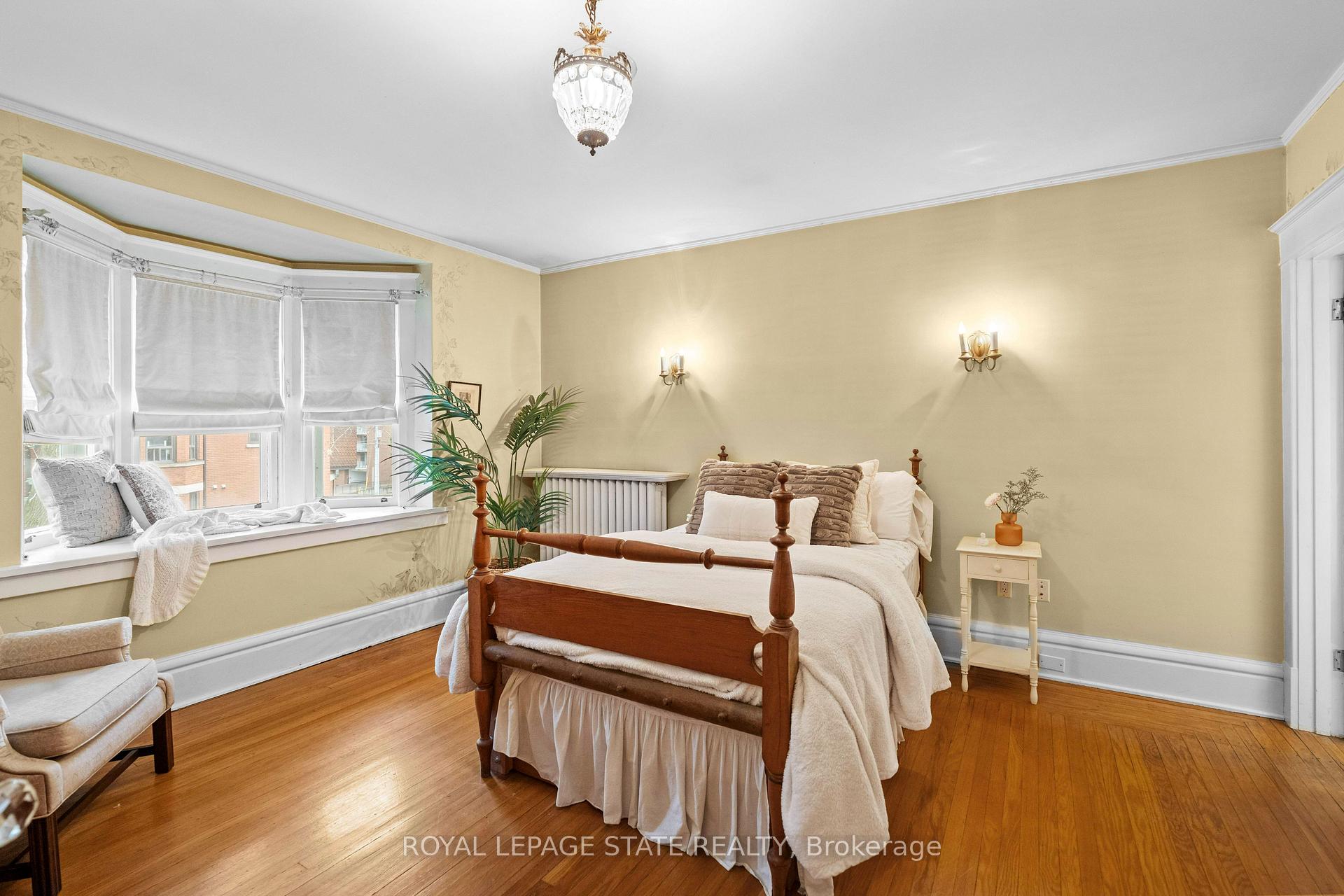 This stately 2.5-stry residence sits on a mature 46′ x 85.33′ lot in Hamilton’s prestigious Durand neighbourhood. Showcasing timeless curb appeal, the front walkway leads to a covered porch framed by Doric columns & an entry door w/ wrought-iron grillwork. Inside, a grand foyer w/ crown moulding, a sweeping staircase & French doors introduces elegant principal rms. The formal liv rm feat a gas FP, an intricate mantle w/ hidden side cabinet, & windows overlooking both gardens. The adjoining din rm impresses w/ built-in cabinetry, leaded stained glass, and rich millwork throughout. The kitchen is a showpiece, featuring heated limestone floors, custom cabinetry w/ beveled glass, marble counters, undercab lighting, pantry, & premium S/S appliances incl a Viking gas range, Sub-Zero fridge, & Miele d/w. Surrounded by windows, it opens to a covered porch w/ a Phantom screen, perfect for indoor-outdoor living. A handy mudroom w/ dbl mirrored closet completes the main lvl. Heading up the main staircase, a landing of stained glass welcomes you to the 2nd level, feat a 25.9′ x 13′ primary suite w/ sitting area, dual closets, & access to a bright den/sunroom (heated flrs). 2 add’l bdrms – one w/ a bay window & ensuite, the other with garden views – plus a 4-pc bath w/ a jetted tub, stained glass, & hand-painted murals complete this lvl. The 3rd lvl offers a private bdrm retreat w/ a 3-pc ensuite, skylights, gas FP, storage, & cozy sitting nooks. The lower lvl adds laundry w/ custom cabinetry, a 2-pc bath, storage & workshop space. Outside, enjoy a private yard w/ a fountain, covered composite porch, retractable awning, gas BBQ hookup, detached garage + surfaced parking for 2 & security lighting. Add feat incl: hardwood flrs, custom window coverings, c/air, HEPA air purifier, a security sys & more. Walkable to the Locke St cafés, boutiques, art galleries, hospitals, GO Transit, parks & trails – Durand offers historic character & an unmatched lifestyle of quiet sophistication.