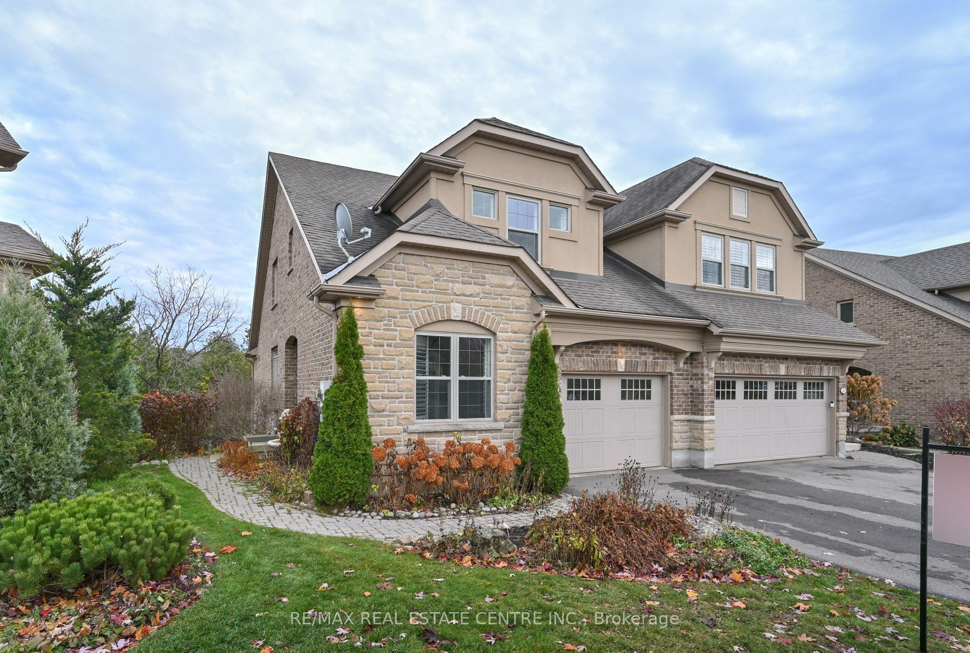This impressive brick and stone home will take your eye! Located on a quiet cul-de-sac in the quaint village of Rockwood, this freehold beauty is positioned on a large pie shaped premium ravine lot. No lawn mowing and no snow shoveling – it’s all done for you! Backing onto mature trees, this tastefully decorated and well cared for home offers a spacious foyer, a den that could be used as an office or 3rd bedroom, dining room. The kitchen is spectacular! Tons of custom walnut cabinetry, centre island, granite counters, stainless appliances overlooking the living area that features a gas fireplace with built in shelving and a wall of impressive windows with a walkout to an expansive deck with gas bbq and natural gas hookup. This is perfect for enjoying your morning coffee or an evening with friends. The second level opens to a built-in workspace, primary bedroom with a luxurious 3pc ensuite and walk-in closet. Second bedroom also has an ensuite for family or guests. Lower level is finished with a cozy recreation room with gas wood stove and a walkout to your own landscaped yard. The 3pc washroom allows comfort for all your guests. Truly Elegant!