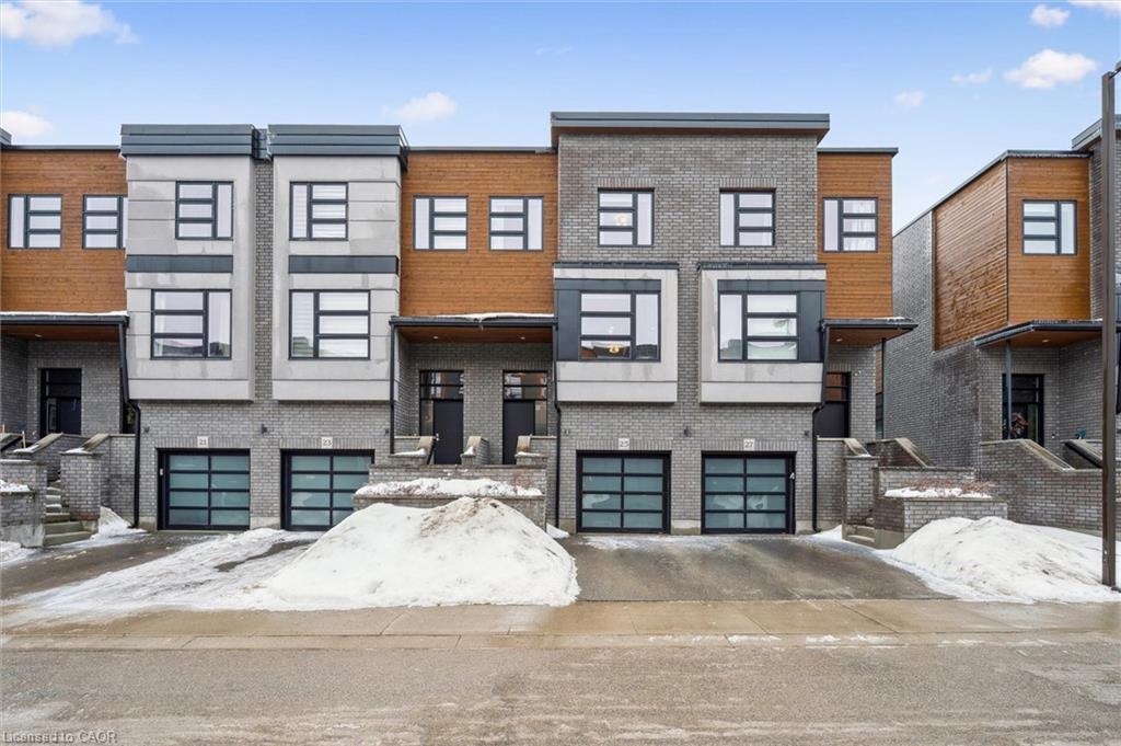 Welcome to 60 Arkell Road, Unit 25, a beautifully upgraded upscale townhome offering over 2,700 sq. ft. of finished living space. This impressive three-bedroom home features three private ensuites, providing exceptional comfort and privacy for family members or guests alike. Every level has been fully finished, creating a versatile layout ideal for modern living, entertaining, or working from home.The main living area showcases hardwood flooring and elegant granite countertops, complemented by thoughtful upgrades including custom built-ins and in-ceiling speakers wired for sound. The open-concept design flows seamlessly to a large southwest-facing deck, the perfect place to unwind and enjoy stunning sunset views. Additional highlights include second-floor laundry, generous storage throughout, and a location that truly delivers. Steps to shopping, schools, restaurants, and everyday conveniences, with easy highway access for commuters. Stylish, spacious, and impeccably located, this is south-end Guelph living at its finest.