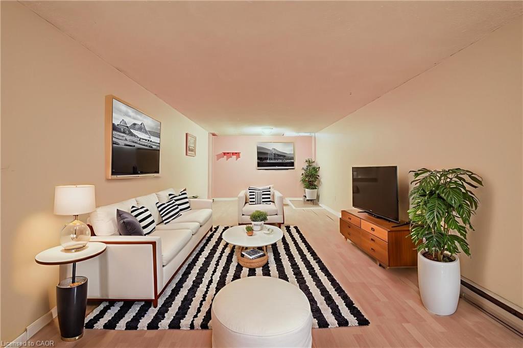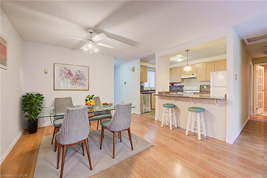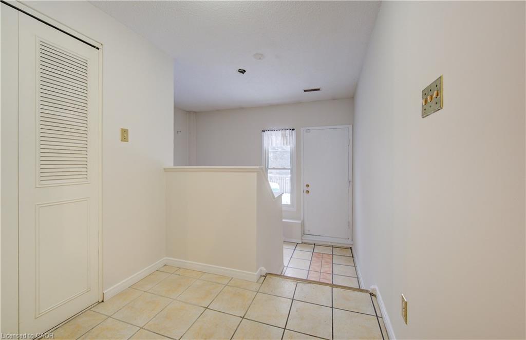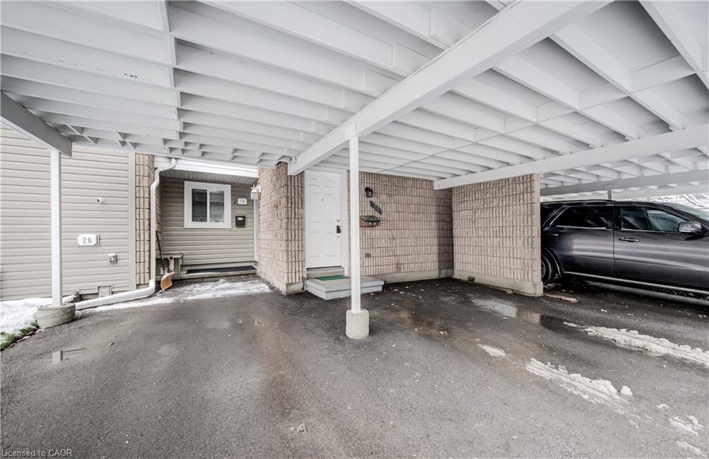 WELCOME TO PARKWOOD TERRACE. Tucked into a quiet, family-friendly neighbourhood and just steps from excellent schools, parks, shopping, and every amenity you could need. From the moment you pull into your covered parking, a sense of privacy and calm greets you. Follow the path inside, where a bright open-concept layout unfolds on the upper level—sunny windows, neutral decor, and a main floor designed for real living. The spacious living and dining area flows naturally into the eat-in kitchen, offering the perfect backdrop for family dinners, morning coffee, or catching up with friends. This level offers 3 generous bedrooms and a full 4-piece bathroom. But the true showstopper? Your massive private upper deck—a rare luxury in condo living. Imagine warm summer nights hosting family, growing herbs and vegetables in sun-soaked planters, or enjoying a quiet evening with a book and a breeze. This is outdoor living at its finest. Working from home? The fully finished basement provides the ideal setup—quiet, private, and distraction-free. With additional storage under the stairs and in the laundry area, every inch of this home has been thoughtfully planned. This condo community creates a truly worry-free lifestyle for first-time buyers, young couples, downsizers, or anyone looking for turnkey living. Additionally, located just minutes away from Highway 401, offering quick and easy access to major transportation routes. Please note the pictures are virtually staged.