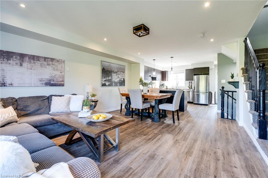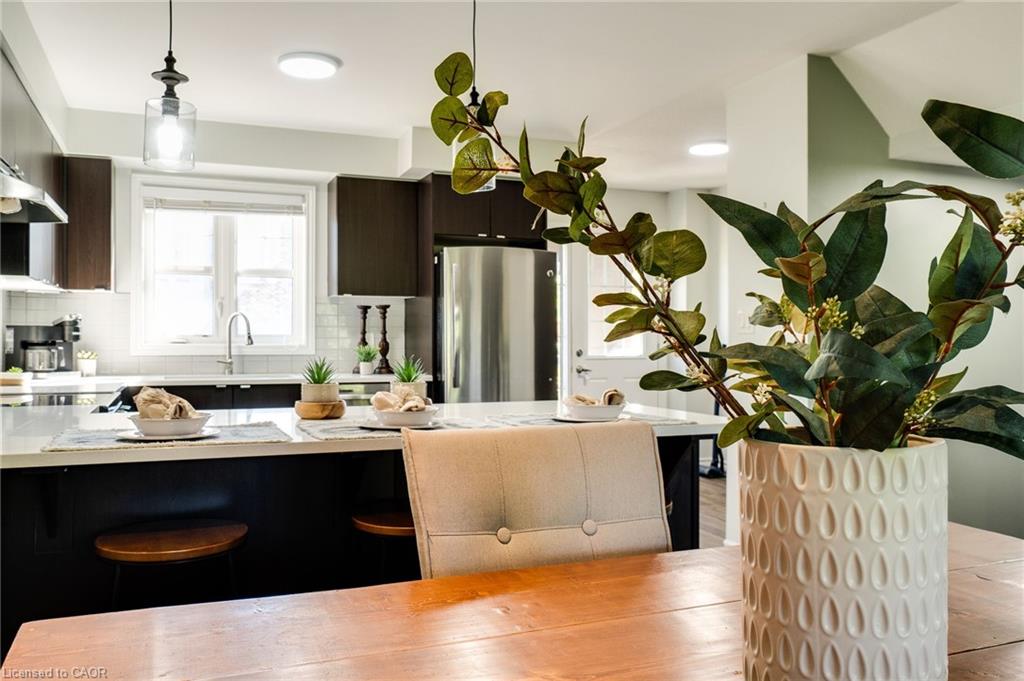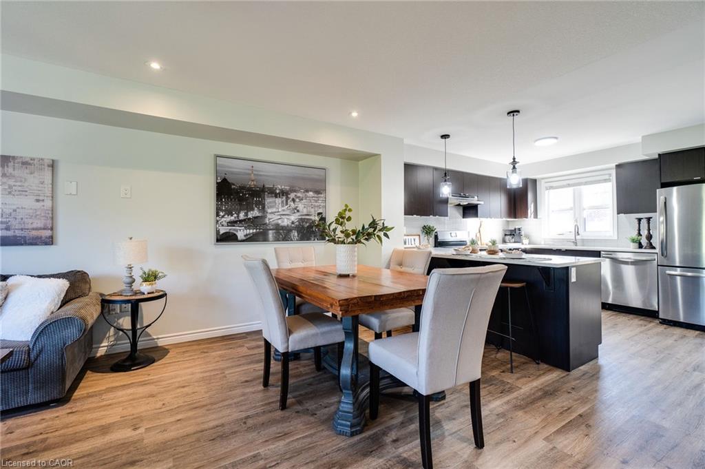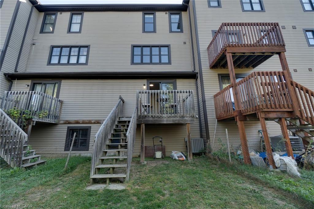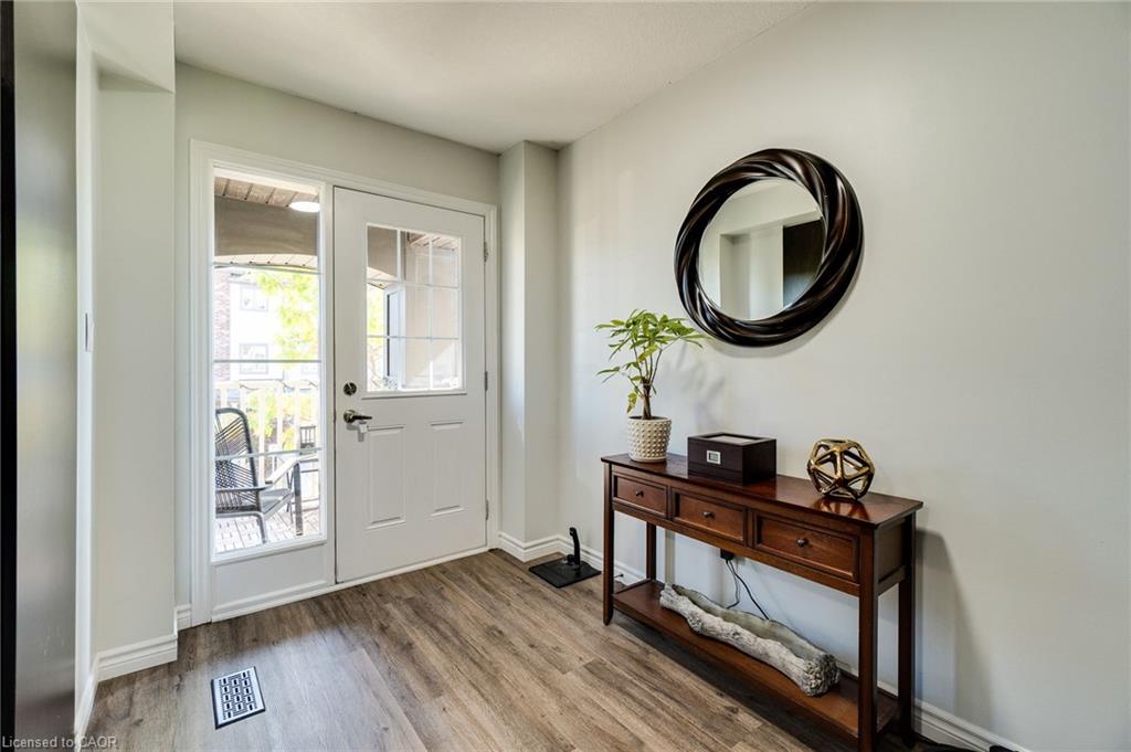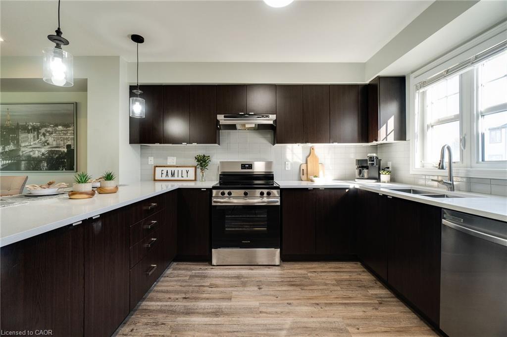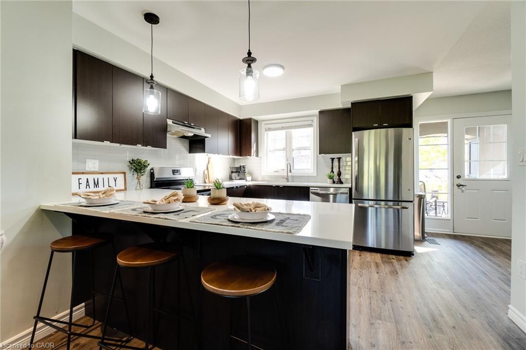 This updated freehold townhouse in the desirable Country Hills/Alpine Village area of West Kitchener is move-in-ready and offers the perfect blend of comfort, convenience, and value. Ideal for first-time buyers, young professionals, downsizers, or investors, the home features low condo fees, a private backyard, and no rear neighbours for added privacy. Inside, the main floor welcomes you with a bright kitchen complete with new quartz countertops, a breakfast bar, new faucet, double stainless steel sinks, and a brand-new stove. From the breakfast area, enjoy your morning coffee while watching the sunrise from the covered balcony. The spacious living and dining room, featuring all new modern luxury vinyl flooring, is perfect for family living and entertaining. Upstairs, you’ll find three generous bedrooms, including a primary with a walk-in closet, along with the convenience of upper in-suite laundry. The above-grade finished lower level adds valuable living space, ideal for use as a family room, home office, or guest suite, with direct access to the single-car garage and patio doors leading to the deck and yard. The fourth level offers a bathroom rough-in and tons of storage. Outdoors, enjoy your own private yard perfect for kids, pets, or hosting summer barbecues. The home has been professionally updated and is ready for you to unpack and settle in. This location is a highlight, with steps to McLennan Park, the Hydro Path, and Activa Sportsplex, plus quick access to Conestoga College, the LRT, Highway 401, and essential shopping. The community is family-friendly and offers excellent recreation and transit options. 4th level unfinished basement includes bonus room and rough-in for bathroom and lots of storage.