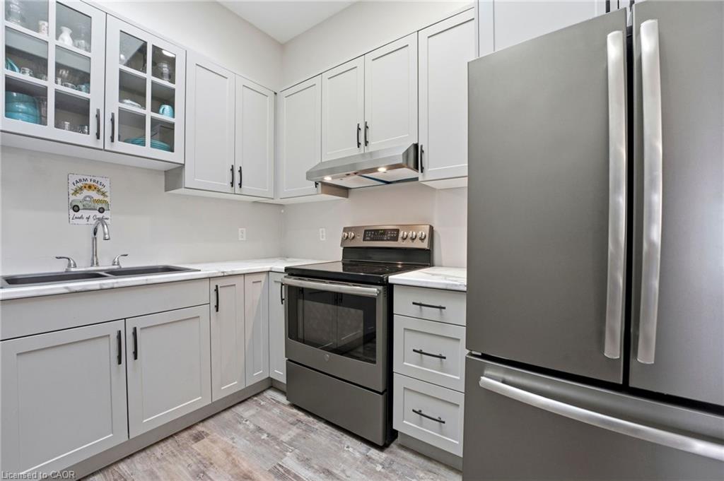 Welcome home to this meticulously updated, turnkey backsplit located in the highly desirable South Parkwood subdivision of Elmira. Boasting a wealth of modern improvements, this home features fresh paint (2020), updated flooring (2022), and a stunning kitchen renovation (2022) complemented by appliances installed in 2020. You can enjoy complete peace of mind with major mechanical updates, including a brand-new air conditioner (2025) and furnace (2024), along with a roof replaced in 2016 and the added benefit of no rental equipment on the property. The cozy living area centers around a beautiful gas fireplace, while outside, you will find your own private, fully fenced backyard oasis complete with a shed and a gazebo. Perfectly situated across the street from a park and just steps from local trails and lush forest, this home offers an incredible lifestyle in a fantastic neighbourhood.