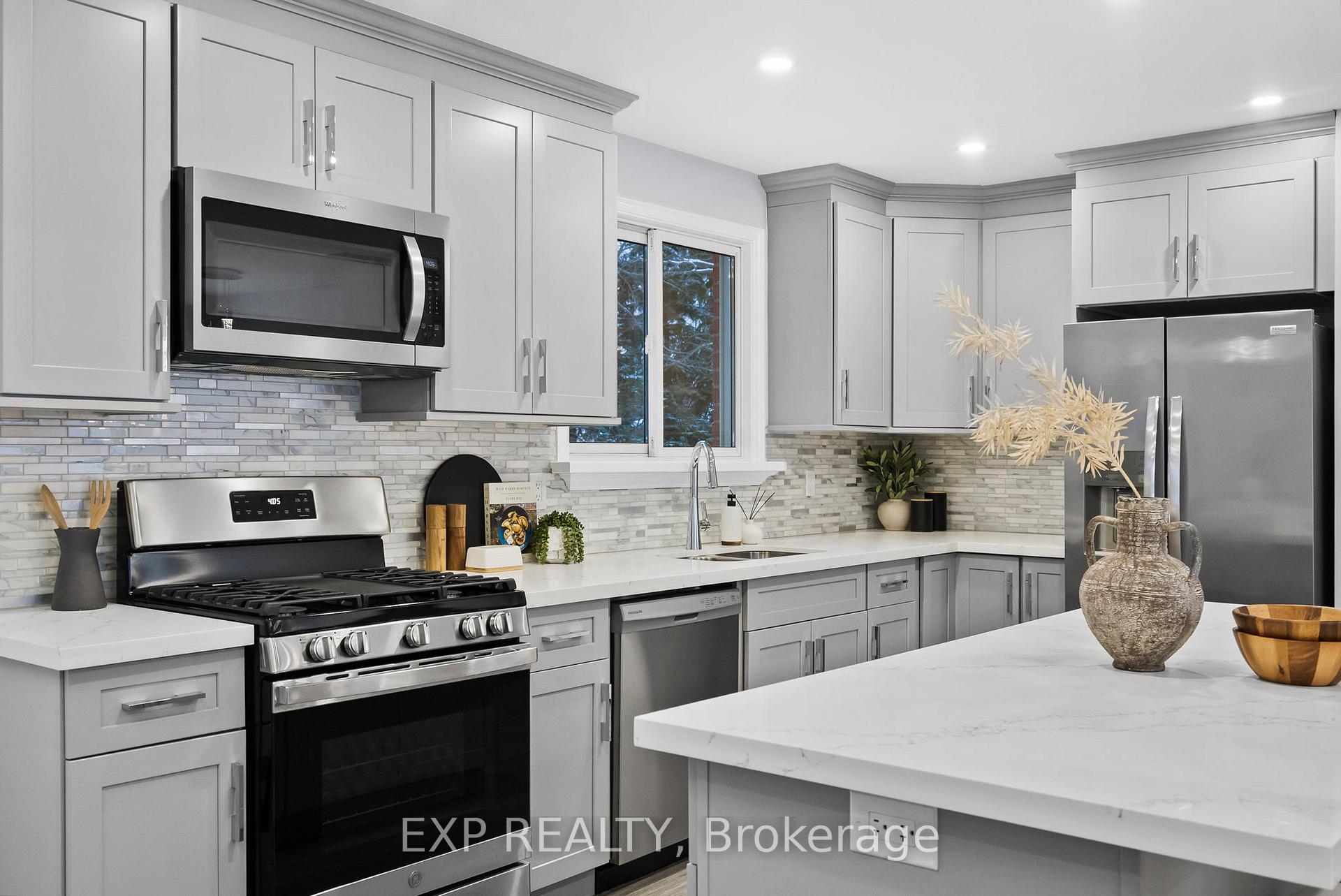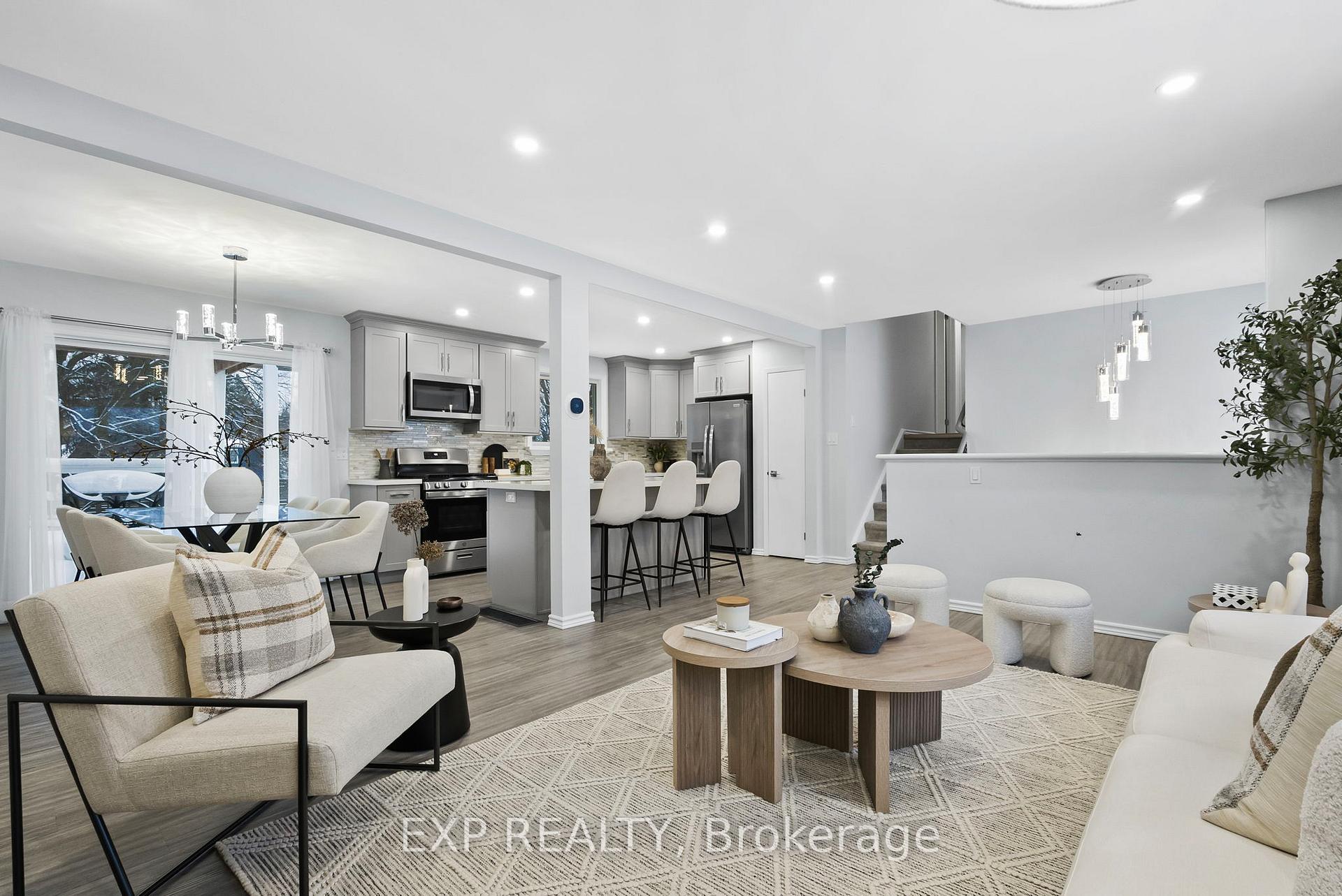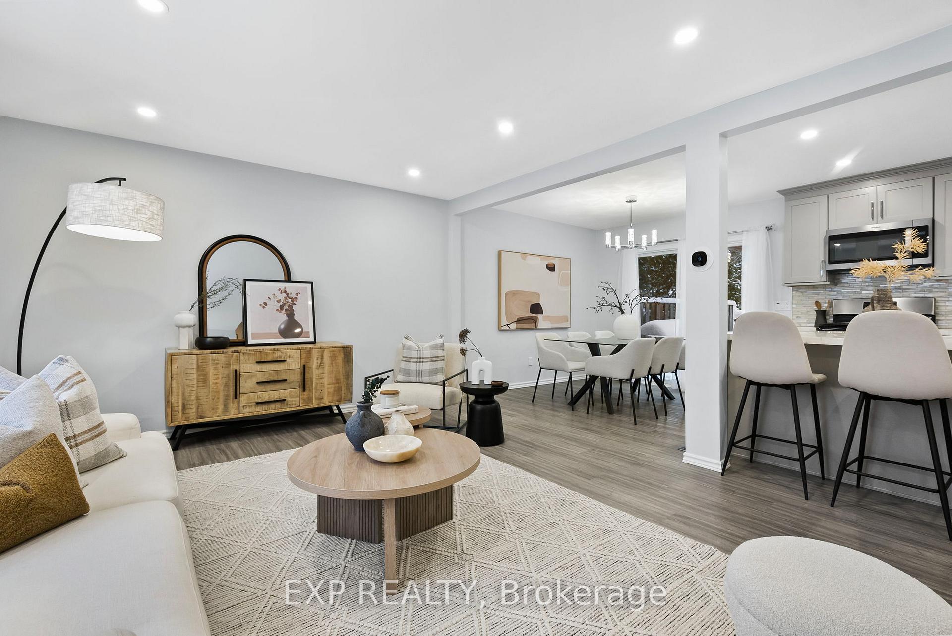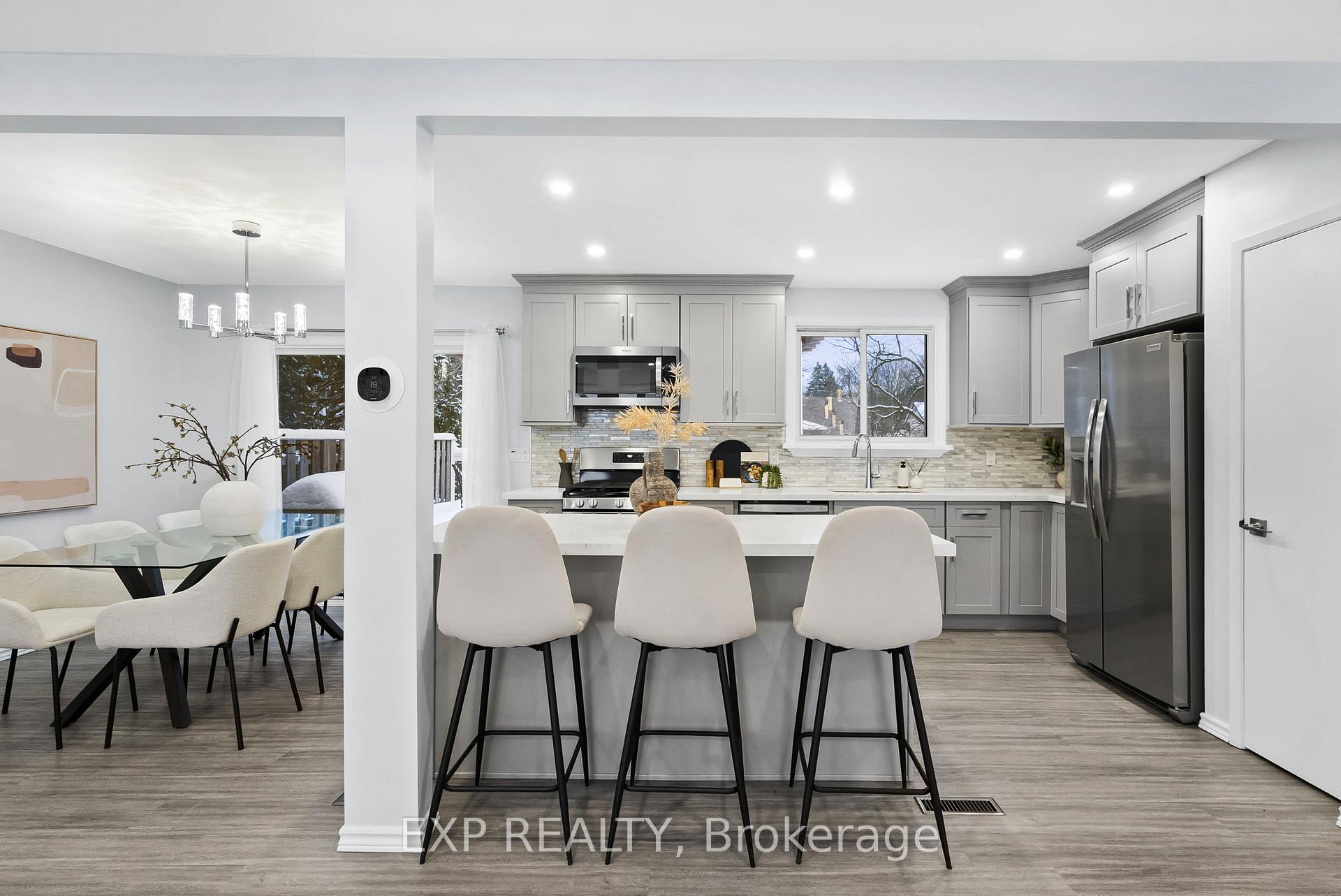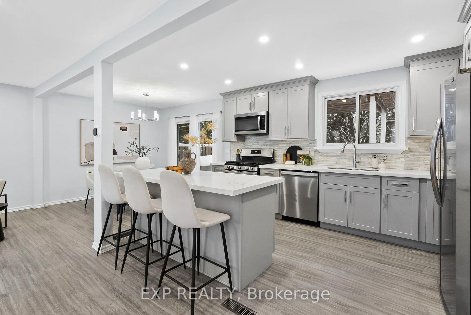 Welcome to 25 Erindale Drive, a beautifully renovated four-bedroom side-split located in one of Erin’s most loved family neighbourhoods. Offering over 1,700 square feet of total living space, this home is designed for comfort and everyday family living.Step inside to a home that has been completely renovated from top to bottom in 2023, blending quality craftsmanship with a clean, modern aesthetic. The open-concept main floor features luxury vinyl flooring, recessed lighting, and a sun-filled living room with a large picture window. The dining area opens to a pergola-covered deck, ideal for entertaining or enjoying quiet evenings outdoors.The stylish kitchen is the heart of the home, featuring quartz countertops, stainless steel appliances including a gas stove, and a generous island with breakfast bar seating. Upstairs, you’ll find four bright bedrooms and a modern four-piece bathroom with updated finishes.The finished lower level adds valuable versatility with a cozy recreation room, a renovated three-piece bath, and flexible space for a home office, guest room, or teen retreat, all with above-grade windows that bring in natural light.Major systems have been upgraded for peace of mind, including the roof, furnace, and air conditioner, along with brand-new appliances throughout. Outside, enjoy a private backyard with mature trees, perennial gardens, and a large deck perfect for summer gatherings.Enjoy the best of small-town life with modern convenience. Stroll to Main Street cafés, shops, and restaurants, or make the quick commute to Guelph, Georgetown, Orangeville or the GTA via the nearby GO Bus.Fresh, stylish, and move-in ready, 25 Erindale Drive offers the perfect balance of comfort, convenience, and community.