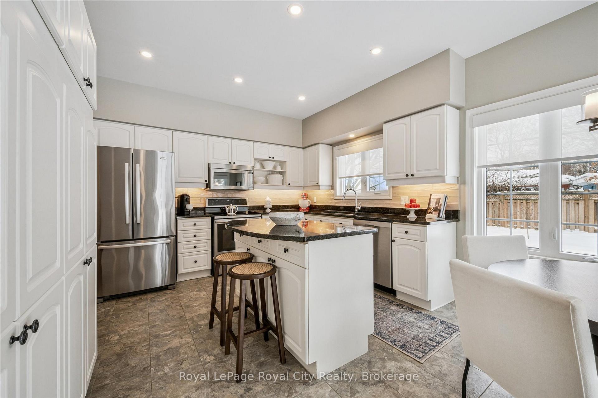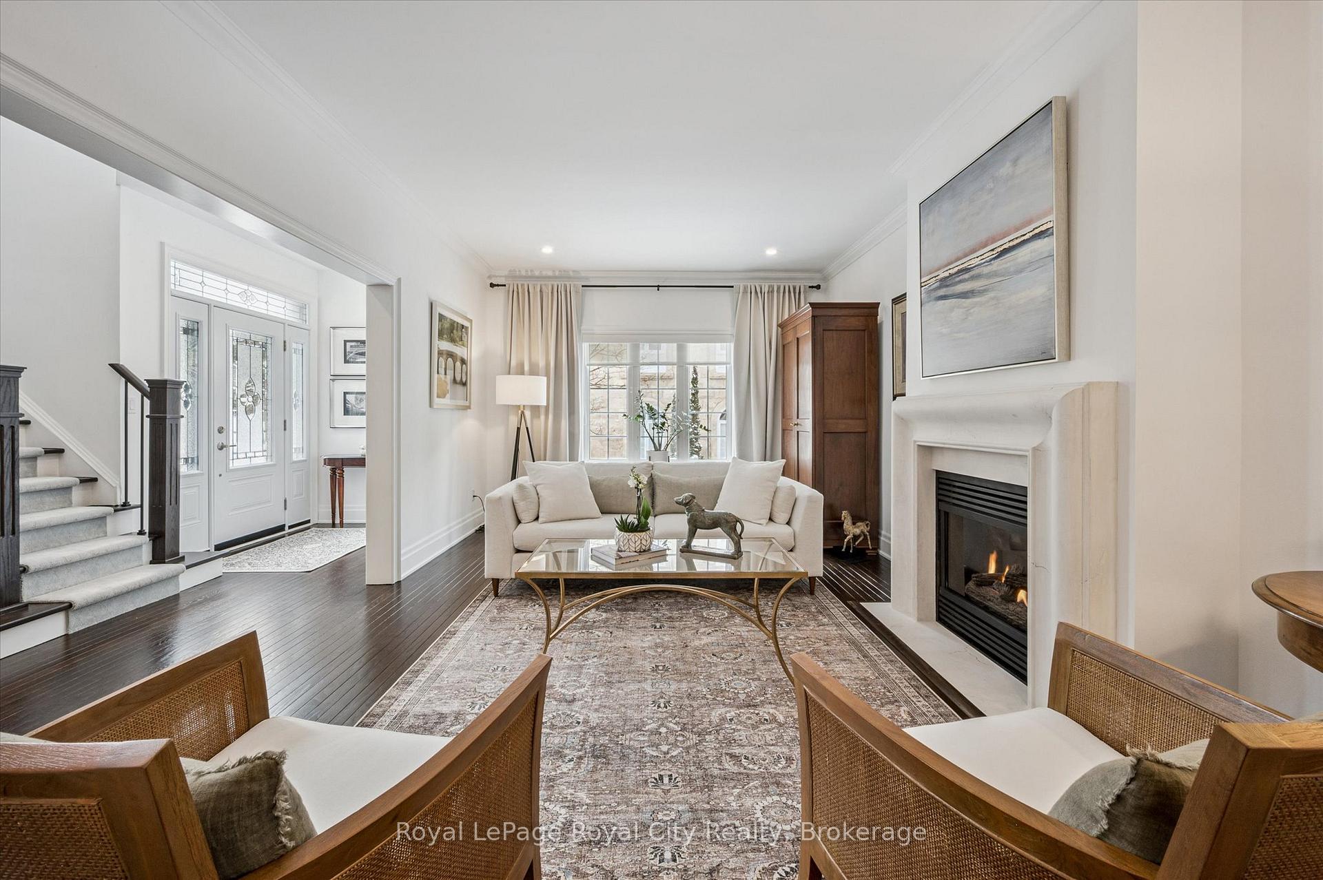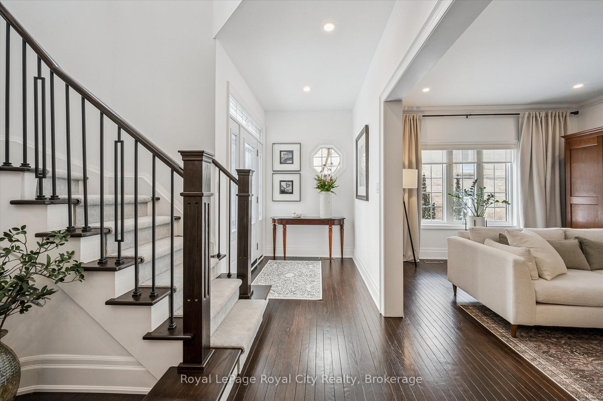Tucked away in Manor Park Mews, a charming cul-de-sac of just 12 detached homes surrounding the historic Manor Park house, this impressive stone home is designed for both everyday comfort and elegant entertaining. The main floor welcomes you with a stunning entry, rich hardwood floors, crown moulding, recessed lighting, and custom blinds throughout. A gracious living room with fireplace flows seamlessly into the formal dining room, where a statement chandelier creates an inviting setting for memorable gatherings. The bright, eat-in kitchen features stainless steel appliances, granite countertops accented by under-cabinet lighting, and a breakfast area with a walkout to the spacious backyard. A classic curved staircase leads to the upper level, where a generous landing with a sitting area enhances the sense of space and light. All three bedrooms feature their own private ensuite, offering exceptional comfort and privacy. The primary suite is a true retreat, complete with a walk-in closet and spa-inspired ensuite with soaker tub. A convenient second-floor laundry room adds everyday ease. Set along the riverbank with direct access to scenic walking trails and a community tennis court, this home offers a fabulous low-maintenance lifestyle just steps from downtown shops, cafés, and restaurants!
