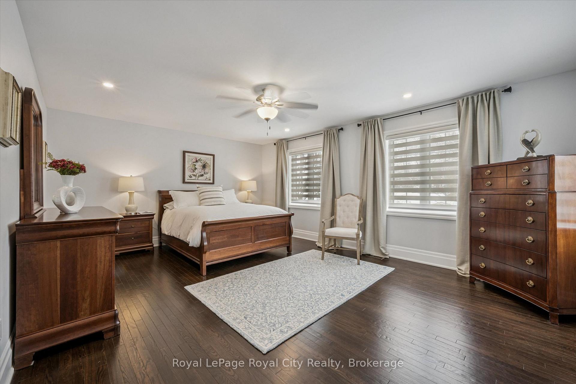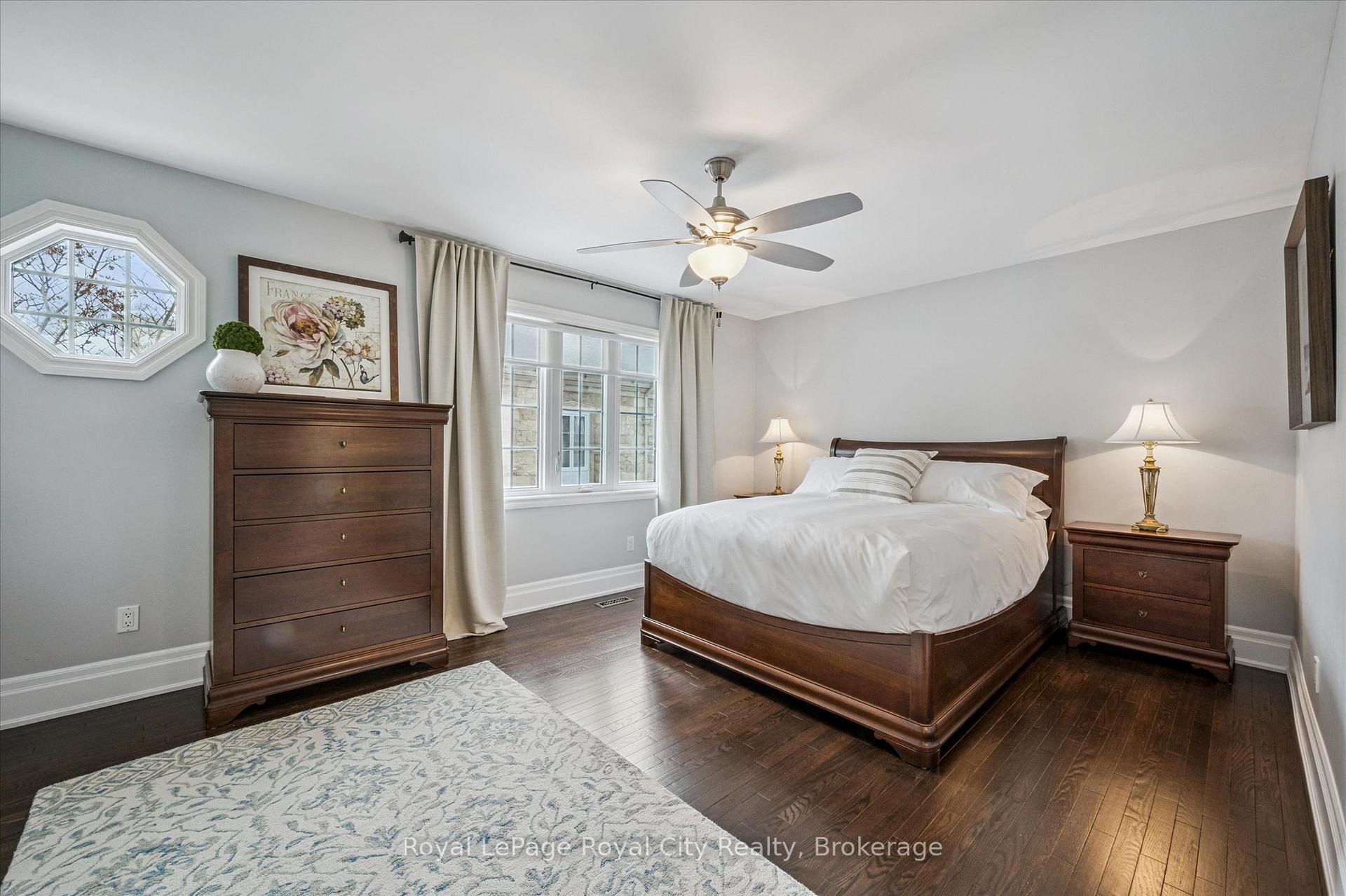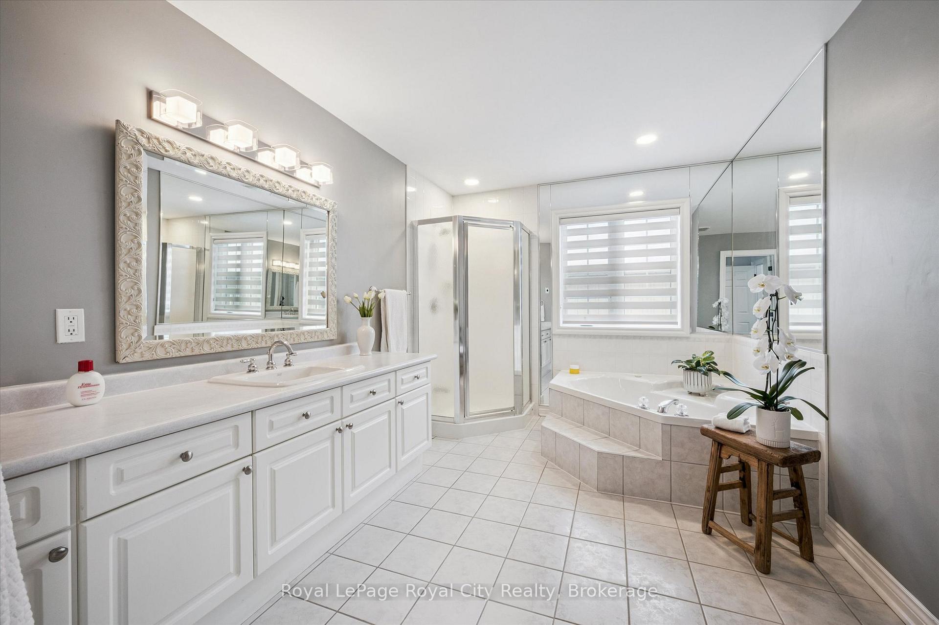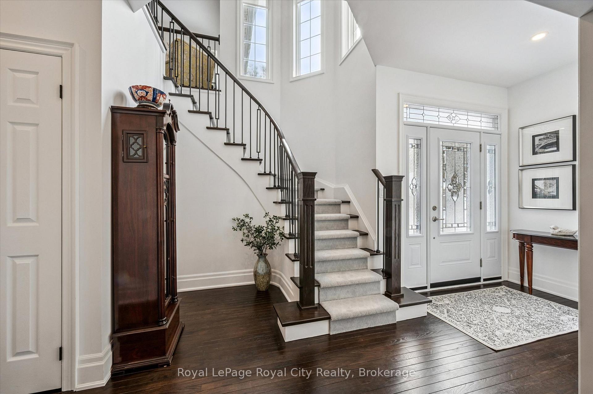Tucked away in Manor Park Mews, a charming cul-de-sac of just 12 detached homes surrounding the historic Manor Park house, this impressive stone home is designed for both everyday comfort and elegant entertaining. The main floor welcomes you with a stunning entry, rich hardwood floors, crown moulding, recessed lighting, and custom blinds throughout. A gracious living room with fireplace flows seamlessly into the formal dining room, where a statement chandelier creates an inviting setting for memorable gatherings. The bright, eat-in kitchen features stainless steel appliances, granite countertops accented by under-cabinet lighting, and a breakfast area with a walkout to the spacious backyard. A classic curved staircase leads to the upper level, where a generous landing with a sitting area enhances the sense of space and light. All three bedrooms feature their own private ensuite, offering exceptional comfort and privacy. The primary suite is a true retreat, complete with a walk-in closet and spa-inspired ensuite with soaker tub. A convenient second-floor laundry room adds everyday ease. Set along the riverbank with direct access to scenic walking trails and a community tennis court, this home offers a fabulous low-maintenance lifestyle just steps from downtown shops, cafés, and restaurants!