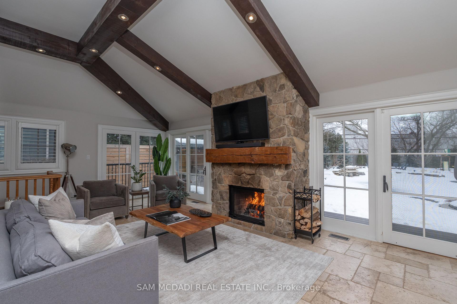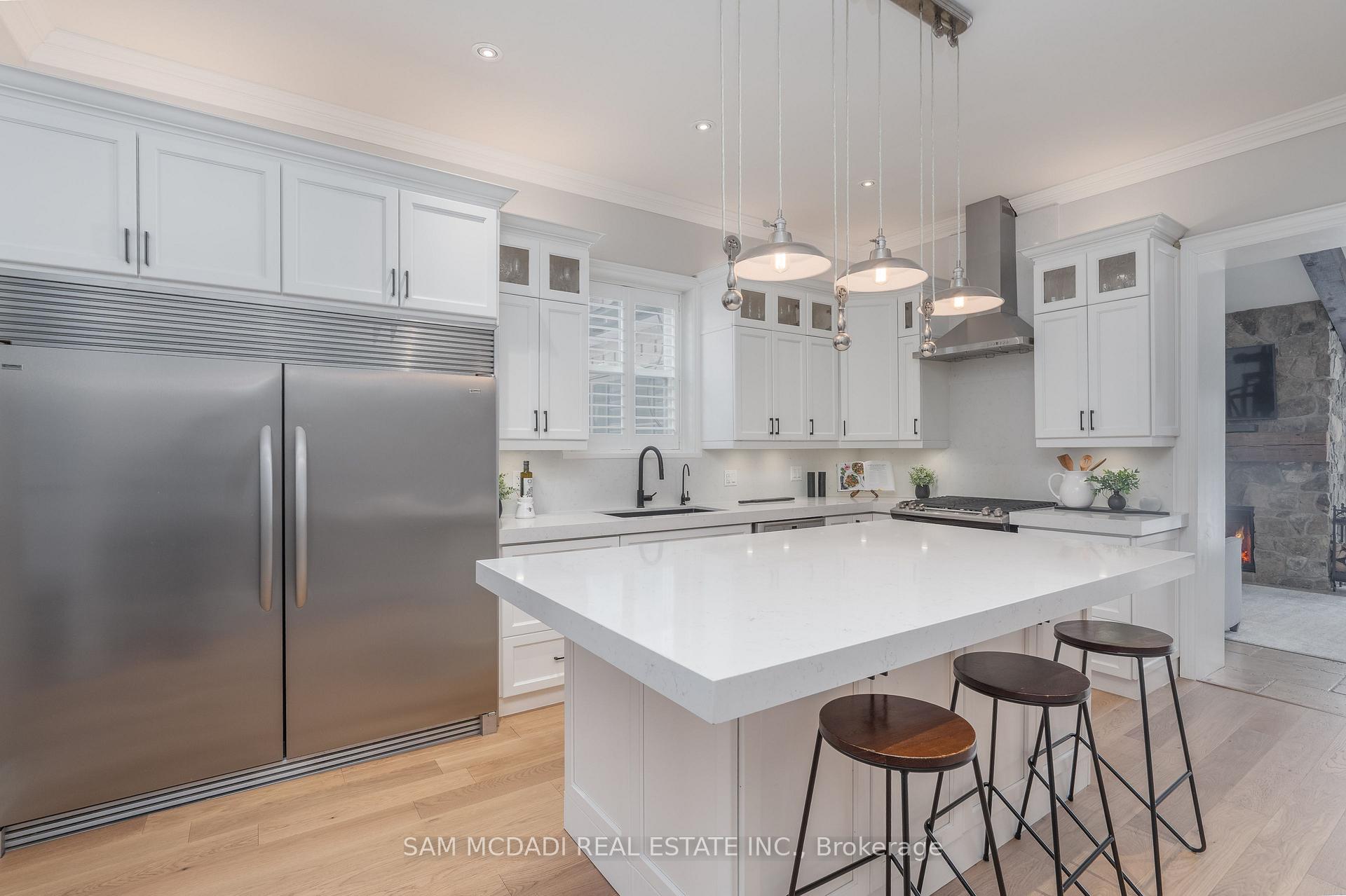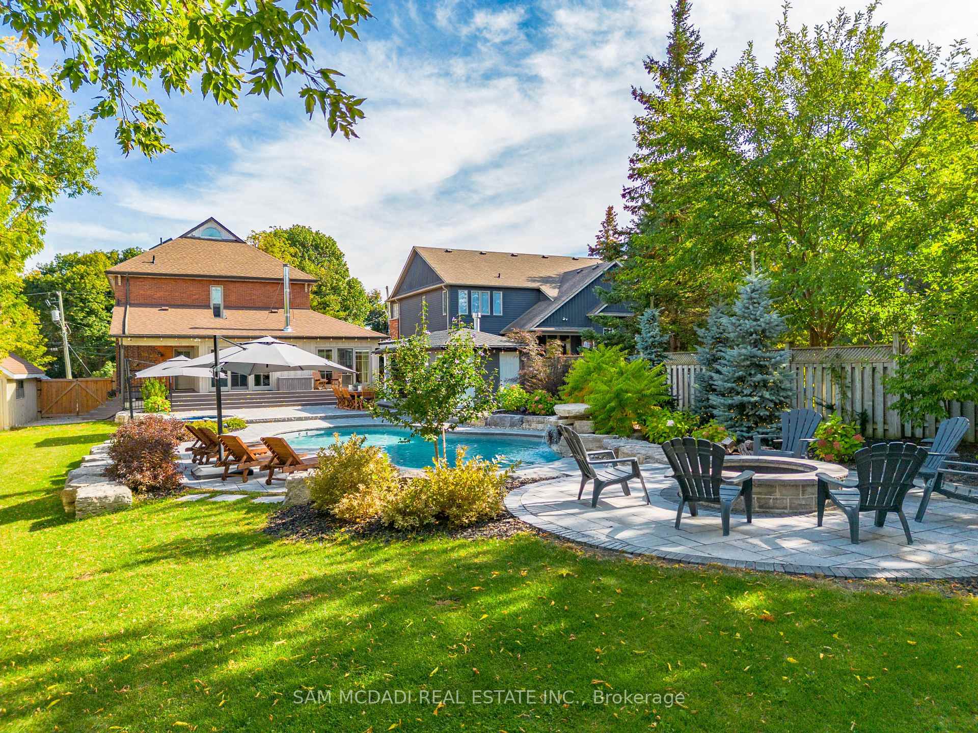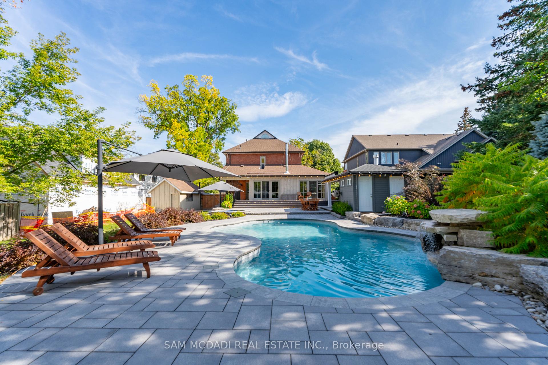 Discover this historic home in Old Milton, situated on an impressive 65 x 243 ft lot. Designed with a discerning eye for detail, this residence offers a thoughtfully curated living space with 4-bedrooms and 4-bathrooms. Step inside to find 11-ft smooth ceilings, exquisite millwork, and elegant hardwood floors that flow effortlessly throughout the main level. The fully equipped kitchen features Caesarstone countertops, a centre island, stainless steel appliances, and gleaming pot lights, ideal for both casual mornings and entertaining. A bay-windowed dining room provides the perfect backdrop for intimate gatherings, while the stone-tiled family room invites relaxation, anchored by an exposed brick, wood-burning fireplace, and offering tranquil views of the backyard. French patio doors open to the ultimate outdoor oasis. The space features a 24 x 38 saltwater freeform in-ground pool with soft lining, a built-in outdoor kitchen with a BBQ, and a stone fire pit. A heated, filtered in-ground hot tub is seamlessly integrated with the pool system for easy maintenance. The second level features three well-appointed bedrooms, including the owner’s suite with pot lights, California shutters, a walk-in closet, and access to a shared spa-inspired 4-piece ensuite with a freestanding tub and glass-enclosed shower. Two additional bedrooms, each with its own closet, complete this level. Venture to the attic on the third floor to discover a private fourth bedroom with vaulted ceilings and a sleek 3-piece bath. The lower level, accessible via a separate entrance, is an entertainer’s dream, offering a spacious rec room, a modern 3-piece bath with heated floors, and an electric fireplace. Set just minutes from conservation trails, charming boutiques, and top-rated schools, do not miss this exquisite offering!