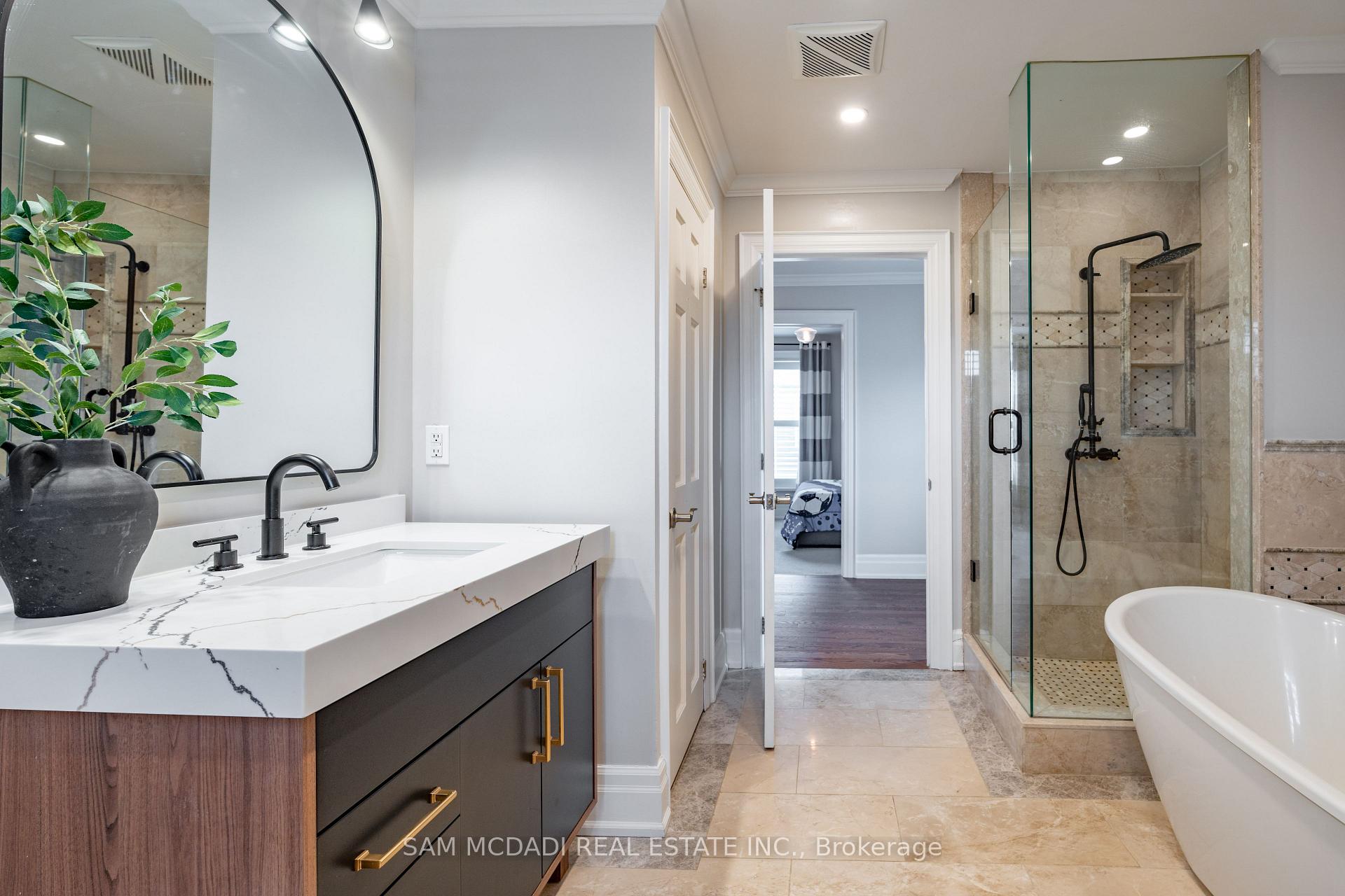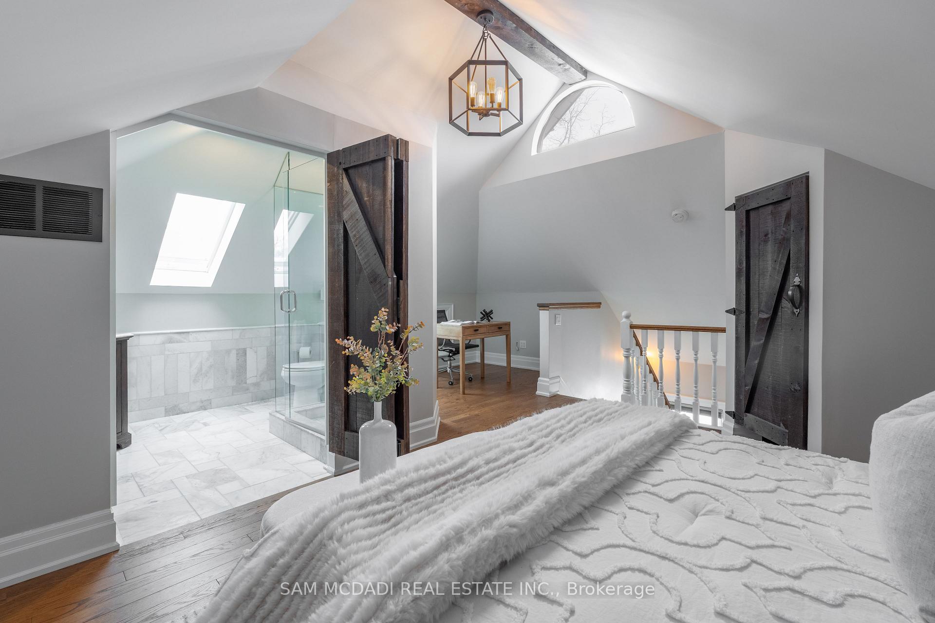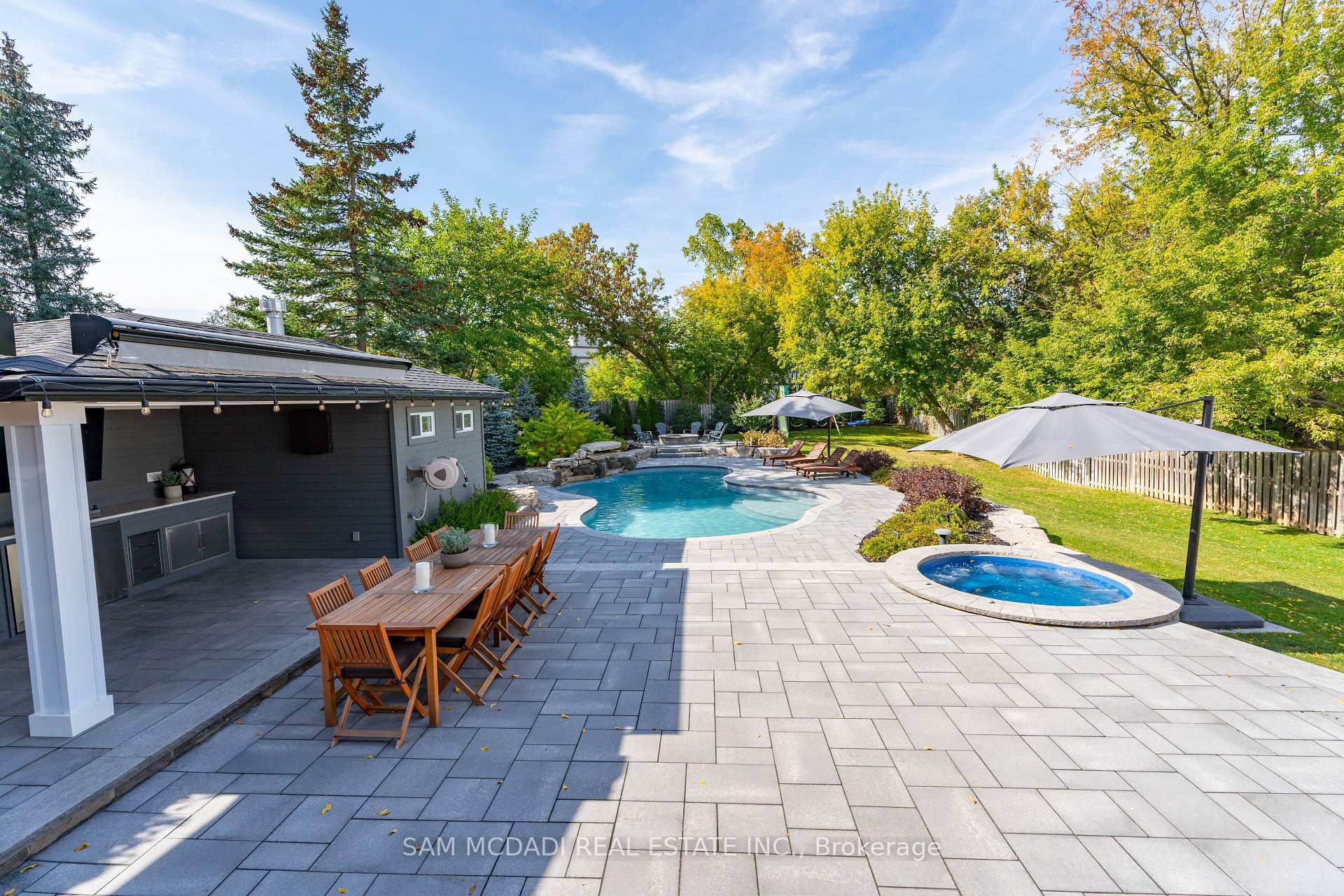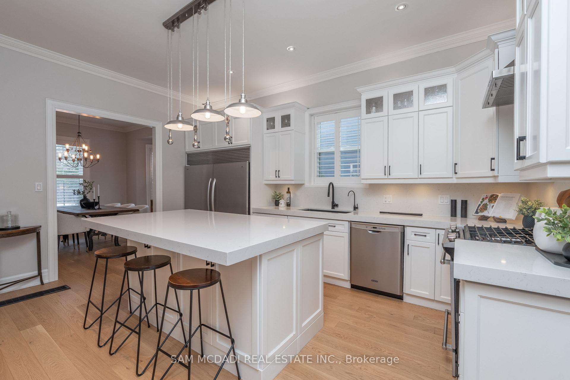 Discover this historic home in Old Milton, situated on an impressive 65 x 243 ft lot. Designed with a discerning eye for detail, this residence offers a thoughtfully curated living space with 4-bedrooms and 4-bathrooms. Step inside to find 11-ft smooth ceilings, exquisite millwork, and elegant hardwood floors that flow effortlessly throughout the main level. The fully equipped kitchen features Caesarstone countertops, a centre island, stainless steel appliances, and gleaming pot lights, ideal for both casual mornings and entertaining. A bay-windowed dining room provides the perfect backdrop for intimate gatherings, while the stone-tiled family room invites relaxation, anchored by an exposed brick, wood-burning fireplace, and offering tranquil views of the backyard. French patio doors open to the ultimate outdoor oasis. The space features a 24 x 38 saltwater freeform in-ground pool with soft lining, a built-in outdoor kitchen with a BBQ, and a stone fire pit. A heated, filtered in-ground hot tub is seamlessly integrated with the pool system for easy maintenance. The second level features three well-appointed bedrooms, including the owner’s suite with pot lights, California shutters, a walk-in closet, and access to a shared spa-inspired 4-piece ensuite with a freestanding tub and glass-enclosed shower. Two additional bedrooms, each with its own closet, complete this level. Venture to the attic on the third floor to discover a private fourth bedroom with vaulted ceilings and a sleek 3-piece bath. The lower level, accessible via a separate entrance, is an entertainer’s dream, offering a spacious rec room, a modern 3-piece bath with heated floors, and an electric fireplace. Set just minutes from conservation trails, charming boutiques, and top-rated schools, do not miss this exquisite offering!