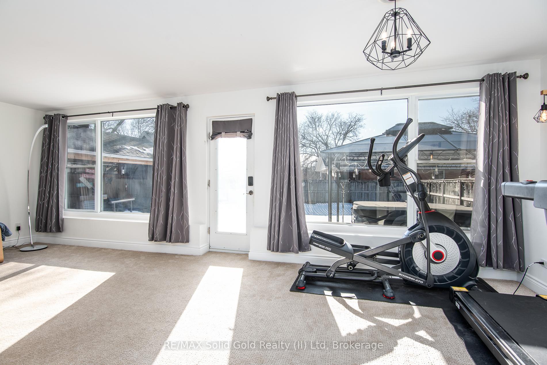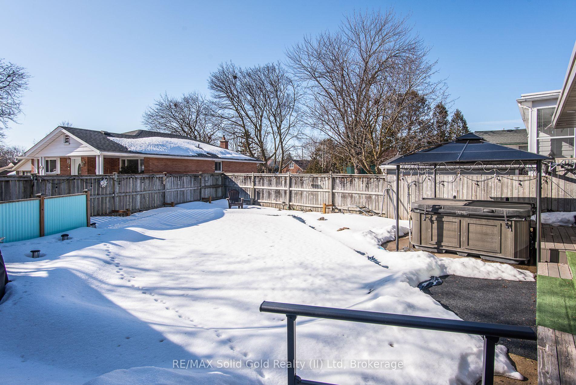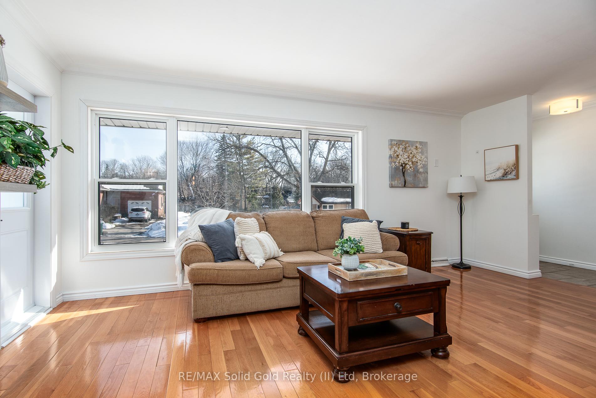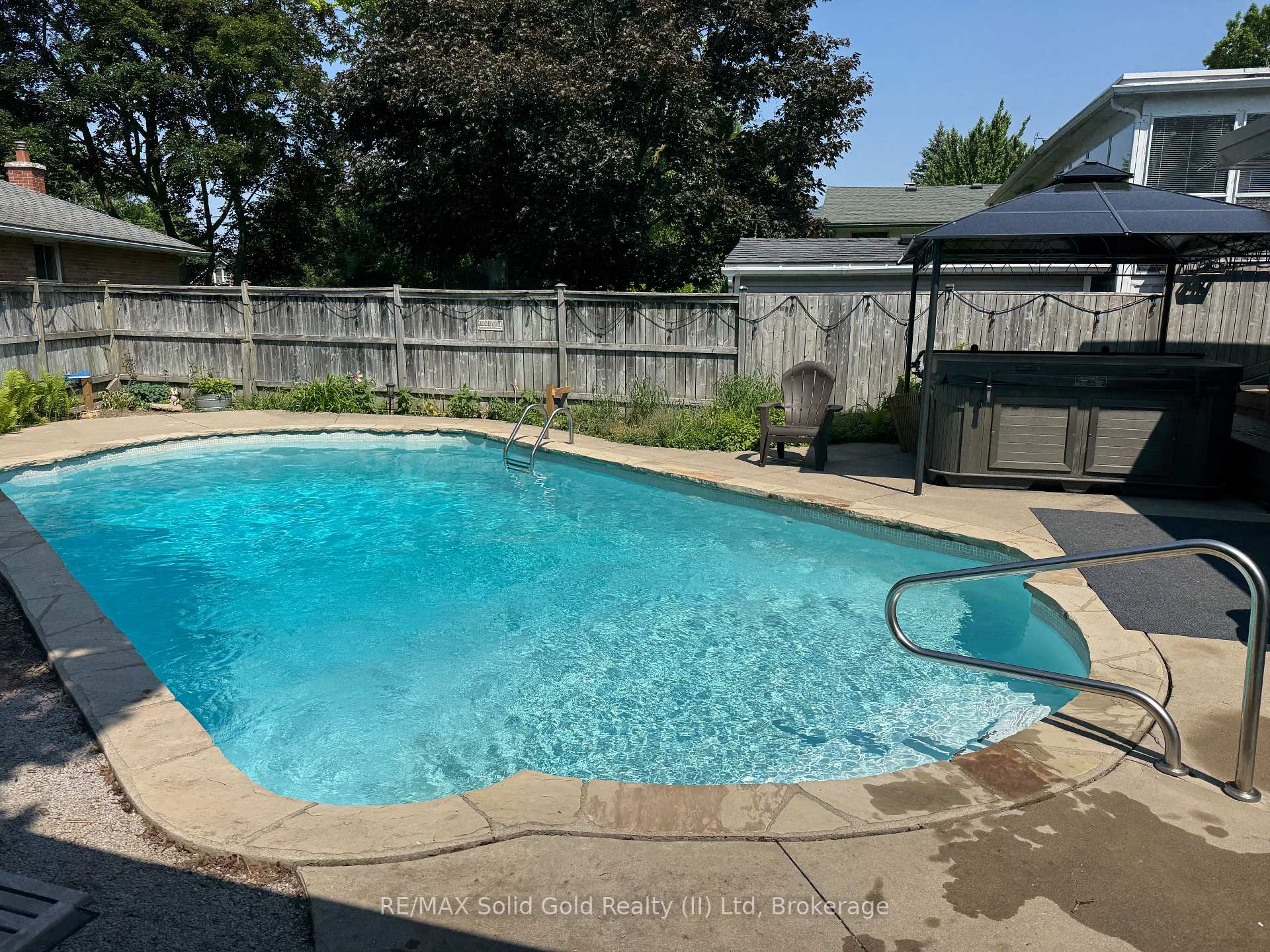 This updated, spacious 5-level sidesplit in Waterloo’s beloved Glenridge neighbourhood and just a short jaunt to Uptown Waterloo is a truly unique offering. Situated on an oversized lot bookended by a showstopping inground pool area on one side and generous greenspace on the other, this home is perfect for both families and those looking to entertain. The main entrance offers a handy front hall closet and you’ll soon find yourself in the bright living room with hardwood flooring, crown moulding, gas fireplace and access to one of the two outdoor spaces. Behind here we have the updated eat-in kitchen with granite countertops, under cabinet lighting, stainless steel appliances and stylish feature wall. Upstairs you’ll find two bedrooms along with a 4-piece bathroom and on the fifth level you’ll find the large and private primary bedroom with hardwood flooring and a walk-in closet. The first lower level offers a 2-piece bathroom, garage access, an office area and large family room with a gas fireplace overlooking the pool area which is surely where you’ll spend most of your time in the summer thanks to the inground pool, tiki bar, and hot tub with a gazebo covering for all season use. The fully finished basement offers yet more space with a rec-room, 3-piece bathroom, laundry room and ample storage. With quick access to highway 8 and uptown Waterloo, this rare combination of living space, outdoor space and prime location makes for a truly intriguing home.