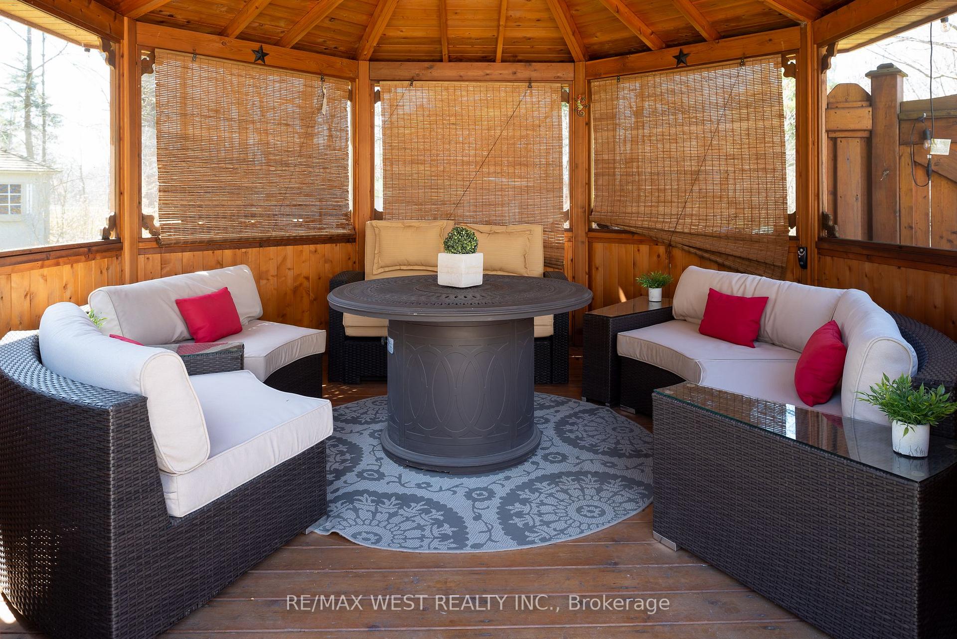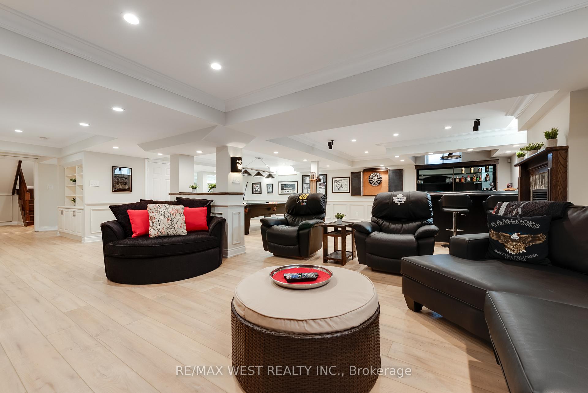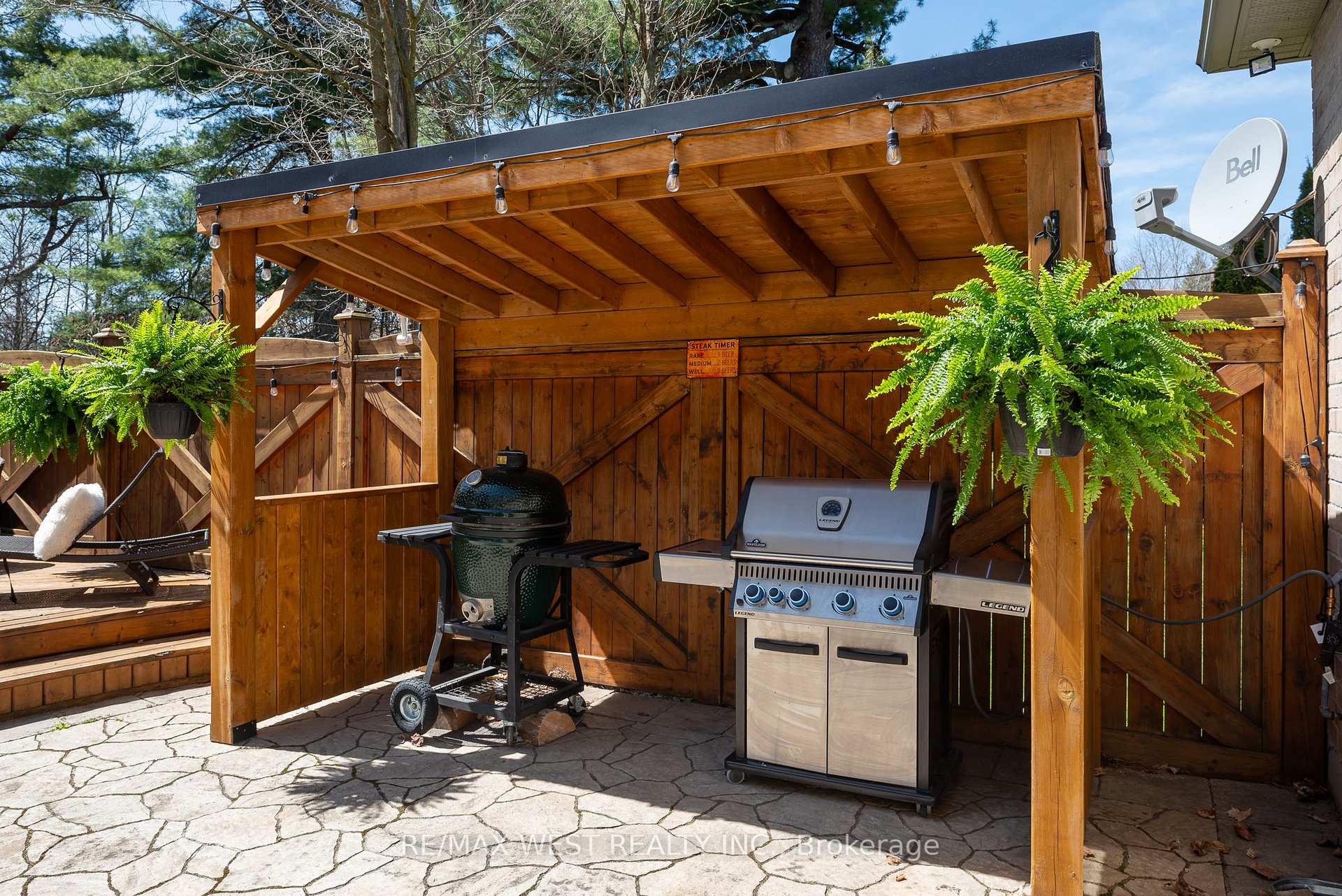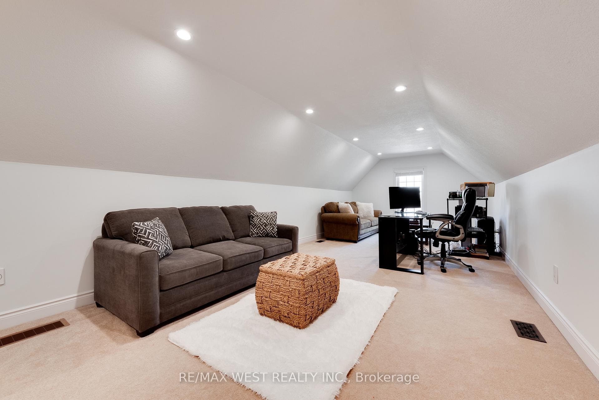 A Custom-Built Masterpiece in the Heart of Erin! This bungaloft offers over 4,300 sq ft of total living space, blending refined craftsmanship with everyday comfort. Pride of ownership is evident in every detail from the hand-stained hardwood floors to the thoughtfully designed indoor and outdoor living spaces. The chef-inspired kitchen features upgraded solid wood cabinetry, a new LG fridge, double oven, gas cooktop, wine fridge, and large centre island perfect for gathering with family & friends. The adjoining dining & sitting areas share a stunning two-way gas fireplace. Step outside to discover your private retreat complete with a sheltered BBQ area(with two gas lines), screened-in gazebo with powered lighting and ceiling fan, multiple seating areas, elegant fence-line lighting, rough-in for future hot tub, and a fire pit with wood storage all overlooking the tranquil pond beyond. The living room offers cathedral ceilings, a second view of the two-way fireplace, and surround sound system that extends to the patio for effortless indoor-outdoor entertaining. The main floor primary suite is a true haven, featuring a spa-like 5-pc ensuite with soaker tub, walk-in shower, double sinks, and walk-in closet. The main level also includes a stylish home office, 2-piece bath, and convenient laundry room with access to the 4-car insulated garage divided into two sections, including a heated area. Upstairs, you’ll find three beautifully appointed bedrooms and a 5-pc bath ideal for family or guests. The lower level is designed for year-round enjoyment, featuring a games area, wet bar, home theatre with surround sound, gym, 3-piece bath, gas fireplace, and custom lighting. This remarkable home is within walking distance to boutique shops, restaurants, the high school, parks, trails, & more. A Generac generator powers most of the home, offering peace of mind without compromise. A rare opportunity to own a home that perfectly balances luxury, functionality, and small-town charm.