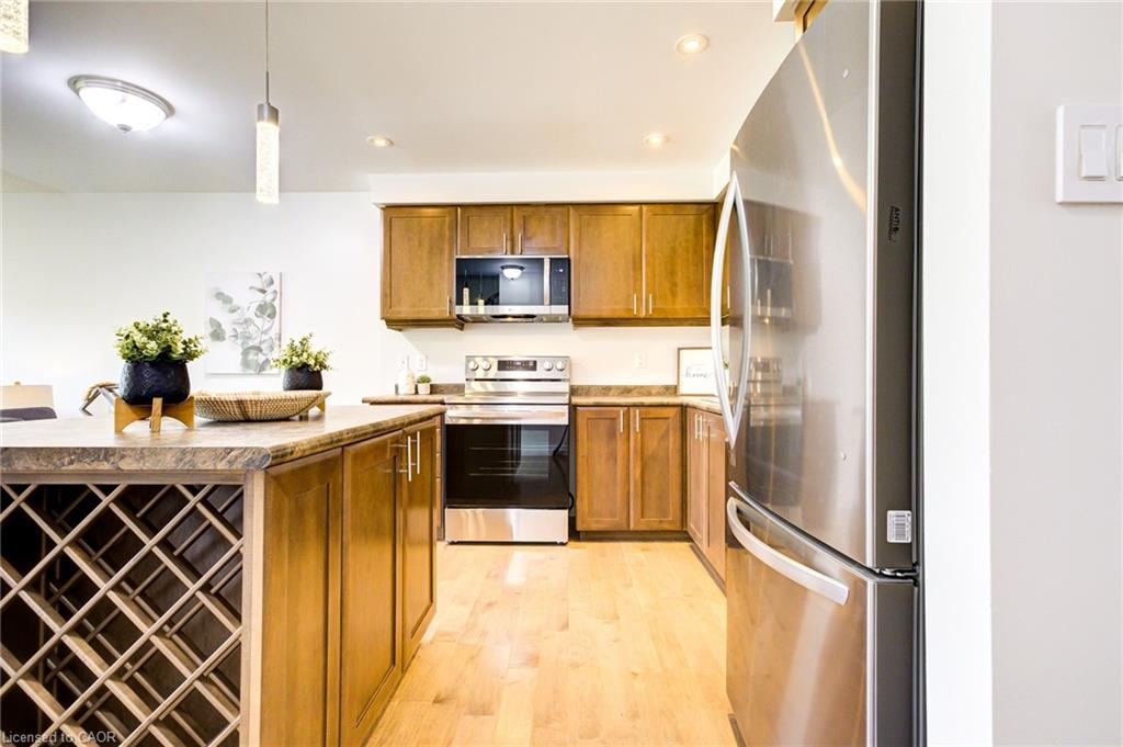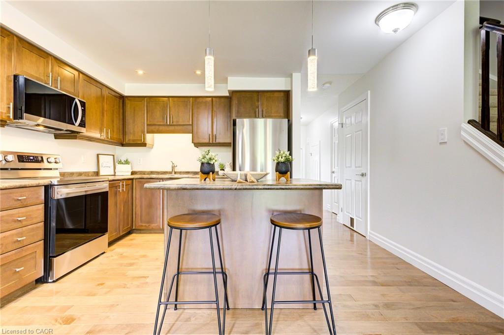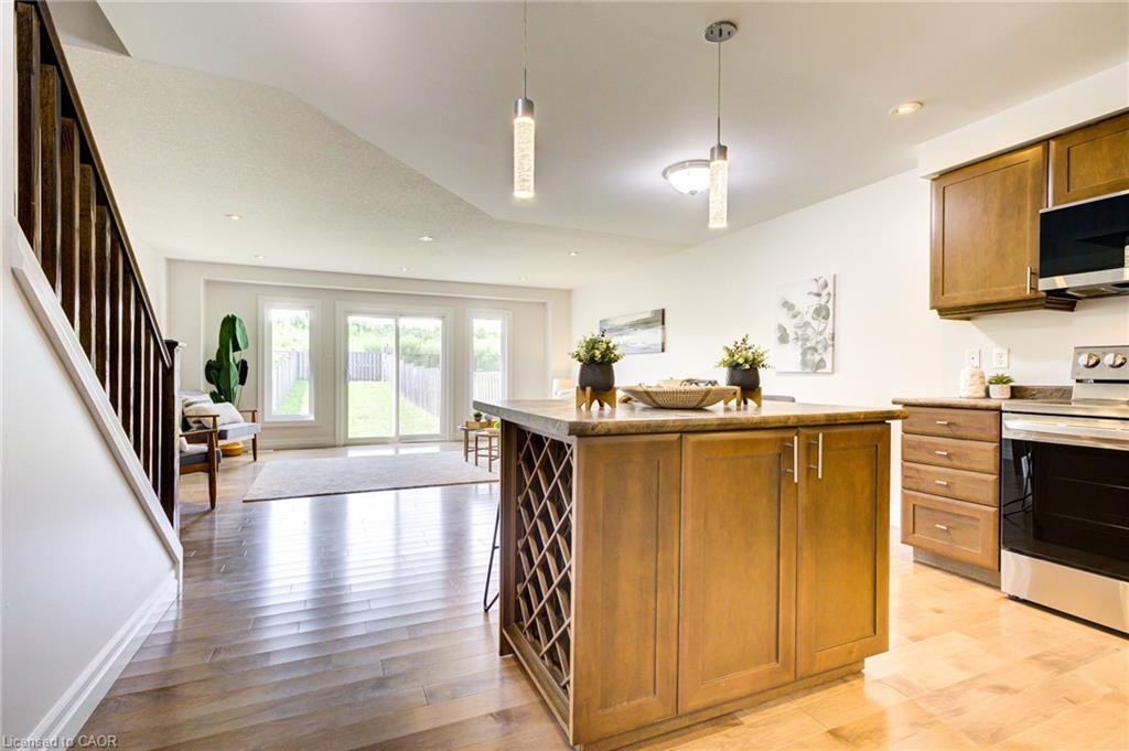 Freshly painted and move-in ready, this beautiful FREEHOLD town-home shows AAA and offers quick possession. Featuring a bright, open concept floor plan with 3 spacious beds, 3 baths, 6 newer appliances (fridge + stove 2025), floating kitchen island with wine rack, hardwood floors, c/air, 4pcs en-suite and c/vac. Needing space for the kids or a home office? A few steps down to the basement level you’ll find a large finished rec room with newer carpet, laundry area, storage and a rough-in bathroom awaiting your finishing touches. Step out the living room sliders to a deep, 154ft fully fenced yard backing onto a scenic nature trail and no rear neighbors. Other notables include updated light fixtures, new interior door handsets, upgraded front door, primary walk-in closet and a wide interlock walkway. Located on a crescent in a sought after Kitchener neighborhood, this fabulous home is only minutes from schools, shopping, parks and all amenities. Be sure to add 256 Countrystone Crescent to your must see list today!