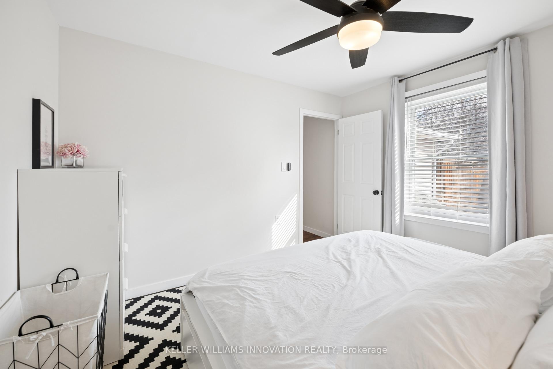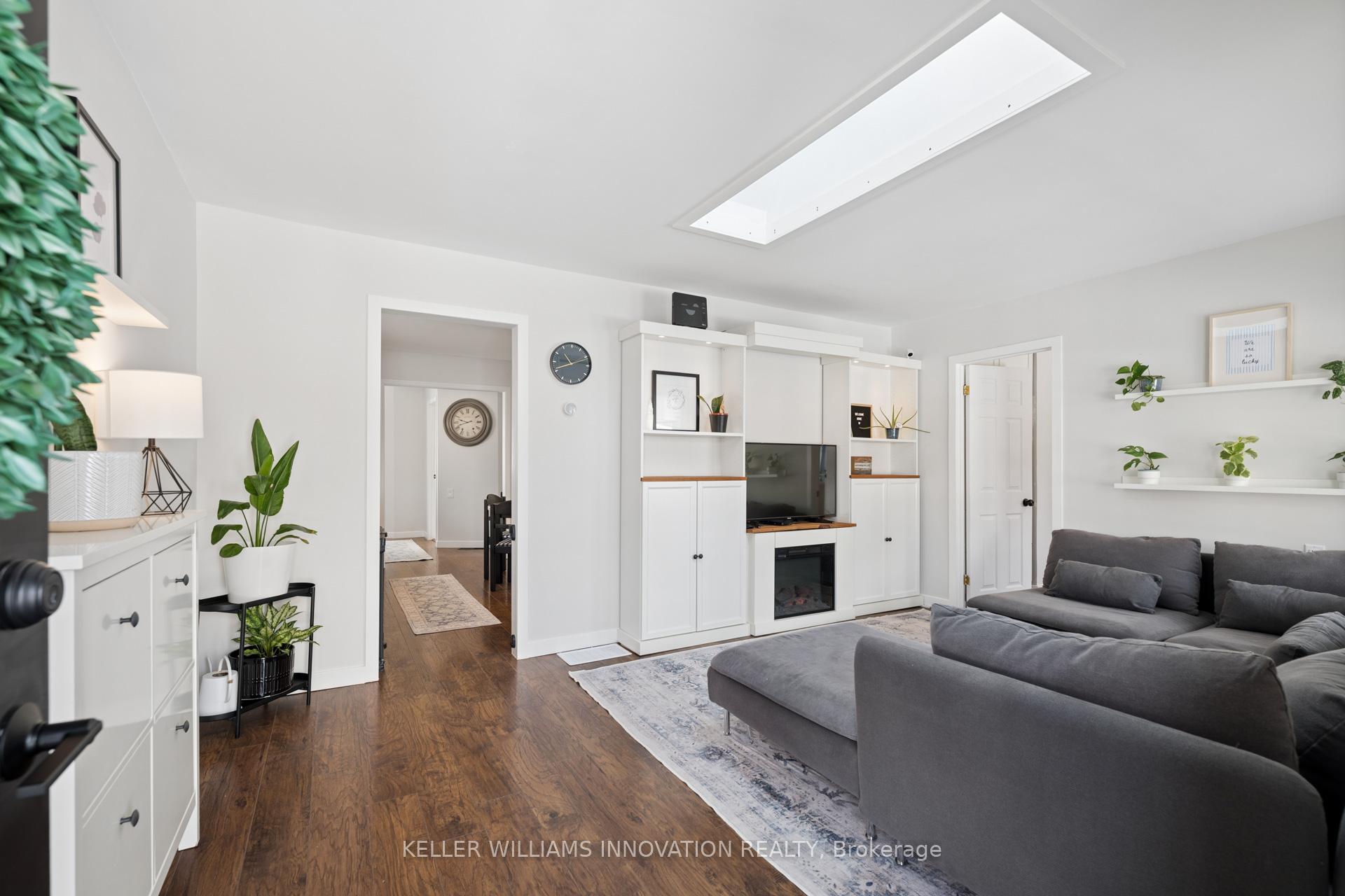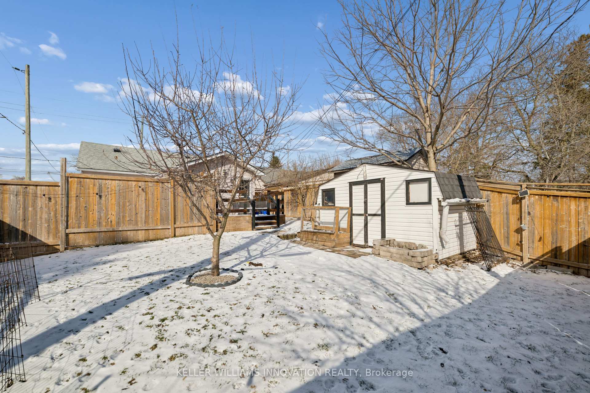 Imagine your morning coffee on this covered front porch. Meticulously maintained and beautifully updated 2-bedroom detached home in desirable Preston North, just minutes to Hwy 401 and walking distance to Riverside Park and the Grand River. This move-in ready home features a bright layout , sky lights and large windows. Upgraded kitchen and bathroom, along with thoughtful updates and quality finishes throughout. A rare finished basement find with high ceilings and a washroom adds that valuable living space for your future game day headquarters. Enjoy the large deck overlooking a private oversized fully fenced yard with shed, or relax on the charming covered front porch. Major systems including plumbing, electrical, heating, A/C, roof, windows, doors, and appliances have been well maintained. A perfect opportunity for first-time buyers or down-sizers seeking a turn-key home in a fantastic location.
