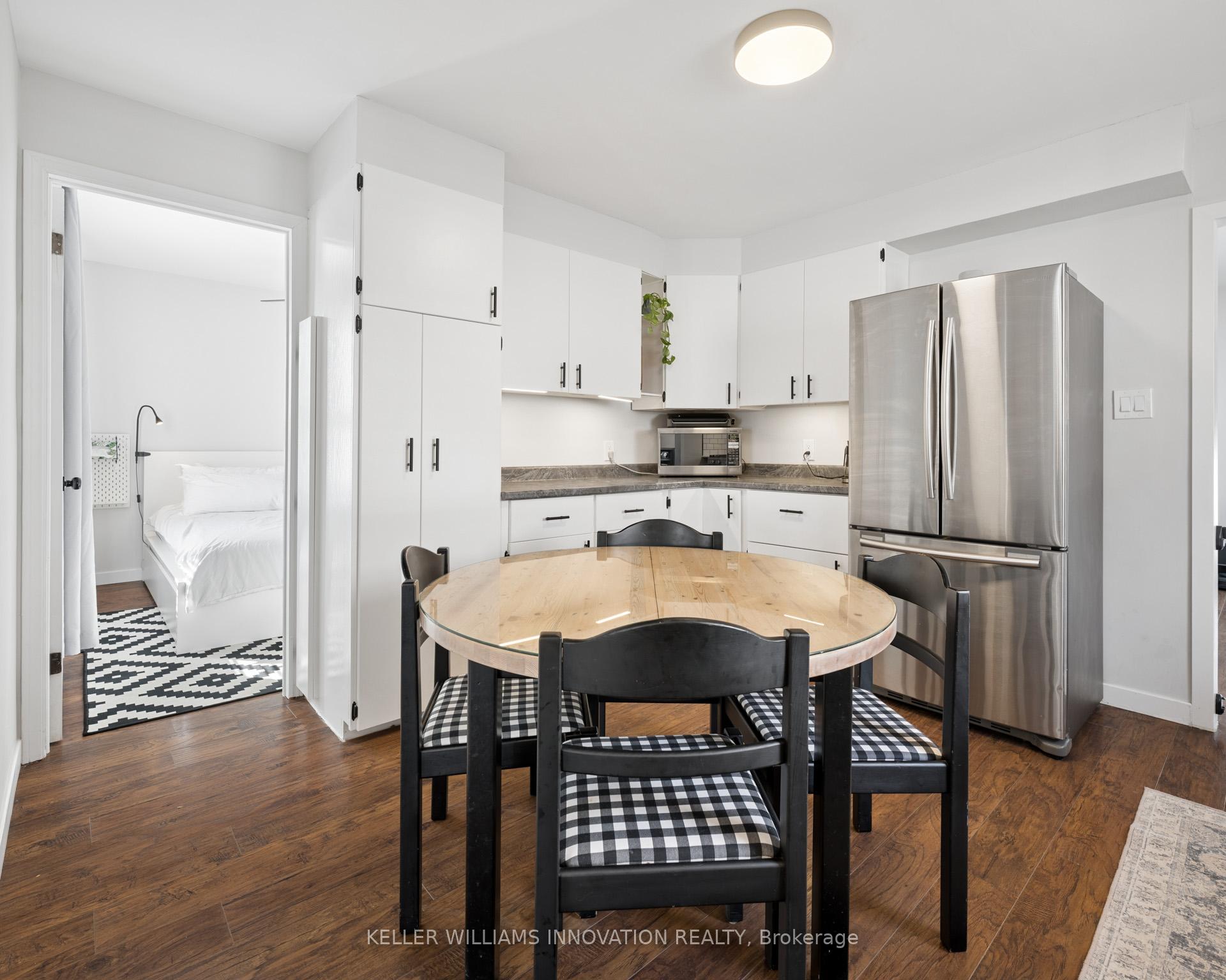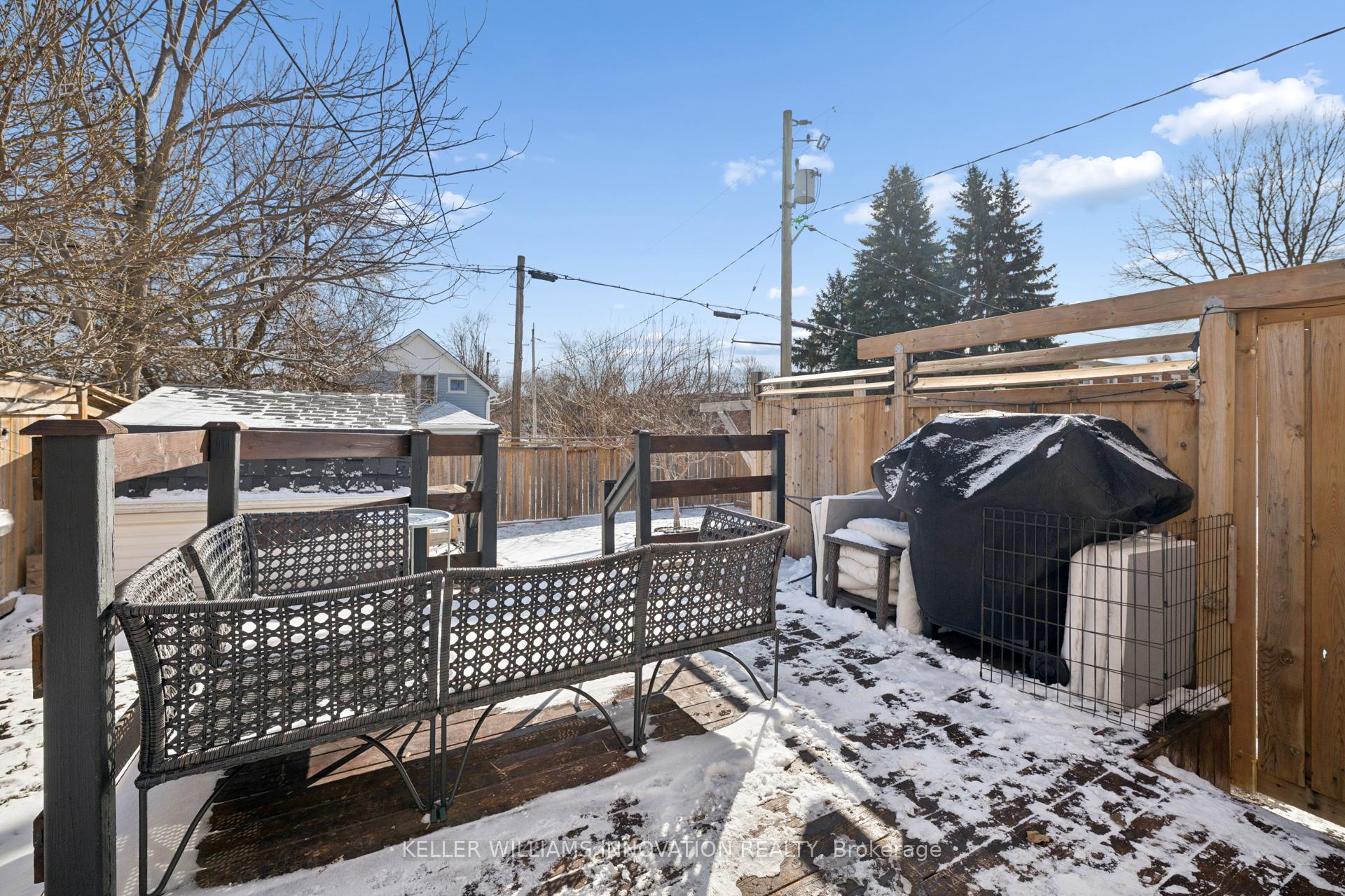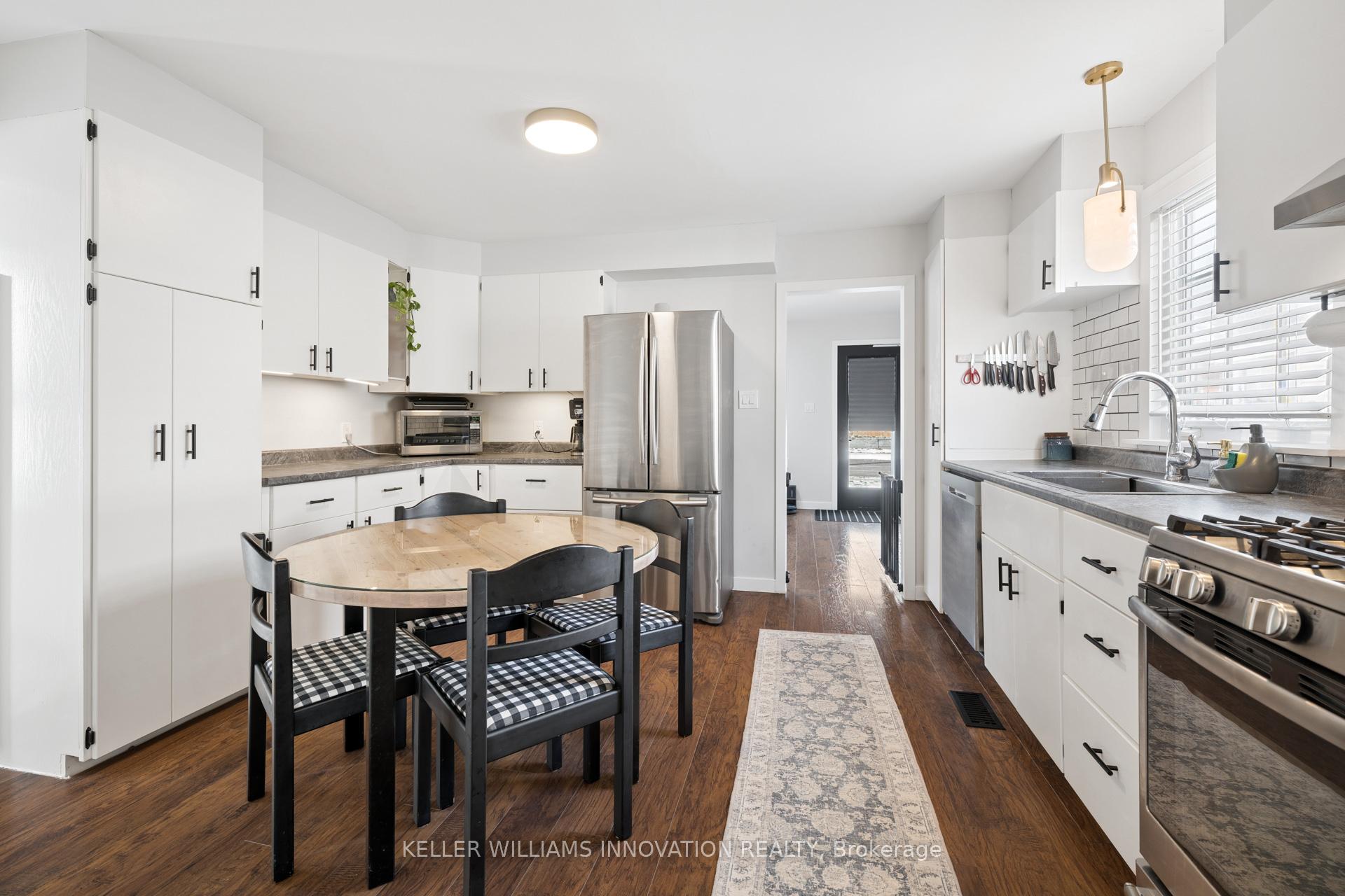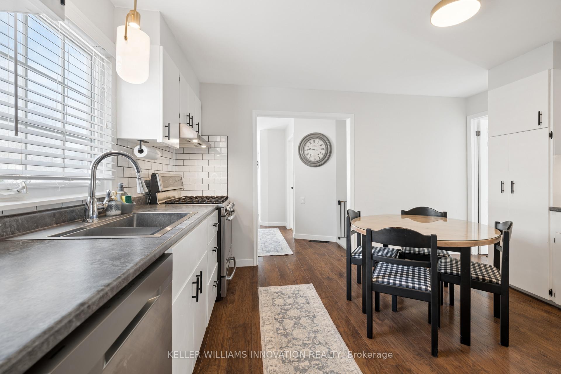 Imagine your morning coffee on this covered front porch. Meticulously maintained and beautifully updated 2-bedroom detached home in desirable Preston North, just minutes to Hwy 401 and walking distance to Riverside Park and the Grand River. This move-in ready home features a bright layout , sky lights and large windows. Upgraded kitchen and bathroom, along with thoughtful updates and quality finishes throughout. A rare finished basement find with high ceilings and a washroom adds that valuable living space for your future game day headquarters. Enjoy the large deck overlooking a private oversized fully fenced yard with shed, or relax on the charming covered front porch. Major systems including plumbing, electrical, heating, A/C, roof, windows, doors, and appliances have been well maintained. A perfect opportunity for first-time buyers or down-sizers seeking a turn-key home in a fantastic location.