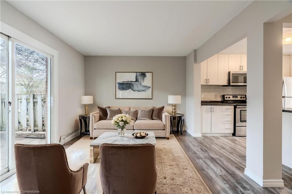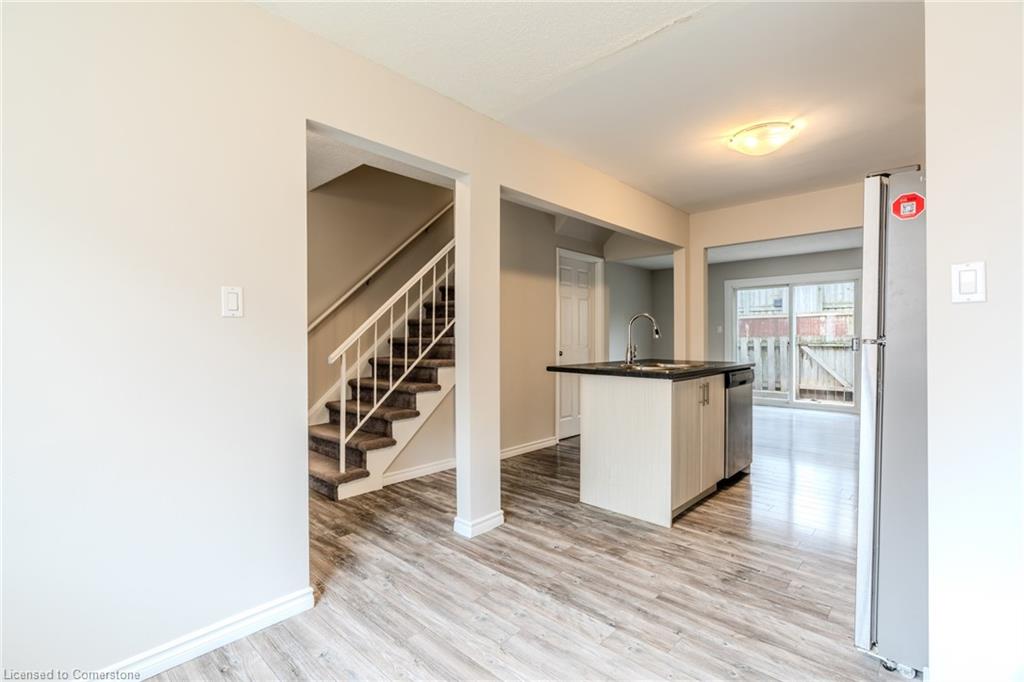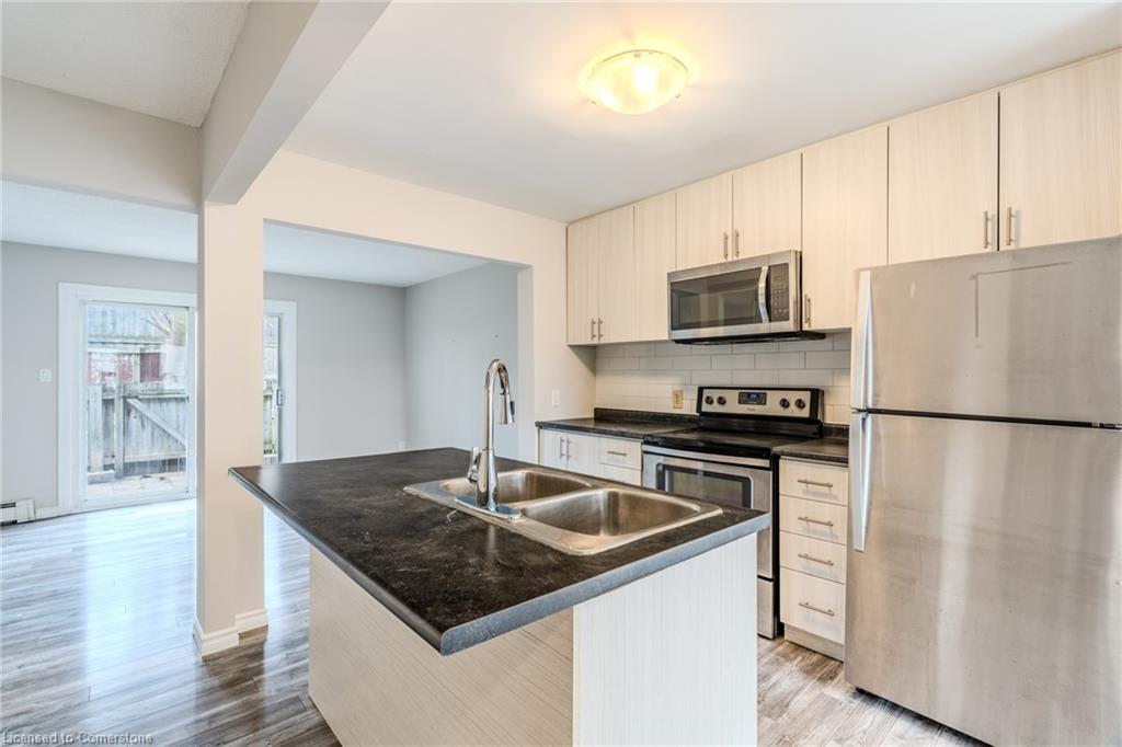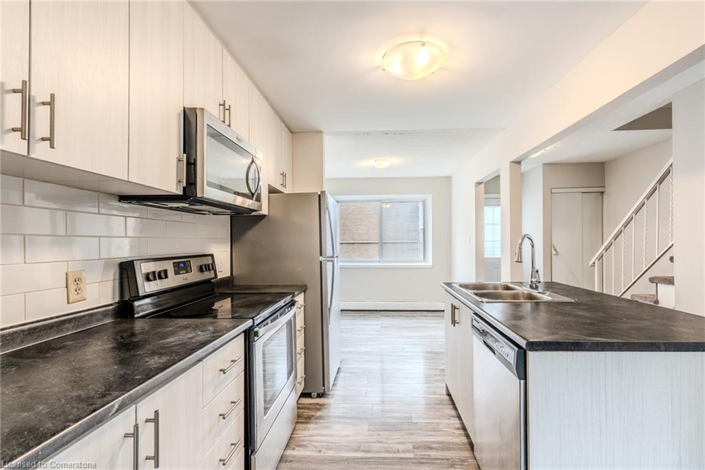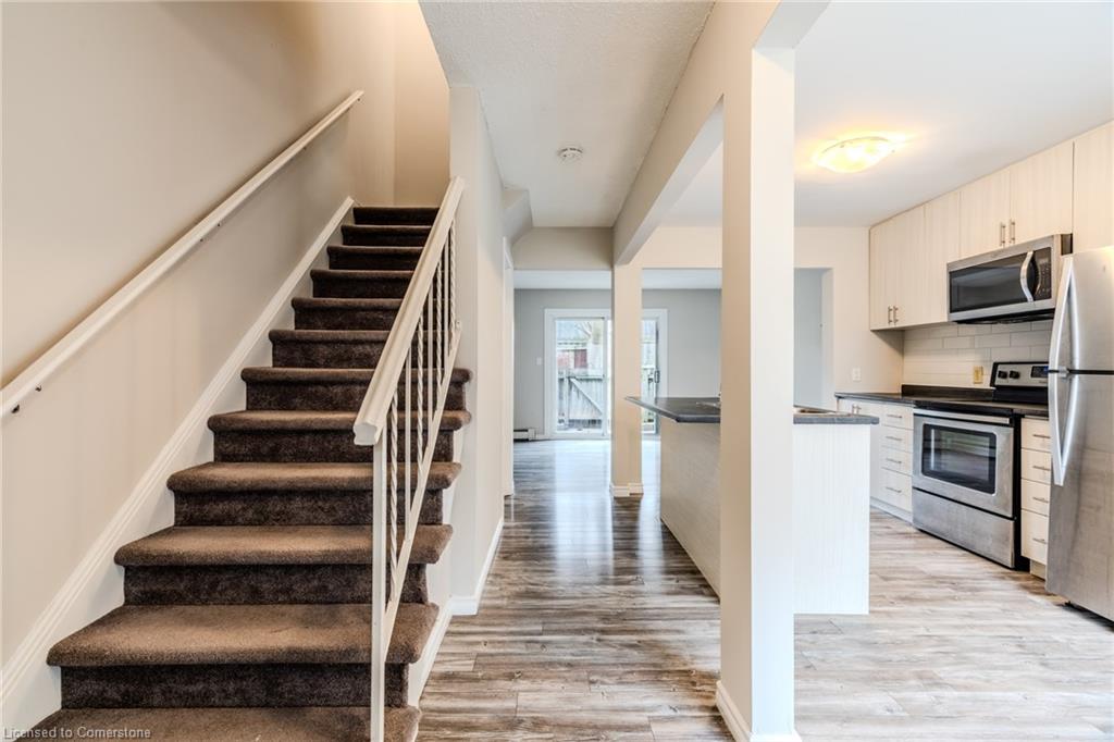 Welcome To This Charming 2-Bedroom, 1-Bath Townhouse In Kitchener! Featuring An Open-Concept Layout And A Private Fenced Backyard, This Home Is Perfect For Relaxing Or Entertaining. The Bright Living And Dining Area Opens Directly To The Backyard, While The Spacious Eat-In Kitchen Boasts An Island, Stainless Steel Appliances, And A Welcoming Breakfast Area. Upstairs, Both Bedrooms Offer Mirrored Closets And Large Windows That Fill The Space With Natural Light. Freshly Painted Throughout!The Unspoiled Basement Provides Plenty Of Storage Or The Perfect Blank Canvas To Create The Rec Room Of Your Dreams. Ideally Located Just 8 Minutes From The Expressway And 4 Minutes From Fairview Park Mall, With Chicopee Ski Hill And Scenic Community Trails Just A Bike Ride Away. A Fantastic Opportunity For First-Time Buyers Or Savvy Investors! Close To Schools, Parks, Shops, Restaurants And Groceries. See It First Before It Is Gone!