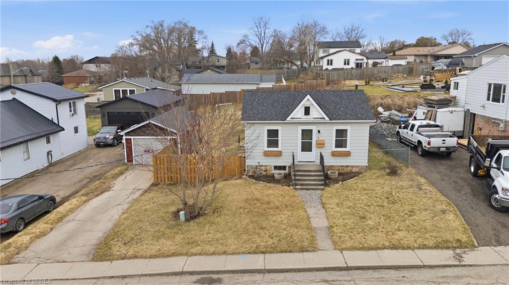 Welcome to this adorable, detached bungalow nestled in the pretty little town of Paris. This warm and inviting home offers 3 comfortable bedrooms and is filled with natural light, warm wood tones, fresh paint and trim and nearly 9-foot ceilings throughout. The updated eat-in kitchen features stylish butcher block countertops and modern hardware. Enjoy the convenience of the practical mudroom, ideal for keeping jackets, shoes, and backpacks organized year-round. A functional one level layout makes this home move in ready for both families or retirees, while the unfinished basement offers potential for storage or future living space. Step outside to enjoy a spacious, fenced backyard, perfect for relaxing, gardening, or summer gatherings. The detached garage provides excellent space for storage, a workshop, or hobby area. Located on a quiet and safe street, just minutes from schools, the fairgrounds, parks, scenic trails and green space. Take a quick bike ride to the vibrant shops and restaurants of downtown. This home offers the perfect blend of comfort, character, and small-town charm. (Stove, Washer Dryer 2023) (Flooring 2023)