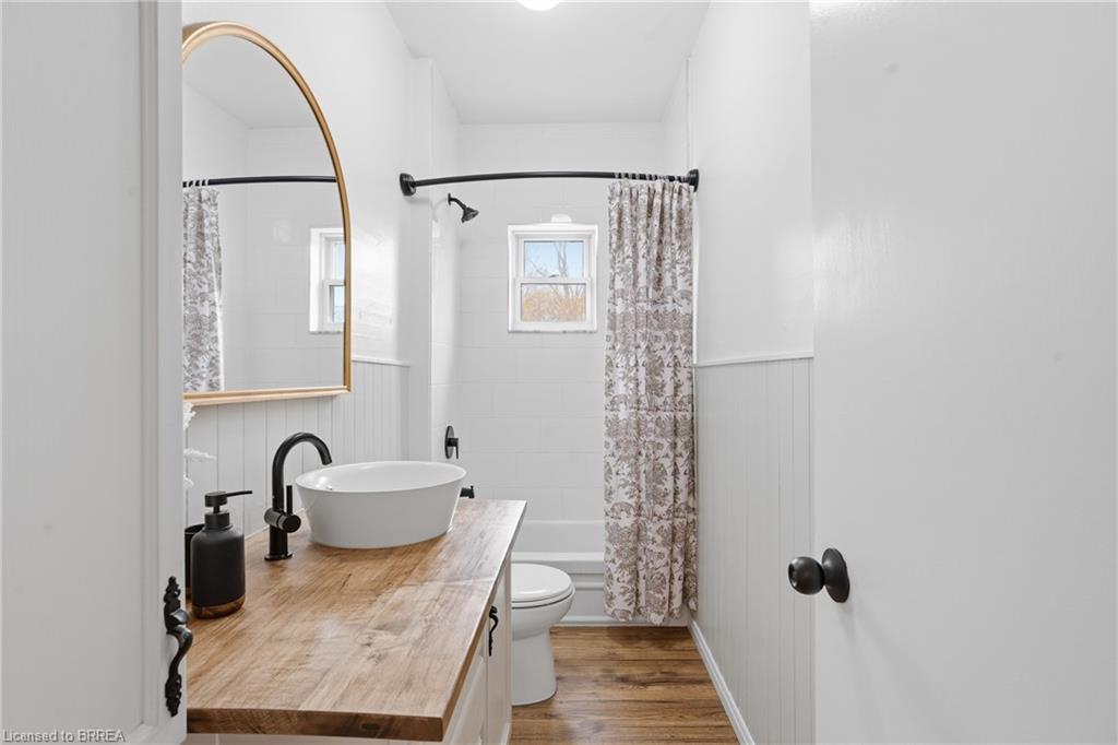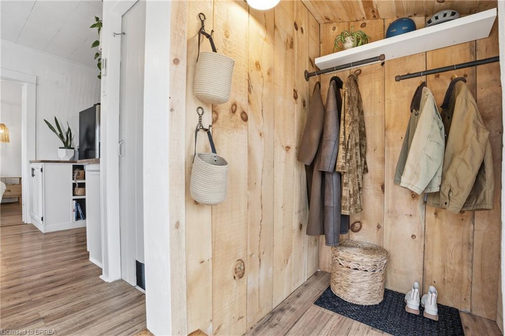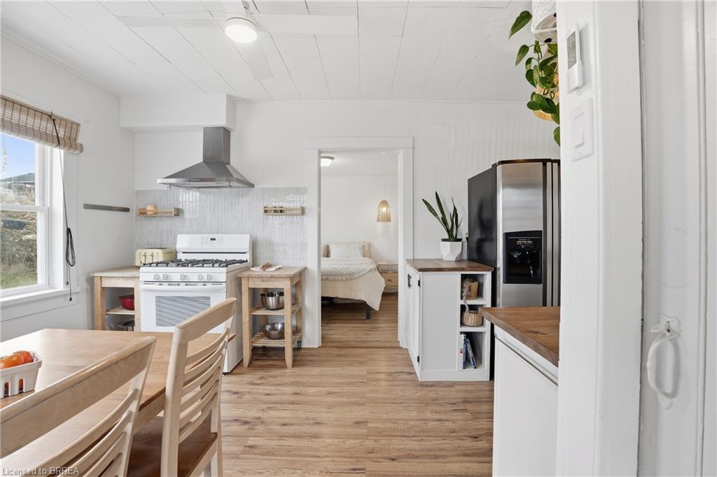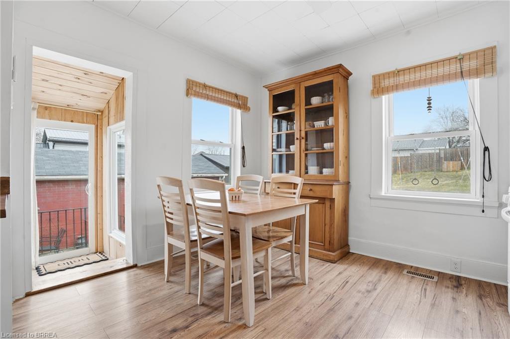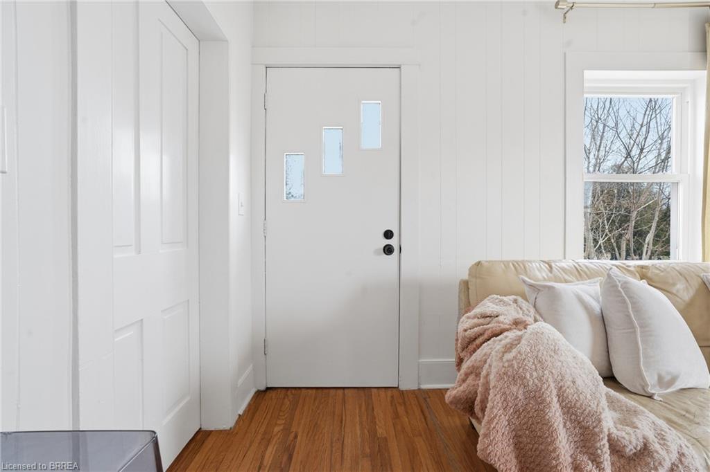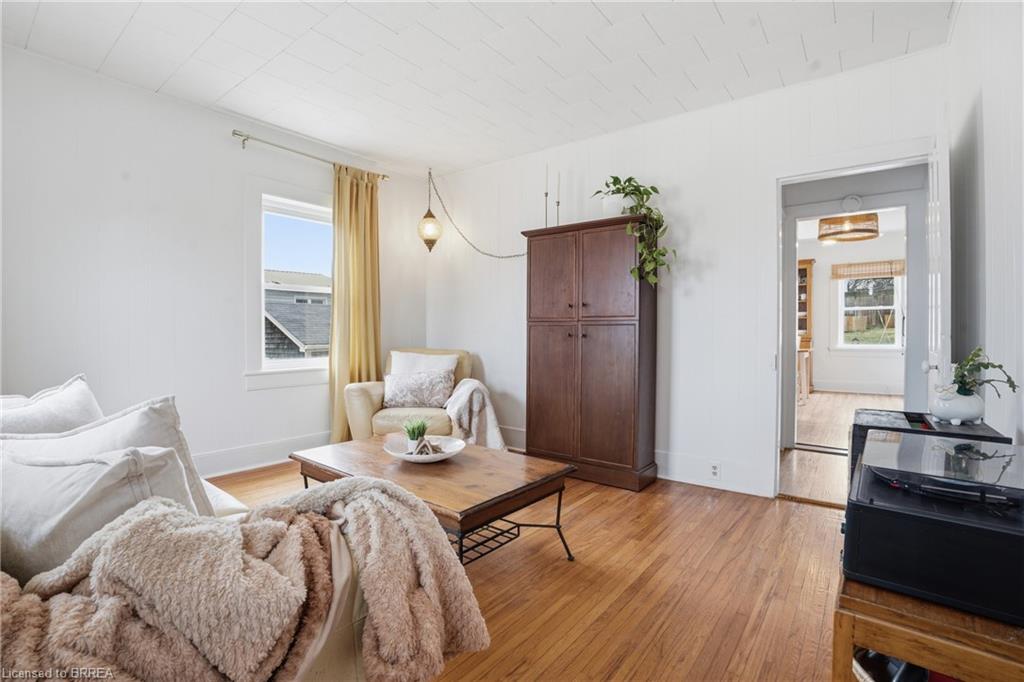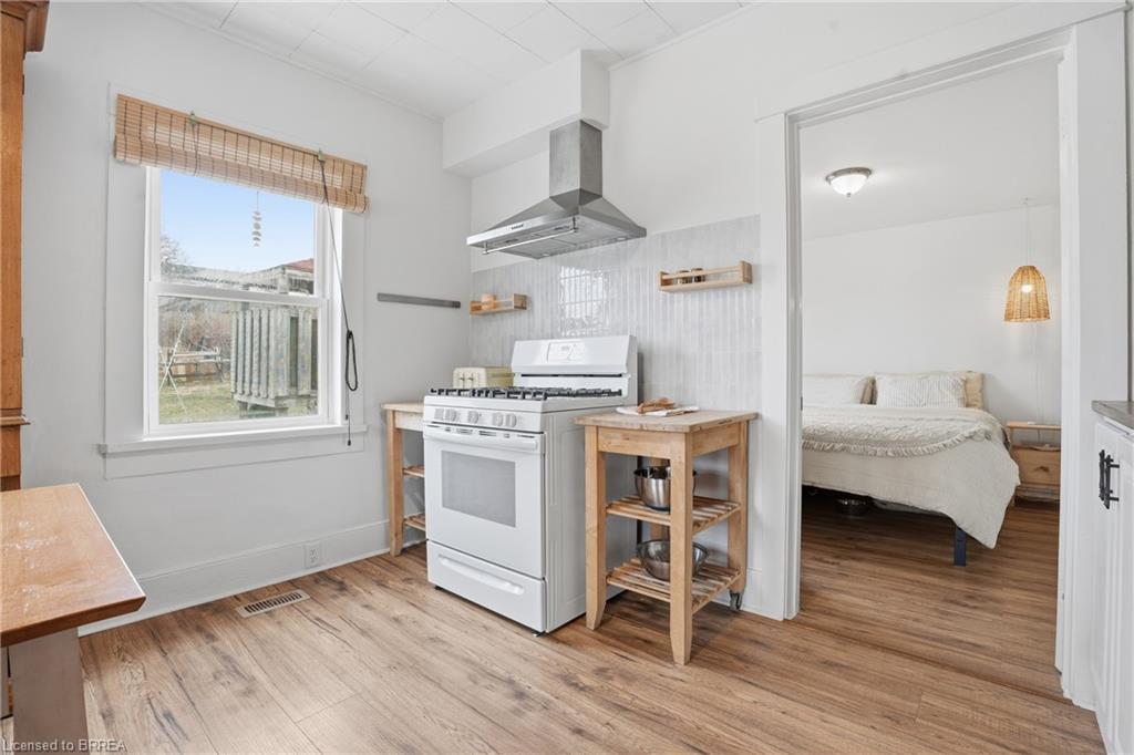Welcome to this adorable detached bungalow nestled in the pretty little town of Paris. This warm and inviting home offers 3 comfortable bedrooms and is filled with natural light, warm wood tones, fresh paint and trim and nearly 9 foot ceilings throughout. The updated eat-in-kitchen features stylish butcher block countertops and modern hardware. Enjoy the convenience of the practical mudroom, ideal for keeping jackets, shoes, and backpacks organized year-round. A functional one level layout makes this home move in ready for both families or retirees, while the unfinished basement offers potential for storage or future living space. Step outside to enjoy a spacious, fenced backyard, perfect for relaxing, gardening, or summer gatherings. The detached garage provides excellent space for storage, a workshop, or hobby area. Located on a quiet and safe street, just minutes from schools, the fairgrounds, parks, scenic trails and green space. Take a quick bike ride to the vibrant shops and restaurants of downtown. This home offers the perfect blend of comfort, character, and small-town charm. (Stove, Washer Dryer 2023) (Flooring 2023)