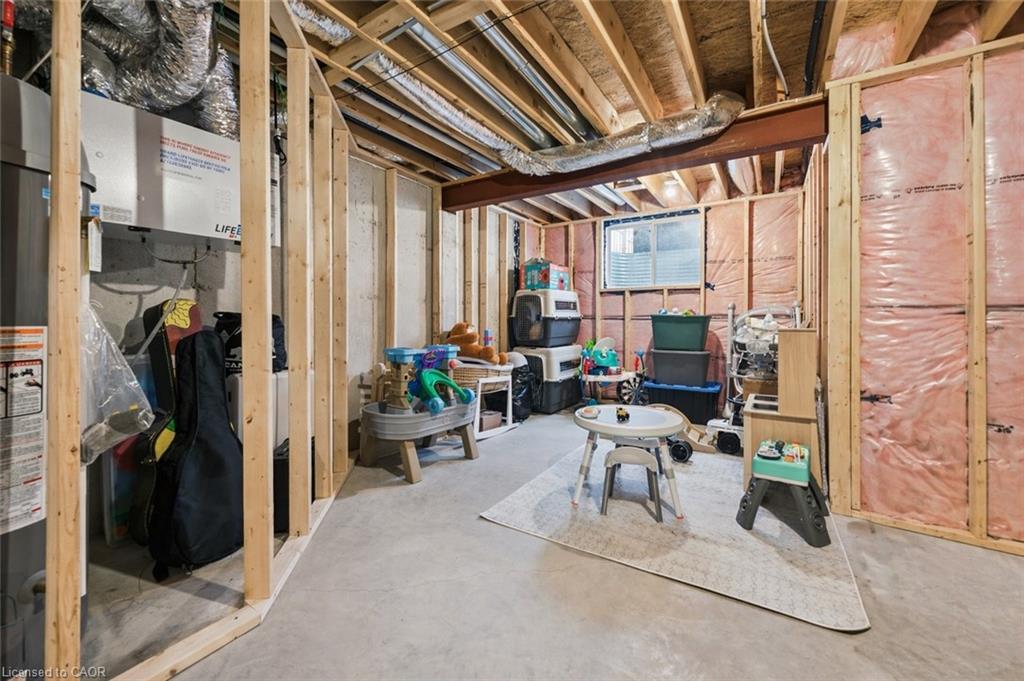The framed unfinished basement presents an excellent opportunity to customize additional living space to suit your needs, with a bathroom rough-in already in place for future development. Whether you envision a family room, gym, office, or guest suite, the possibilities are endless.