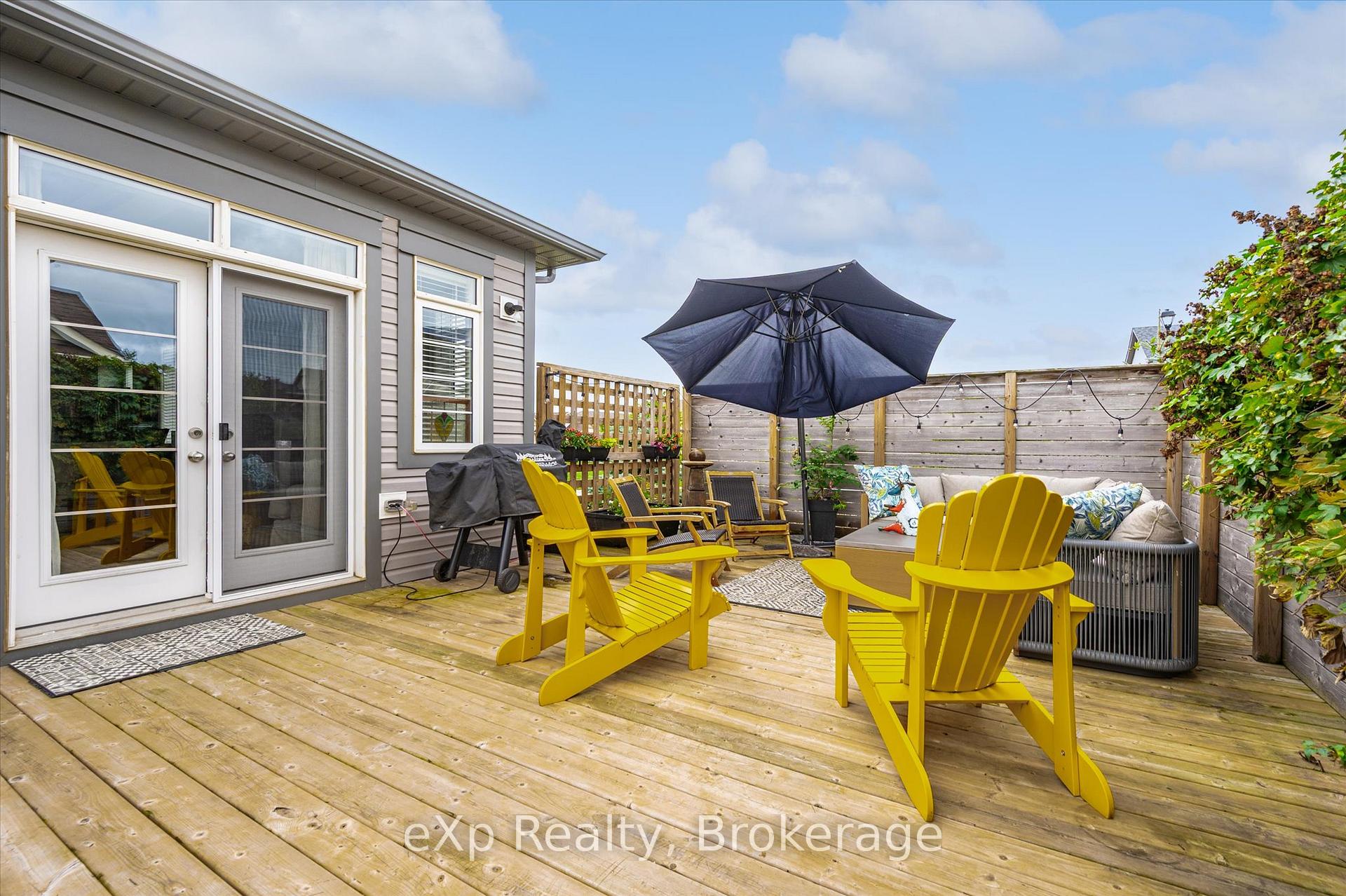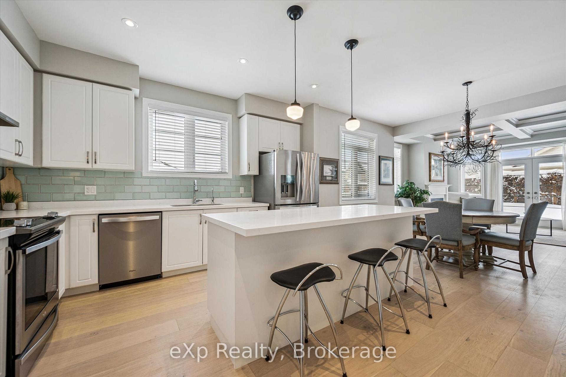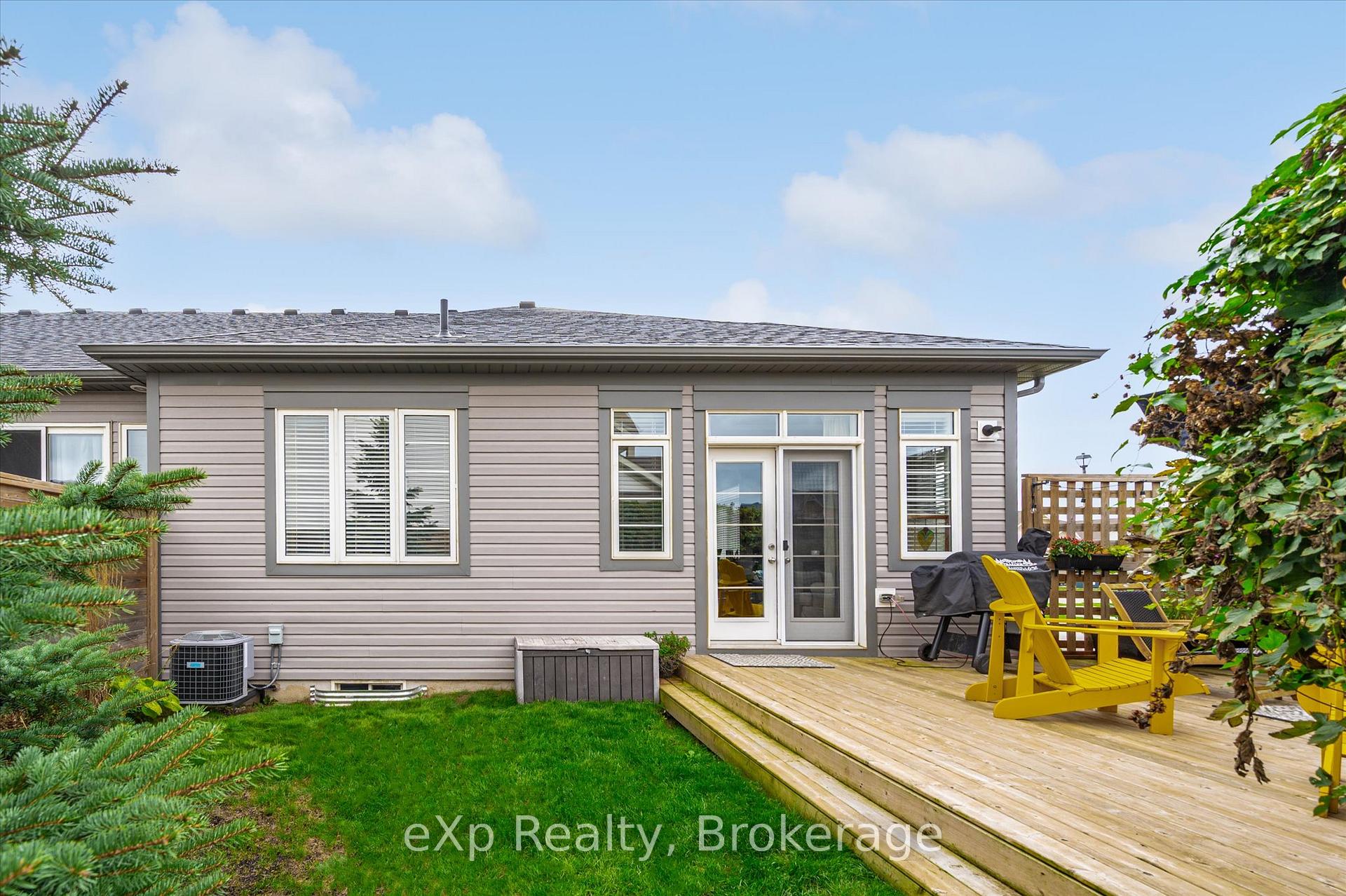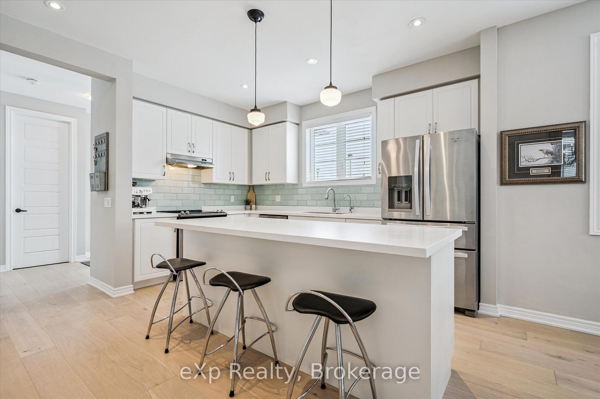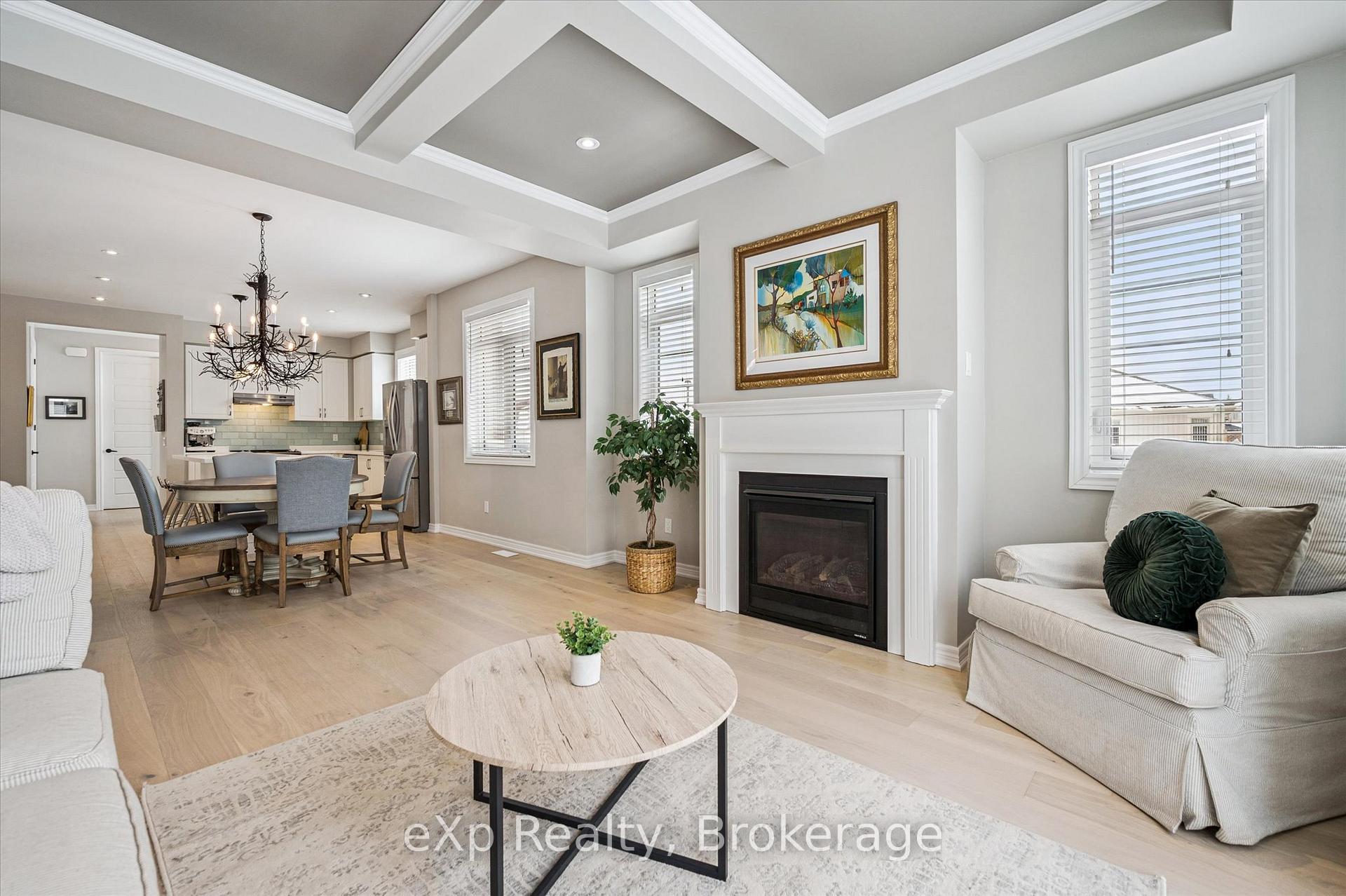 Welcome to 26 Middleton Street in Fergus, a beautifully upgraded freehold end-unit bungalow townhome offering stylish, low-maintenance living. This two-bedroom, two-bath home showcases quality finishes and thoughtful design throughout. The main level features engineered hardwood flooring, a coffered ceiling, upgraded interior doors, pot lights with dimmer switches, and a cozy gas fireplace. The kitchen has been refreshed with quartz countertops, an updated backsplash, and a new sink and faucet. The spacious bedrooms provide comfortable and functional living, with the primary suite highlighted by an upgraded ensuite featuring heated flooring. Additional features include main-floor laundry, a WiFi-enabled thermostat, water filtration system, and basement rough-in plumbing for a future bathroom. The end-unit layout offers added privacy and natural light. Outside, enjoy a deck and professional landscaping, while the garage includes a door opener and built-in shelving for extra storage. A move-in-ready bungalow with extensive upgrades in a desirable Fergus location, this home is a standout opportunity.