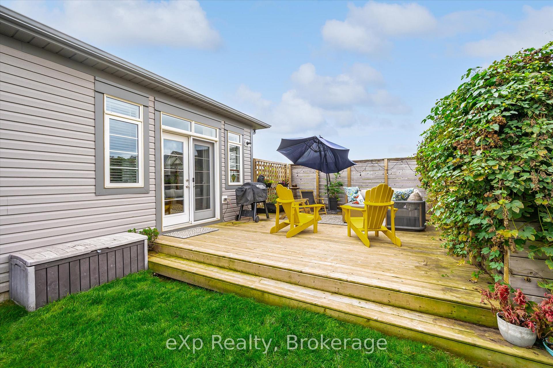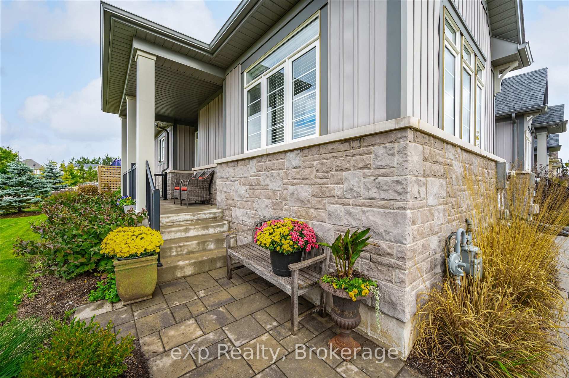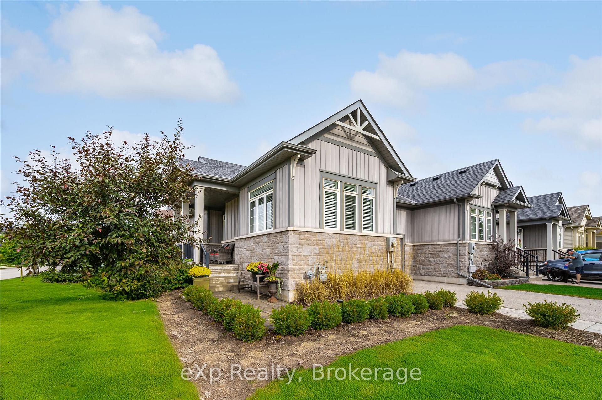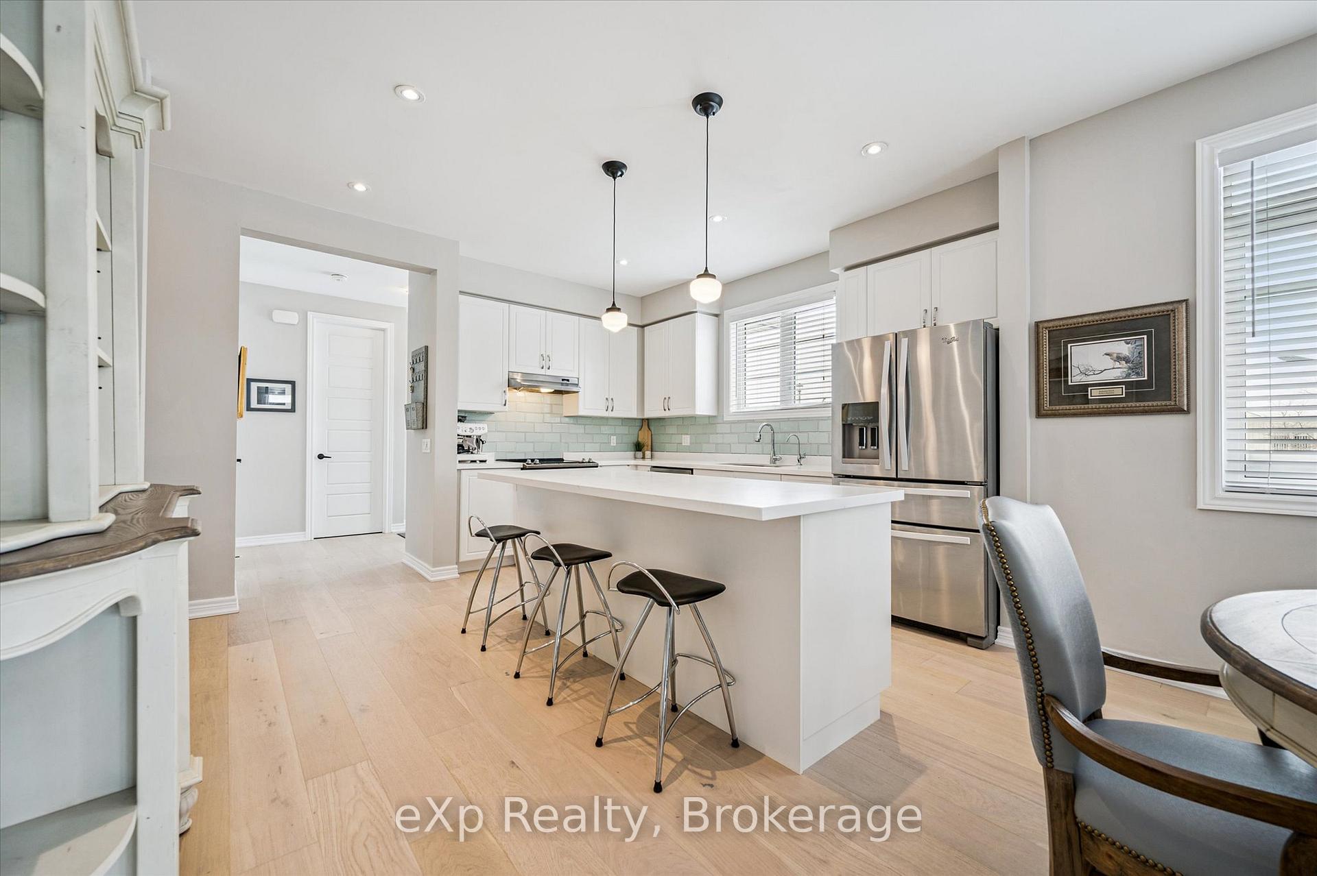 Welcome to 26 Middleton Street in Fergus, a beautifully upgraded freehold end-unit bungalow townhome offering stylish, low-maintenance living. This two-bedroom, two-bath home showcases quality finishes and thoughtful design throughout. The main level features engineered hardwood flooring, a coffered ceiling, upgraded interior doors, pot lights with dimmer switches, and a cozy gas fireplace. The kitchen has been refreshed with quartz countertops, an updated backsplash, and a new sink and faucet. The spacious bedrooms provide comfortable and functional living, with the primary suite highlighted by an upgraded ensuite featuring heated flooring. Additional features include main-floor laundry, a WiFi-enabled thermostat, water filtration system, and basement rough-in plumbing for a future bathroom. The end-unit layout offers added privacy and natural light. Outside, enjoy a deck and professional landscaping, while the garage includes a door opener and built-in shelving for extra storage. A move-in-ready bungalow with extensive upgrades in a desirable Fergus location, this home is a standout opportunity.