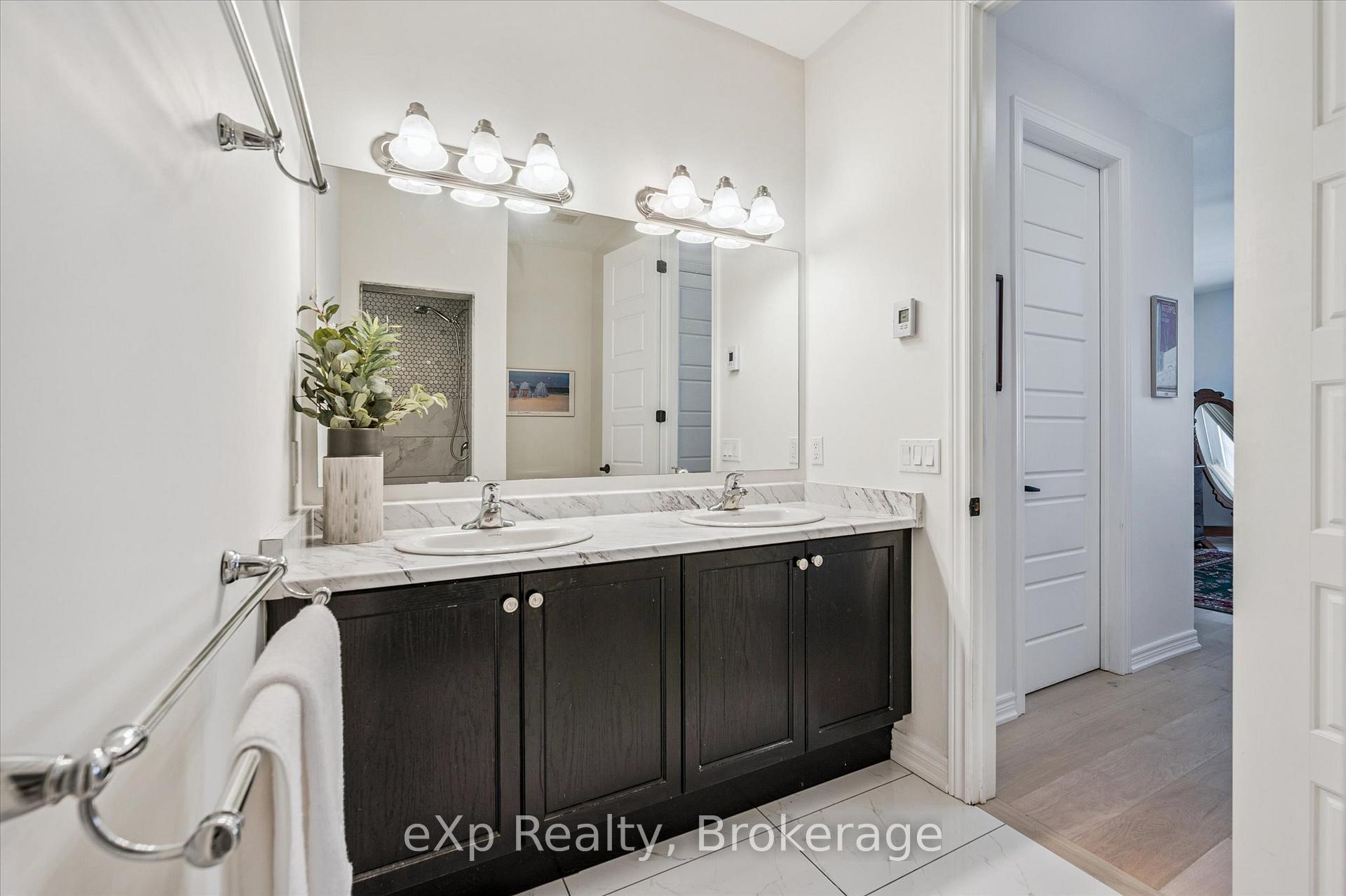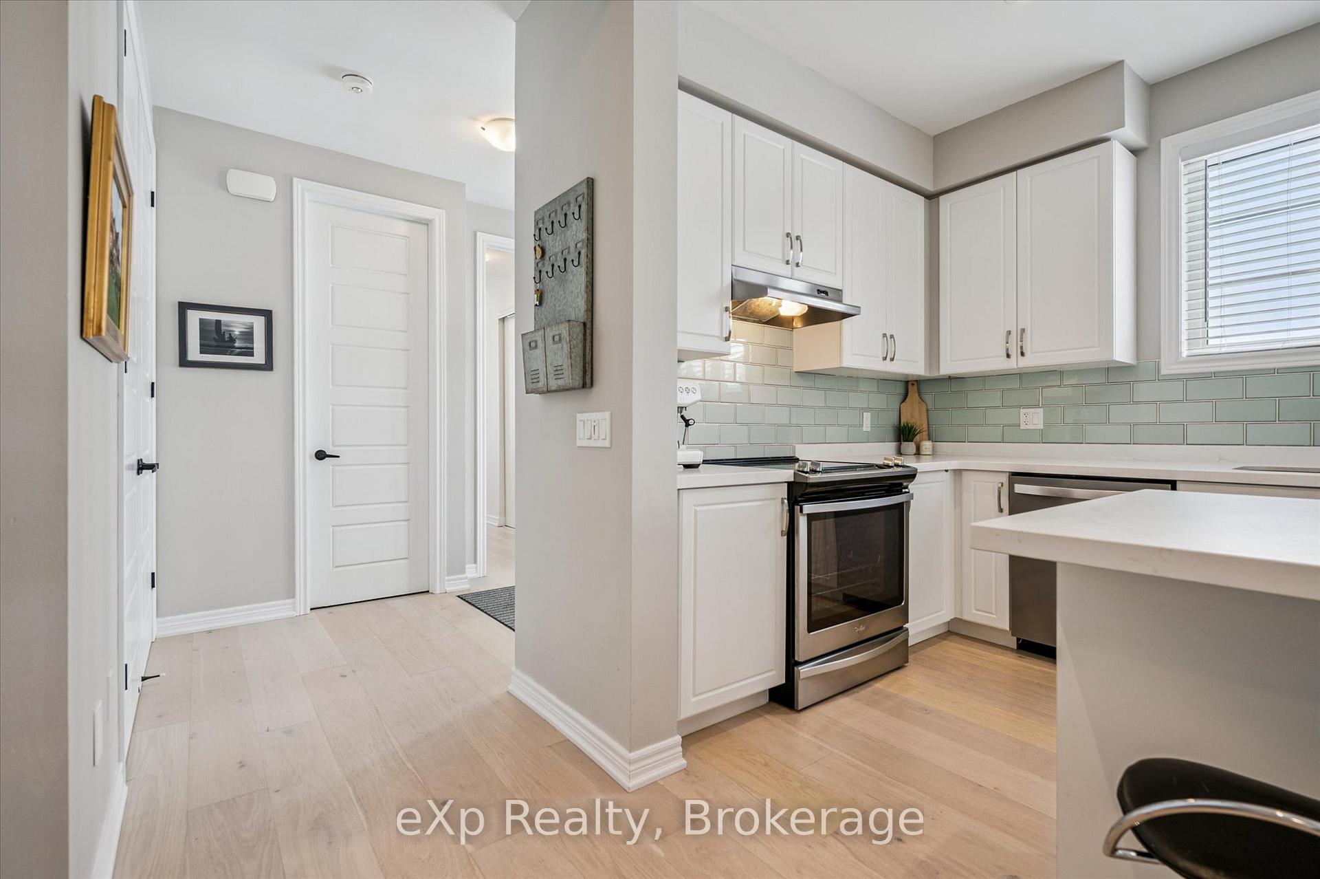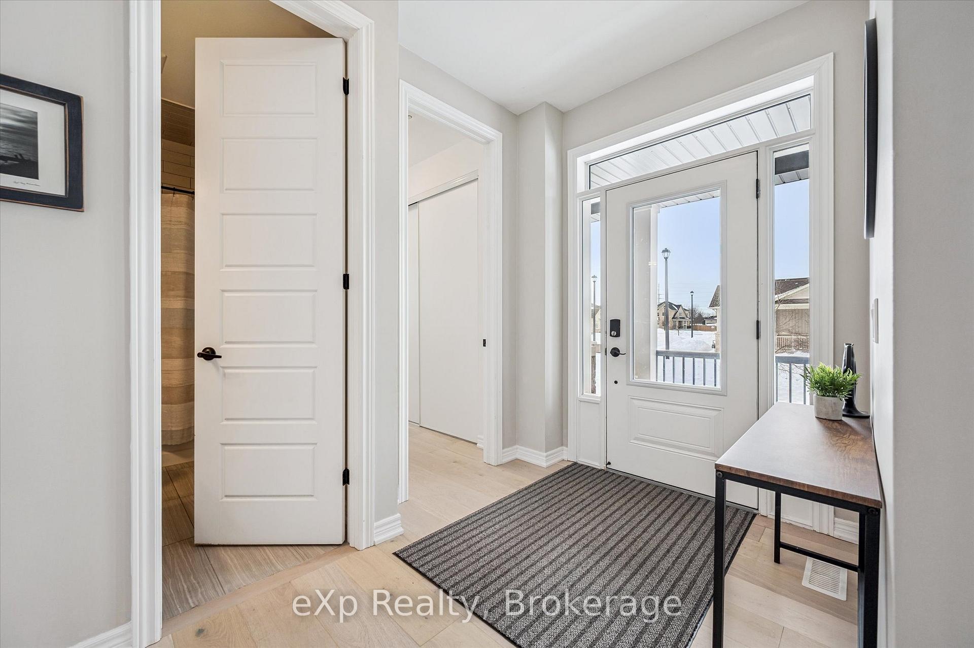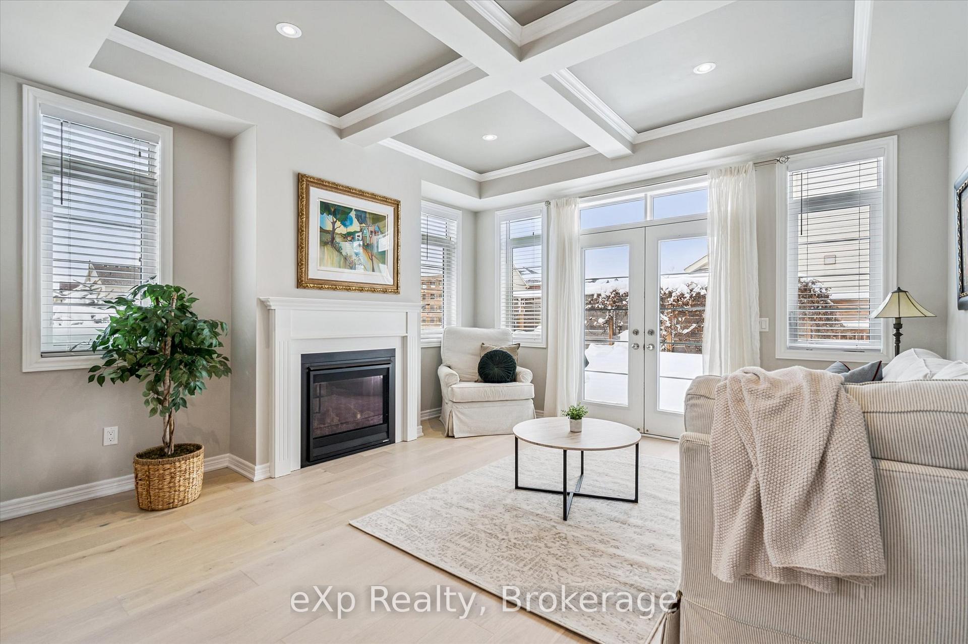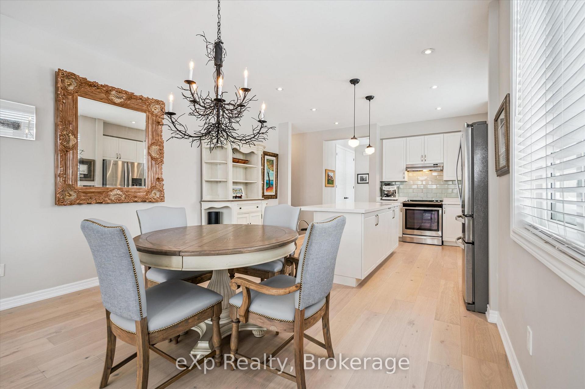 Welcome to 26 Middleton Street in Fergus, a beautifully upgraded freehold end-unit bungalow townhome offering stylish, low-maintenance living. This two-bedroom, two-bath home showcases quality finishes and thoughtful design throughout. The main level features engineered hardwood flooring, a coffered ceiling, upgraded interior doors, pot lights with dimmer switches, and a cozy gas fireplace. The kitchen has been refreshed with quartz countertops, an updated backsplash, and a new sink and faucet. The spacious bedrooms provide comfortable and functional living, with the primary suite highlighted by an upgraded ensuite featuring heated flooring. Additional features include main-floor laundry, a WiFi-enabled thermostat, water filtration system, and basement rough-in plumbing for a future bathroom. The end-unit layout offers added privacy and natural light. Outside, enjoy a deck and professional landscaping, while the garage includes a door opener and built-in shelving for extra storage. A move-in-ready bungalow with extensive upgrades in a desirable Fergus location, this home is a standout opportunity.