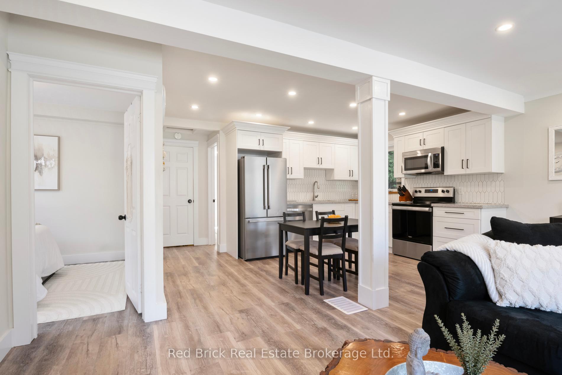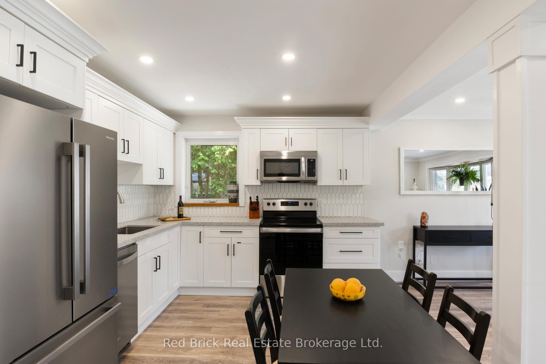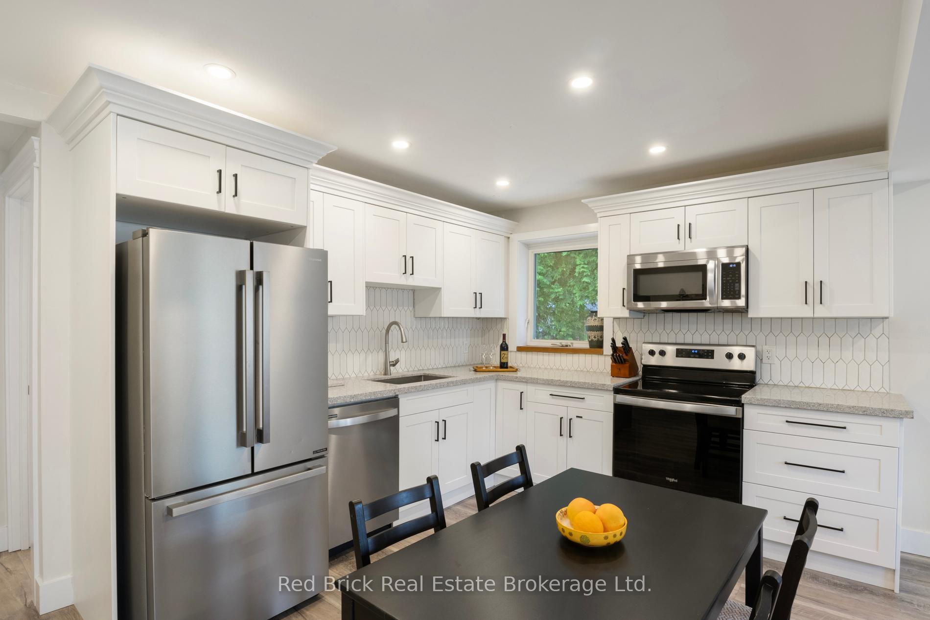 You don’t find properties that check these boxes often: bungalow, fully renovated, generous 60 x 100 ft lot, extra long driveway and its located in one of Guelph’s most scenic neighbourhoods! This home boasts a large detached garage fitted with both gas and electricity; perfect for car enthusiasts and hobbyists alike or use as a mortgage helper. This home blends modern updates with exceptional potential for families and investors and is steps to the Speed River trails and minutes to downtown. Inside, the bright open-concept living and dining area features a large bay window and pot lights throughout. The brand-new kitchen boasts crisp white cabinetry, granite countertops, and all new appliances.With 3 bedrooms and 1.5 bathrooms and main floor laundry, this home is ideal for young families or downsizers. The partial basement adds a bonus flexible space for a home office, gym, or studio. Recent upgrades, including a new furnace, A/C, roof, and attic insulation, ensure peace of mind. Outdoors, the yard has been conveniently landscaped with low maintenance in mind allowing you more time to relax and the enjoy the serenity on the private backyard patio. For investors looking for turnkey rental this property has great potential for students or mid/short term rental, and don’t forget about the garage income potential! This garage has been rented for $650/month. Located in a neighbourhood undergoing exciting redevelopment and growth, the property offers strong long-term value. Dont delay, book your showing now!