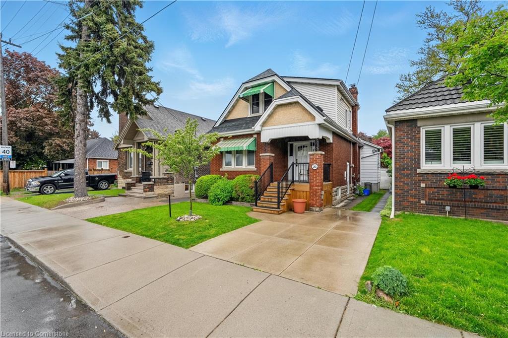 ***SEE VIRTUAL TOUR!!! Welcome to incredible value in one of Hamilton’s most sought-after neighbourhoods! This beautiful home offers over 1,422 sq ft (MPAC) above ground plus an additional 250 sq ft of finished basement space, providing flexibility and room to grow. Whether you’re a first-time buyer, looking to downsize, or seeking a great investment opportunity, this home checks all the boxes. Boasting 3 spacious bedrooms upstairs and a versatile 4th bedroom or main floor den, the layout offers both comfort and function. Enjoy the brand-new, spa-inspired 4-piece bathroom (2024) on the main level, complemented by a convenient 2-piece bathroom in the basement. The separate side entrance to the basement adds exciting potential for an in-law suite or income-generating unit, with both finished and unfinished areas to suit your plans. The main floor living room is warm and inviting, featuring a large picture window, crown moulding, decorative fireplace mantel, and original strip hardwood floors under the broadloom (in both Living and Dining Rooms). The eat-in kitchen is perfect for family meals, with easy access to the adjacent dining room for larger gatherings. Upstairs, a full 4-piece bath with tub/shower combo is ideal for families. Large windows throughout the home fill every room with natural light, creating a bright and cheerful ambiance. Set on a 30′ x 102′ lot, mature trees offer shade and privacy, while the 10′ x 16′ powered shed on a concrete pad provides the perfect space for a workshop or extra storage. The backyard is perfect for BBQs, entertaining, or relaxing evenings outdoors. Don’t miss your chance to own this versatile, well-loved home in a fantastic location. Make it yours today!