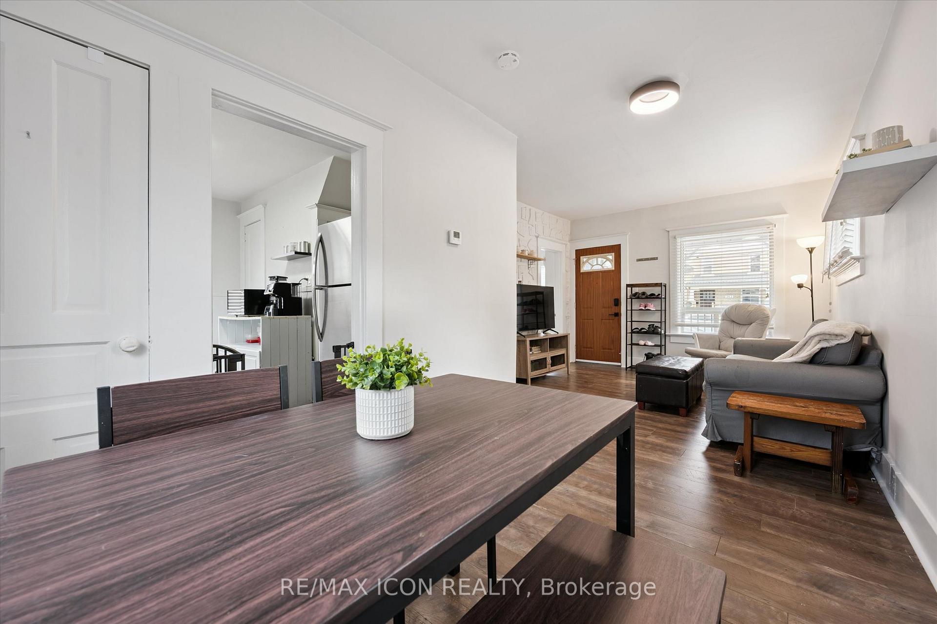 Calling all first-time home buyers and investors! This is your opportunity to get into the market with an affordable and charming century home, circa 1923. Ideally located close to downtown Kitchener and within walking distance to the LRT, Iron Horse Trail, Mill Courtland Community Centre, St. Mary’s Hospital, schools, and churches. The main floor features a welcoming living room with laminate flooring that flows into the dining area, a charming kitchen, a main-floor bedroom conveniently located next to the 4-piece bathroom, plus a loft-style bedroom upstairs. The finished basement offers a cozy rec room, laundry area, and a large storage space -perfect for a home gym – along with a walkout to the fenced backyard. Over the past two years, this home has seen numerous updates including exterior masonry work with the brick fully painted, a repaved driveway, new front porch and walkway, new eavestroughs, added attic insulation, new basement windows and back door, carpet updates, and mechanical improvements such as a new hot water tank, water softener, sump pump. Freshly painted and move-in ready, this home offers excellent value in a central, walkable location.