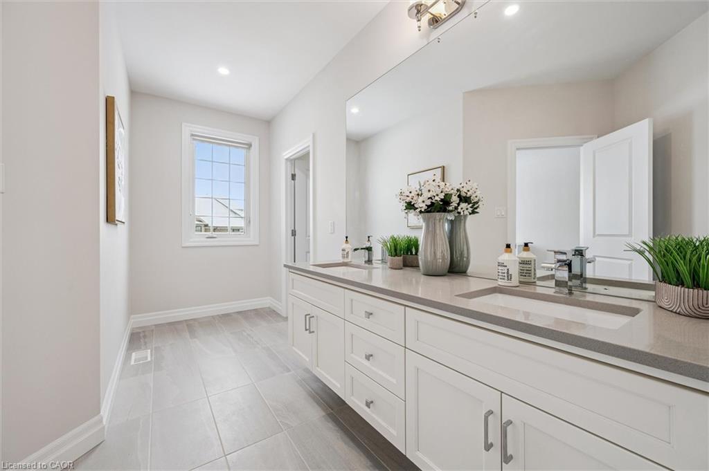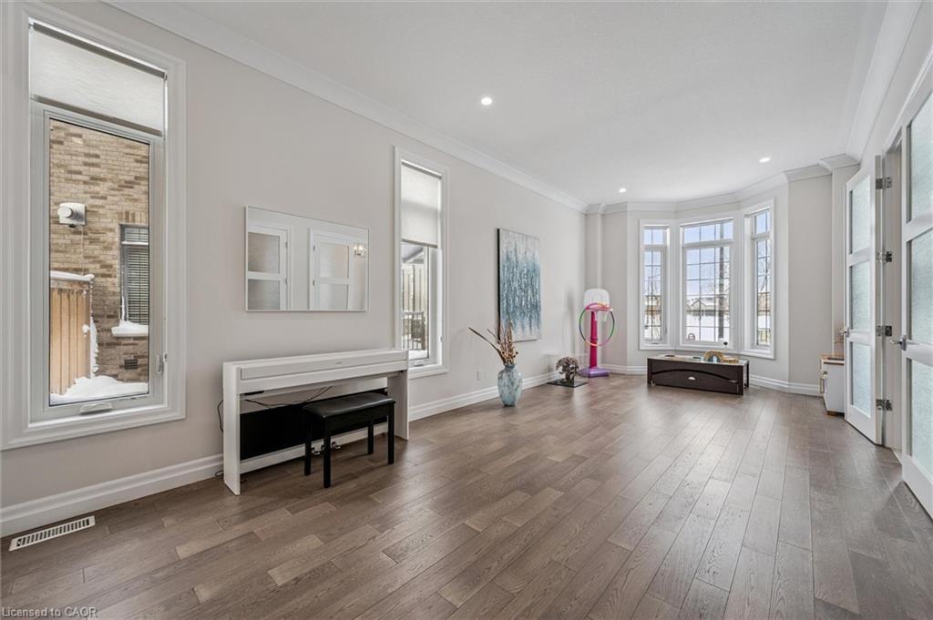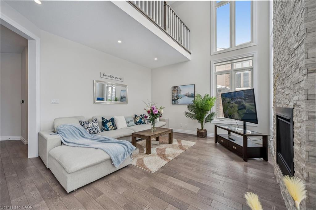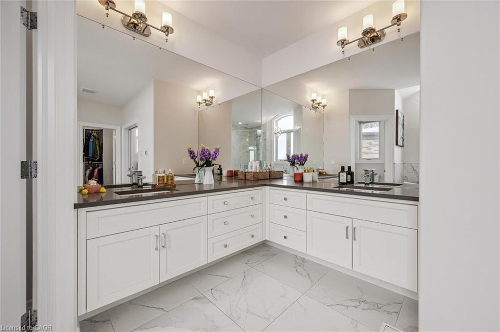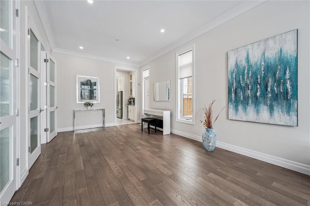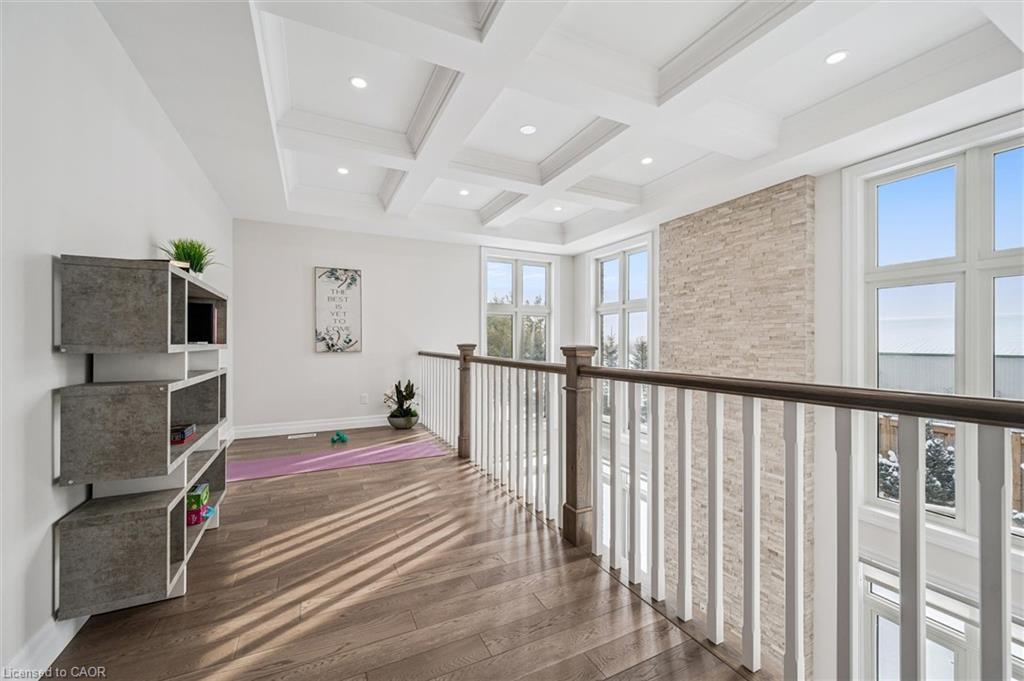 Nearly 4,000 sq ft Luxurious Executive Home Backing onto Grey Silo Golf Club, nestled in the prestigious Carriage Crossing subdivision. Rare tandem garage parks up to 3 cars, impressive 10’ ceilings on the main floor & 9’ ceilings on the 2nd level. The main floor showcases a stunning custom gourmet kitchen featuring a large island & a walk-in pantry. The elegant open to above great room is highlighted by a coffered ceiling, bright windows overlooking the backyard, & a two-storey stone gas fireplace. A large formal dining / living room with French doors, while a 5th bedrm / office off the spacious foyer provides an ideal main floor living option. The breakfast area opens to a covered patio. A rare 3pc bathrm on the main floor, along with a mudrm featuring custom locker-style cubbies. Upstairs, the spacious primary retreat features high cathedral ceiling, a luxurious 5pc ensuite & walk-in closet. Three additional bedrms include one with a private 3pc ensuite & two connected by a 5pc Jack & Jill bathroom. An upper laundry room & a loft overlooking the great room add both function & architectural interest. High-end finishes including premium doors & windows, granite & quartz countertops, hardwood flooring, ceramic tile, & extensive pot lighting. The large unspoiled basement will easily fit multiple uses including a home gym & an entertainment hub. The exterior impresses with brick & stone construction, an interlock driveway, & professionally designed landscaping. This one of Waterloo’s most desirable neighbourhoods is adjacent to the famous Rim Park Sportsplex with various indoor or outdoor sports facilities such as hockey rinks & soccer fields etc. The Grey Silo’s golf course or the Eastside Public Library, also the great natural environment with paved trails along the Grand River, be prepared to enjoy your life here & meet wildlife such as geese or deer etc. Within walking distance to Blackberry tech sector & bus route, a short drive to Universities & Conestoga Mall.
