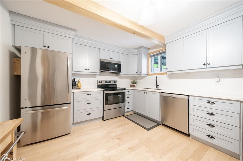 The most affordable detached home in the neighbourhood – and it’s completely move-in ready! Welcome to the house with the blue shutters, tucked at the very end of a quiet dead-end street in Hamilton’s beloved St. Clair neighbourhood. Not only does this peaceful spot offer privacy and serenity, but you’ll also enjoy plenty of street parking – a rare find in the city! Framed by the escarpment and surrounded by nature, this charming 3-bedroom home blends character with thoughtful updates. Inside, on the main floor original hardwood floors shine with care, and the custom kitchen (2021) with quartz countertops and quality finishes is perfect for family meals and slow Sundays. Comfort comes easy thanks to a new furnace (2021), while the deck (2018) and freshly fenced yard (2023) invite you to unwind outdoors. With wonderful neighbours, Gage Park, trails, and Ottawa Street shops all within walking distance, this is your chance to own a detached home in St. Clair at an incredible value. The only thing missing? You.