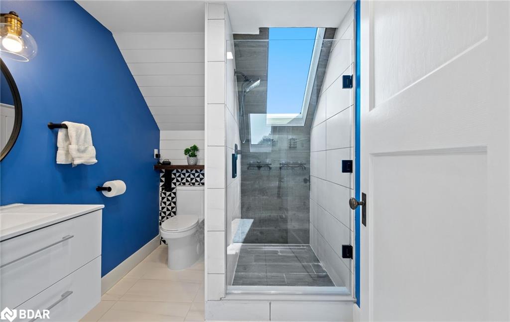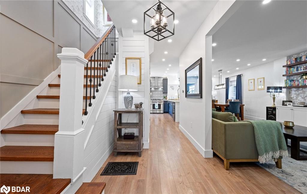 A Home That Truly Has It All! Step inside this beautifully upgraded home where comfort meets style. From the wood staircase with wrought iron spindles and elegant wainscoting, to the thoughtfully designed finishes throughout, every detail has been carefully considered. The primary bedroom retreat offers a feature wall, walk-in closet, and a spa-like 4-piece ensuite. Convenience is key with a second-floor laundry complete with stacked front-load washer/dryer and built-in storage. Main level highlights include 9 ceilings, a renovated powder room, upgraded baseboards, stylish light fixtures, and energy-efficient LED lighting. The home also boasts modern upgrades such as a new roof (2022), new siding (2025), and a striking stone & vinyl exterior. Upstairs, the third-floor bathroom impresses with a glass shower and skylight, adding light and luxury. The exterior is just as impressive with parking for 7 cars, a large enclosed deck plus a two-tiered deck, a 10×12 powered shed, exterior cameras, and a huge fully fenced backyard perfect for entertaining, kids, or pets. This home blends modern updates with functional design, offering everything todays family could want and more! Move-in ready and waiting for its next owners to call it home.
