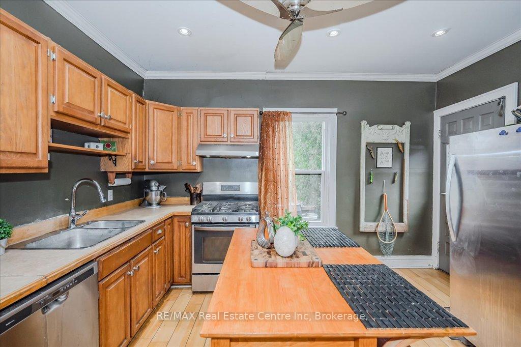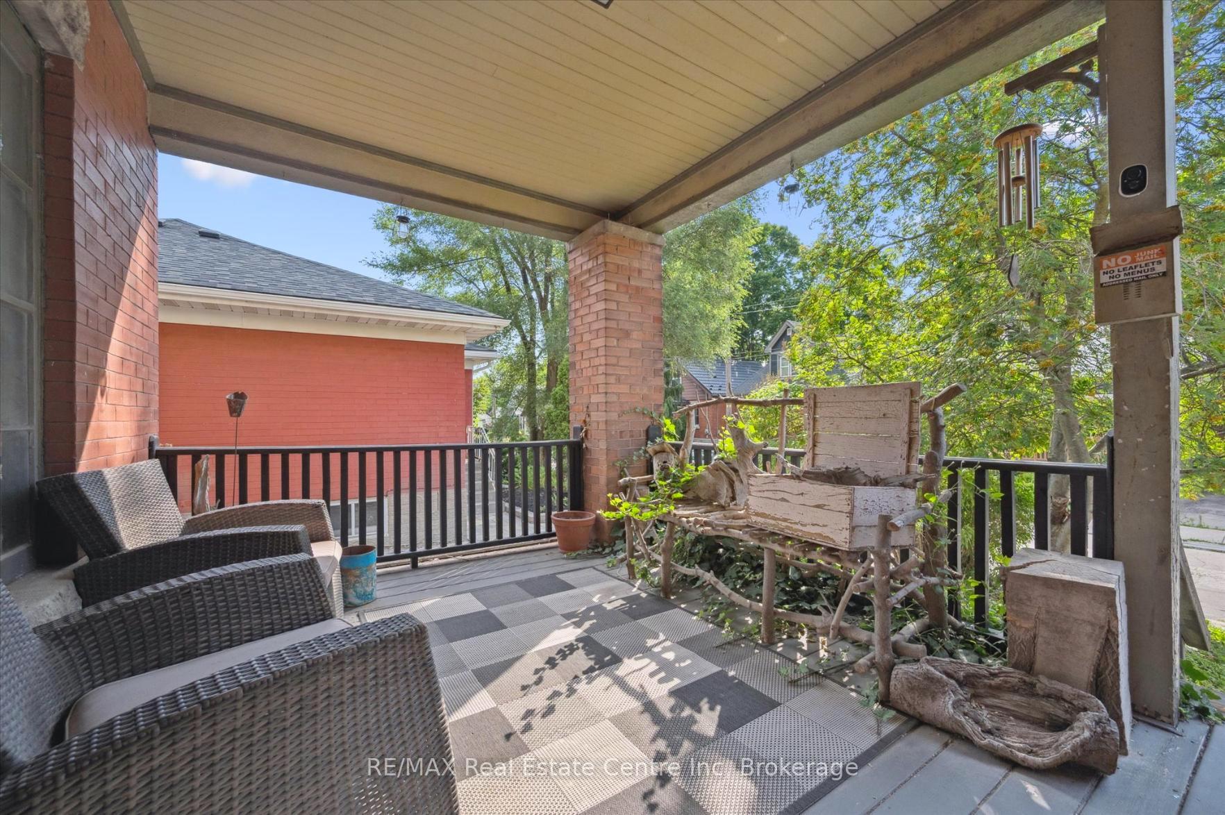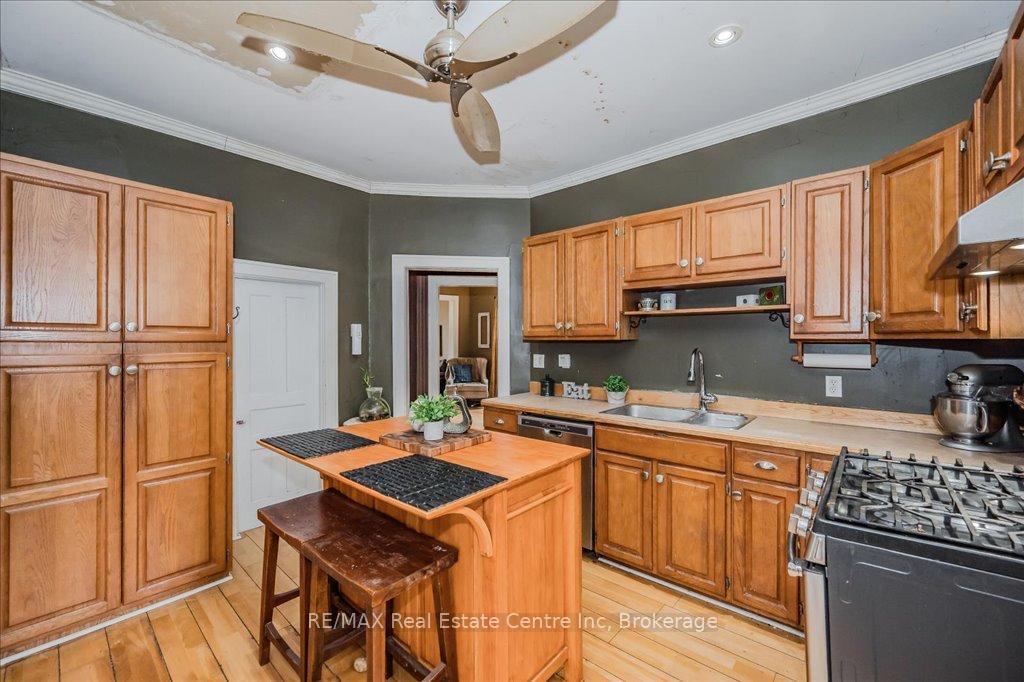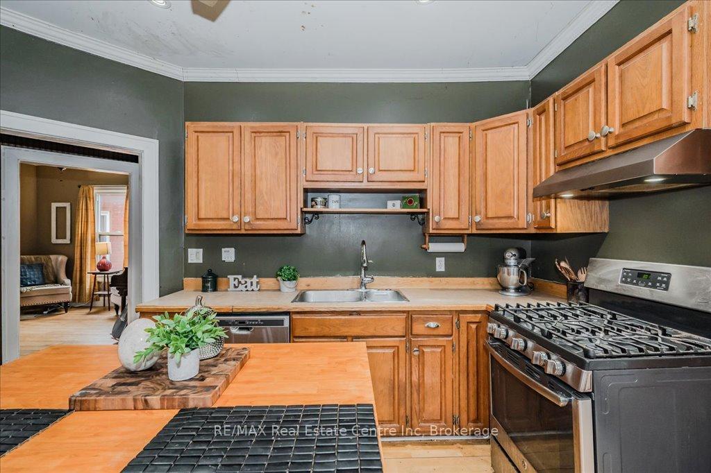 265 London Rd W is nestled in one of Guelphs most sought-after central neighbourhoods, situated on a huge lot with incredible outdoor potential! This 3-bedroom, 1-bathroom home sits proudly among mature trees and established homes, just minutes from parks, schools, shops and downtown. Inside, you’ll find the classic features that make century homes so beloved-high ceilings, wide baseboards, claw foot tub and original woodwork that speak to its rich history. The spacious eat-in kitchen offers loads of natural light, a handy walk-in pantry and ample counter space. The wide staircase leads to a generous second-floor landing-ideal as a home office or cozy reading nook. Each bedroom is filled with natural light plus the large master bedroom, with a generous closet, are all near the second floor bathroom offering convenience for growing families or guests. The basement features a laundry area and is the perfect space for watching the big games with the guys, hosting friends or enjoying a good movie. Offering custom decor and personal touches, this is a great space for relaxation and entertainment. The real showstopper? The expansive backyard! Mature trees frame the space beautifully offering privacy, shade and a peaceful retreat. With room to garden, entertain or even add a future garage or studio, the possibilities are endless. Whether its backyard games, summer BBQs or simply enjoying your own green escape, this outdoor space is rare in a location this central. Updates include wiring, plumbing, a newer roof, gas furnace, new windows, new eavestrough & new heat pump offering peace of mind while still leaving room to add your own personal touch and design. All this just steps from Exhibition Park, schools, shops and trails-the location truly doesn’t get any better!