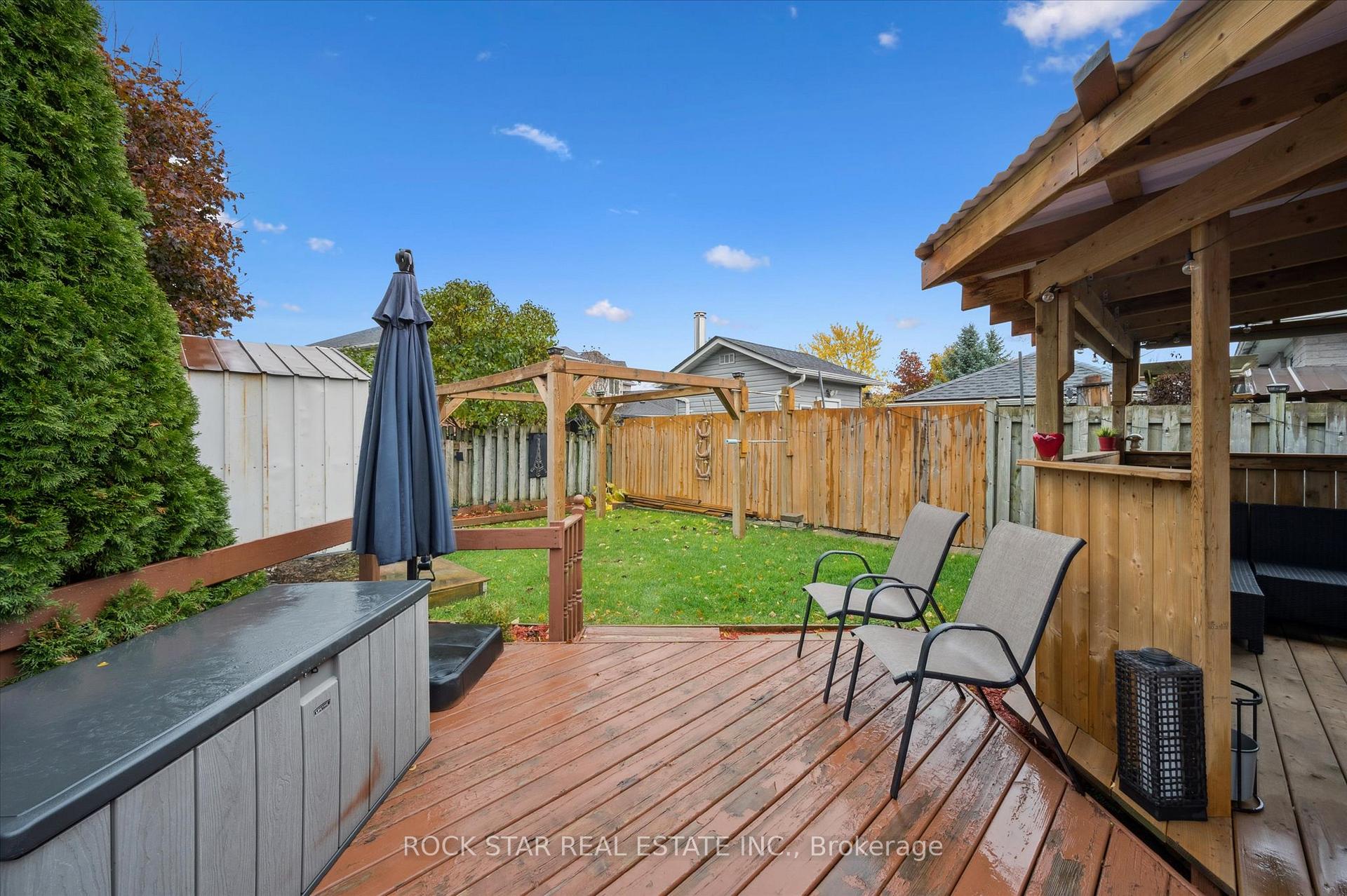 Lovingly maintained and updated Laurentian Hills bungalow! This charming 2+1 bedroom home is ideal for first-time buyers or those looking to downsize without giving up outdoor space. A bright and spacious living and dining area with gleaming hardwood floors welcomes you at the front of the home, leading to an updated kitchen with classic white cabinets and new stainless steel appliances. The two main bedrooms and full bath are tucked away along the back hallway for added privacy.Step through the living room’s sliding doors to your backyard retreat-a fully covered deck with space for outdoor dining and barbecuing, overlooking the kids play set and gardens that frame the fully fenced yard. It’s the perfect spot to relax, entertain, or watch the kids play year-round.The freshly finished lower level expands your living space with a spacious primary bedroom featuring a 3-piece ensuite, a cozy recreation room with electric fireplace, a 2-piece bath, and a flexible office nook. The laundry area includes newer machines and ample storage.Outside, you’ll find a 1.5-car garage and double driveway, offering plenty of parking and storage options. Featuring attractive curb appeal and a central location close to parks, schools, amenities, and easy Highway 8 access, this property perfectly blends lifestyle, convenience, and charm.