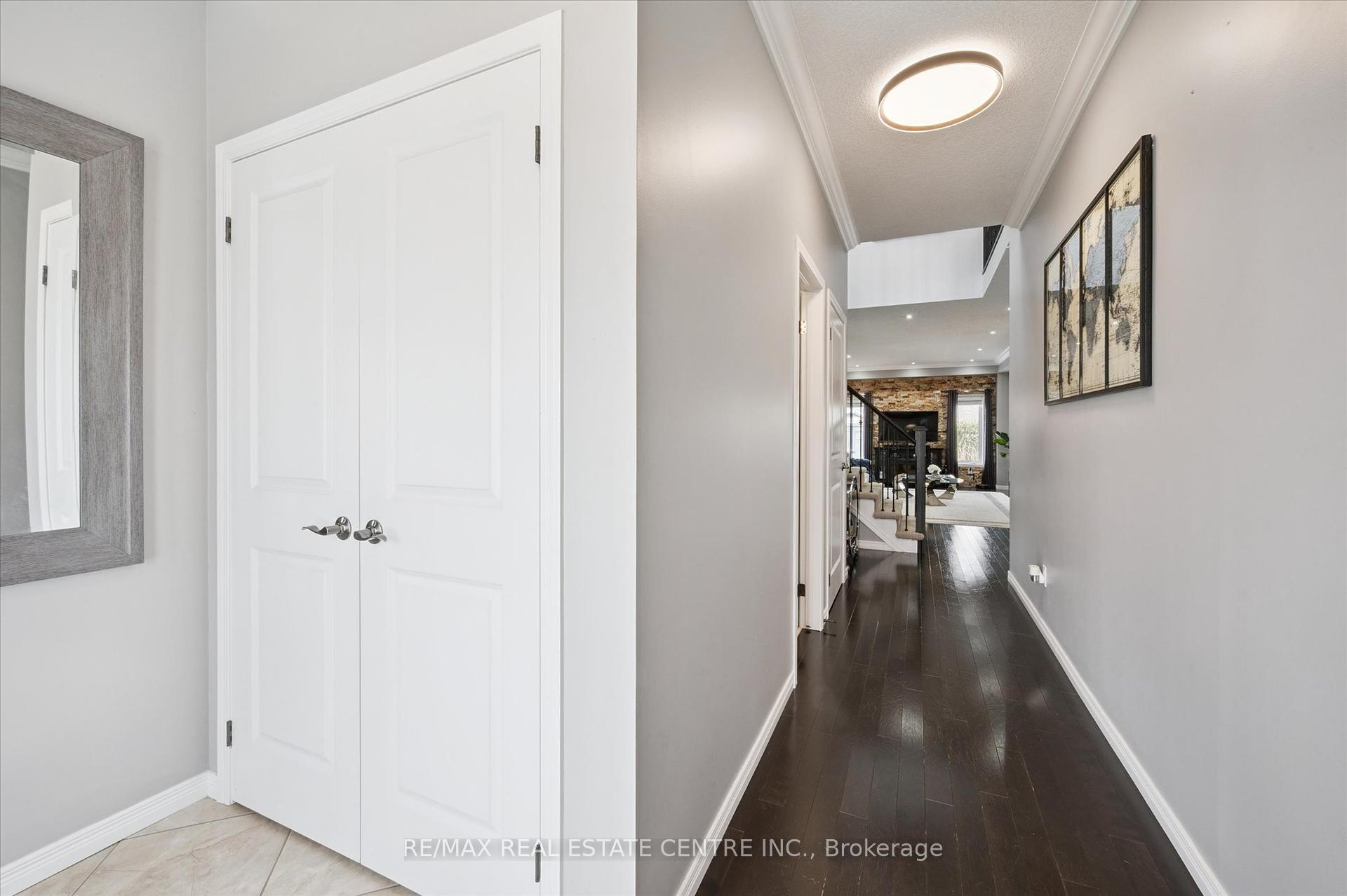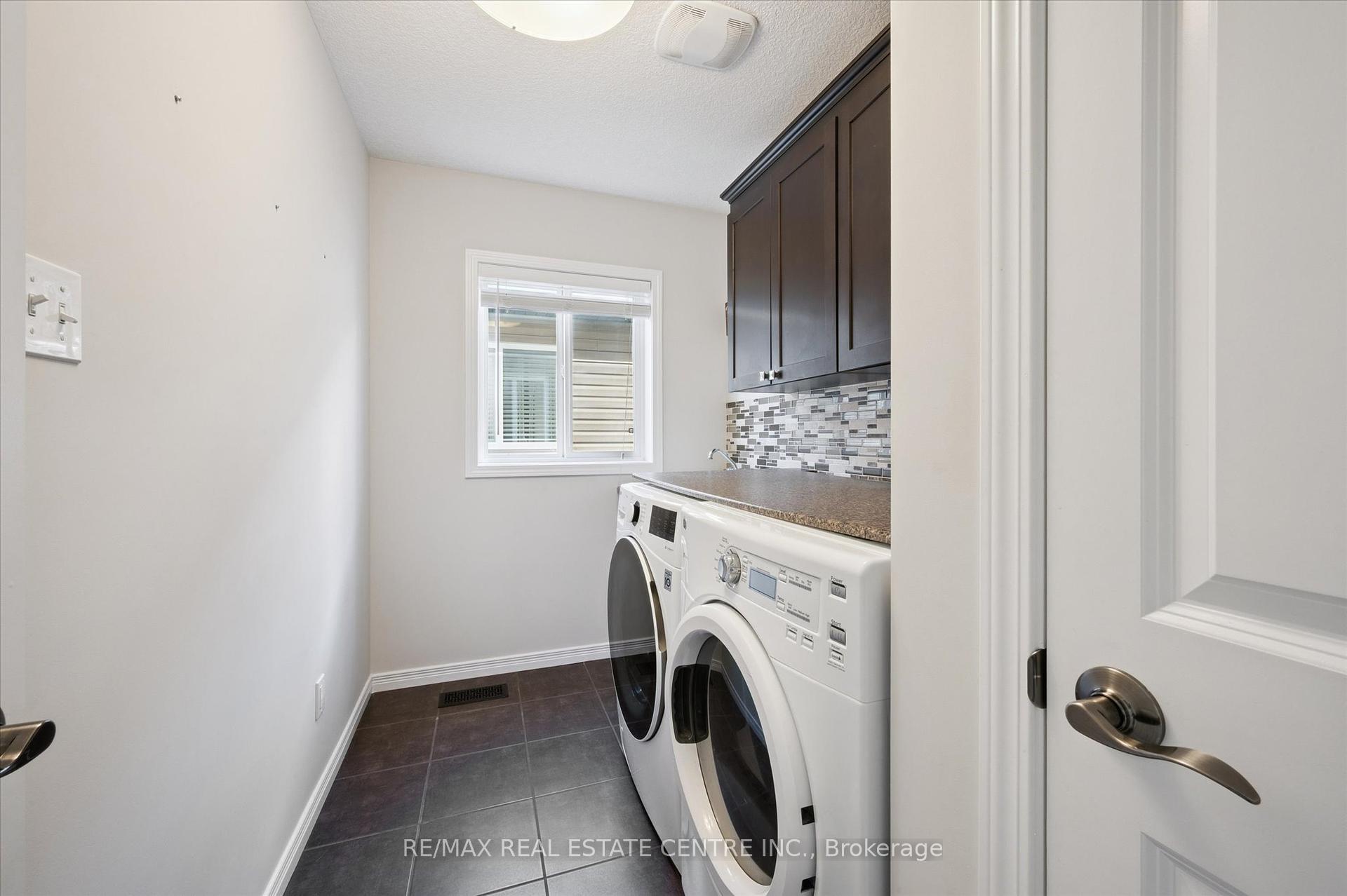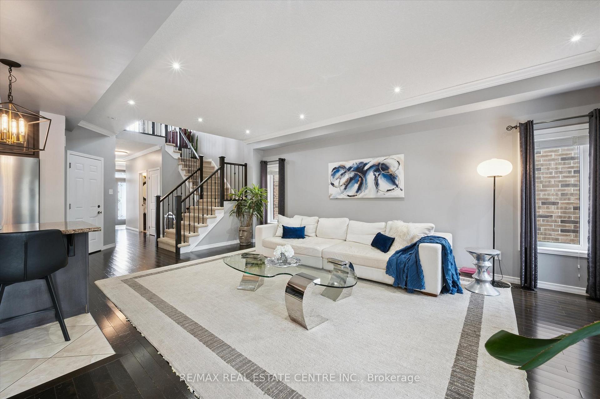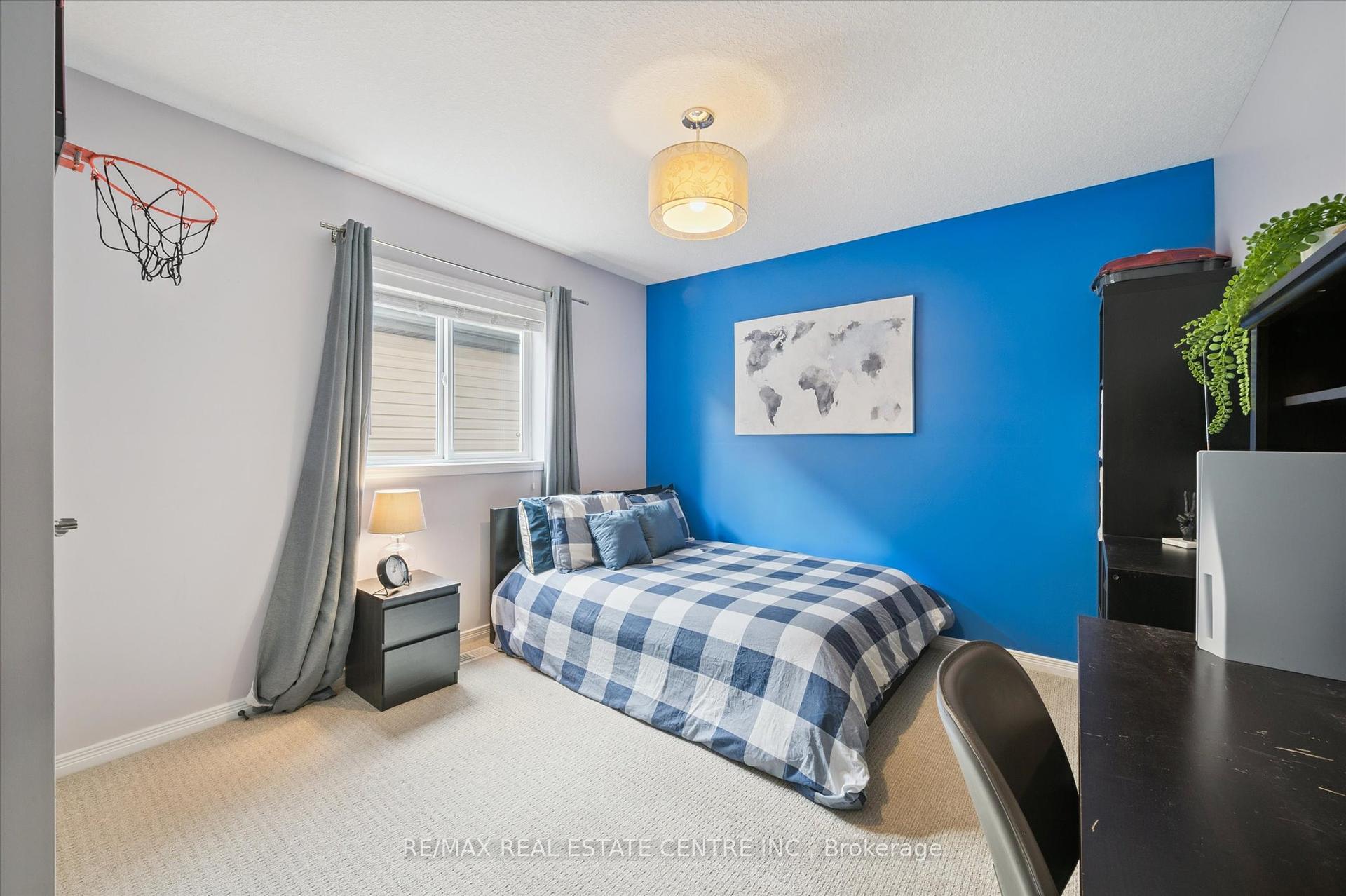 Welcome to Highland Ridge in West Galt! This 3-bedroom, 3-bathroom home offers over 2,279 sq. ft. of living space on a 36 x 105 ft. lot, combining comfort and style inside and out. The redesigned front exterior features a custom front door with upgraded inserts, tumbled stone columns, armour stone steps leading to the covered porch, and perennial gardens framed by interlock french curbs. Step inside to find 9 ft. ceilings, crown molding, pot lighting, and a mix of hardwood and oversized ceramic flooring. The upgraded dark maple kitchen is a standout with extended cabinetry, a walk-in pantry with french door, sit-up island and stainless-steel range hood. The open living and dining area is anchored by a stone accent wall and oversized sliders leading to the fully fenced backyard. Outside, enjoy a low-maintenance space with interlock patio, hot tub, wrought iron gates, and a shed with hydro. Upstairs, a spacious family room with bright windows and wrought iron railings offers the perfect gathering spot. The primary suite features a walk-in closet, crown molding, and a private 3-piece ensuite. Two additional bedrooms, a 4-piece bath, laundry, and large linen closet complete the second floor. Located minutes from downtown Galt, schools, parks, trails, shopping, and golf.