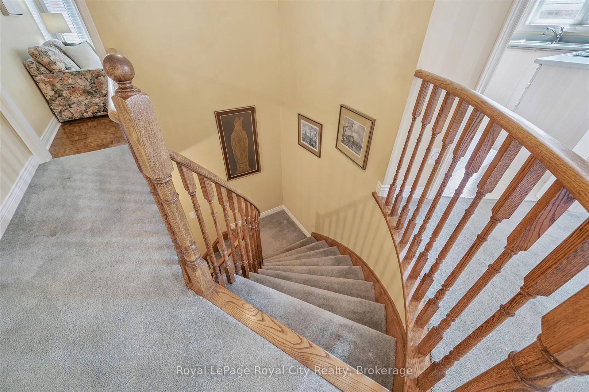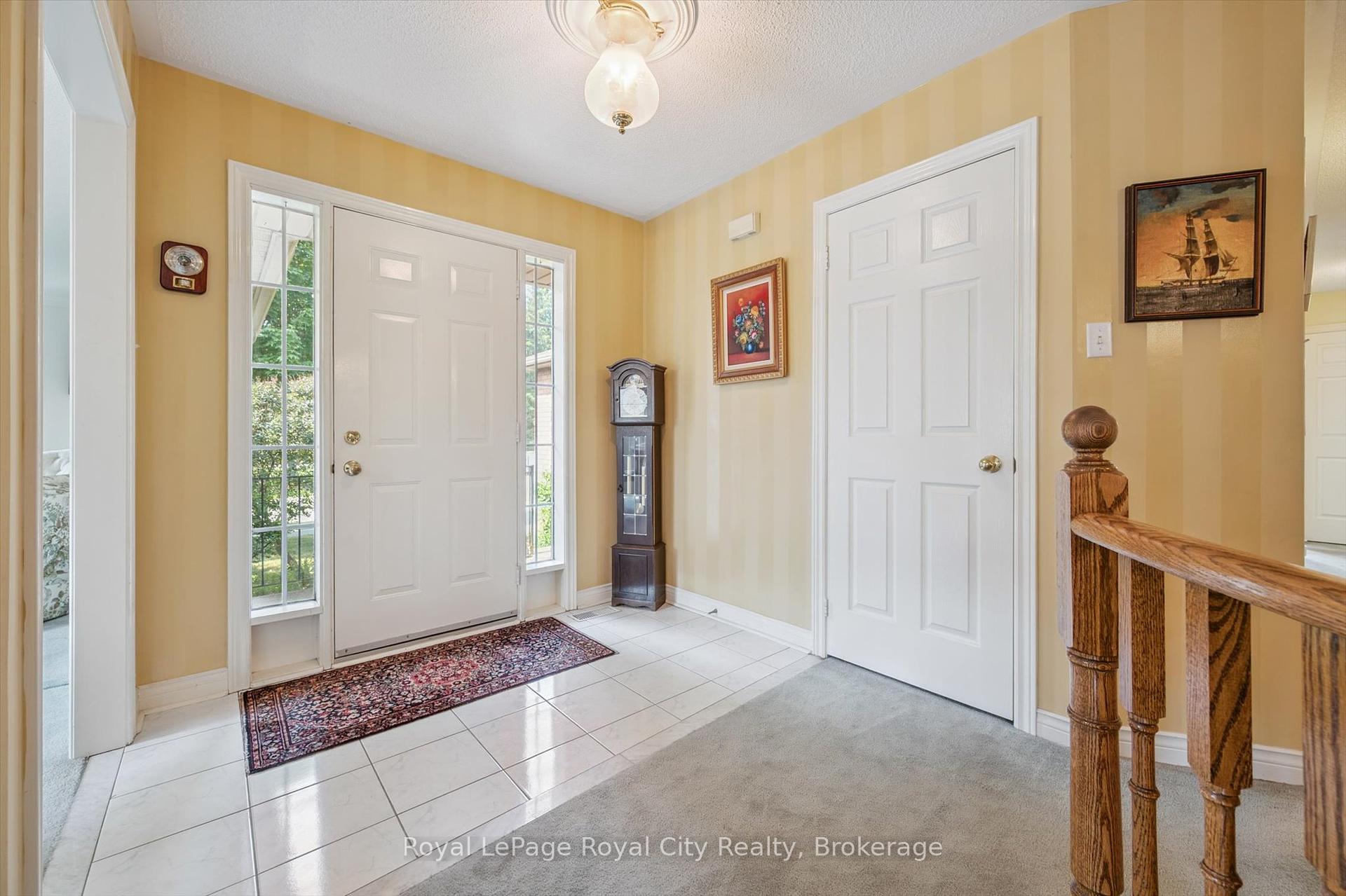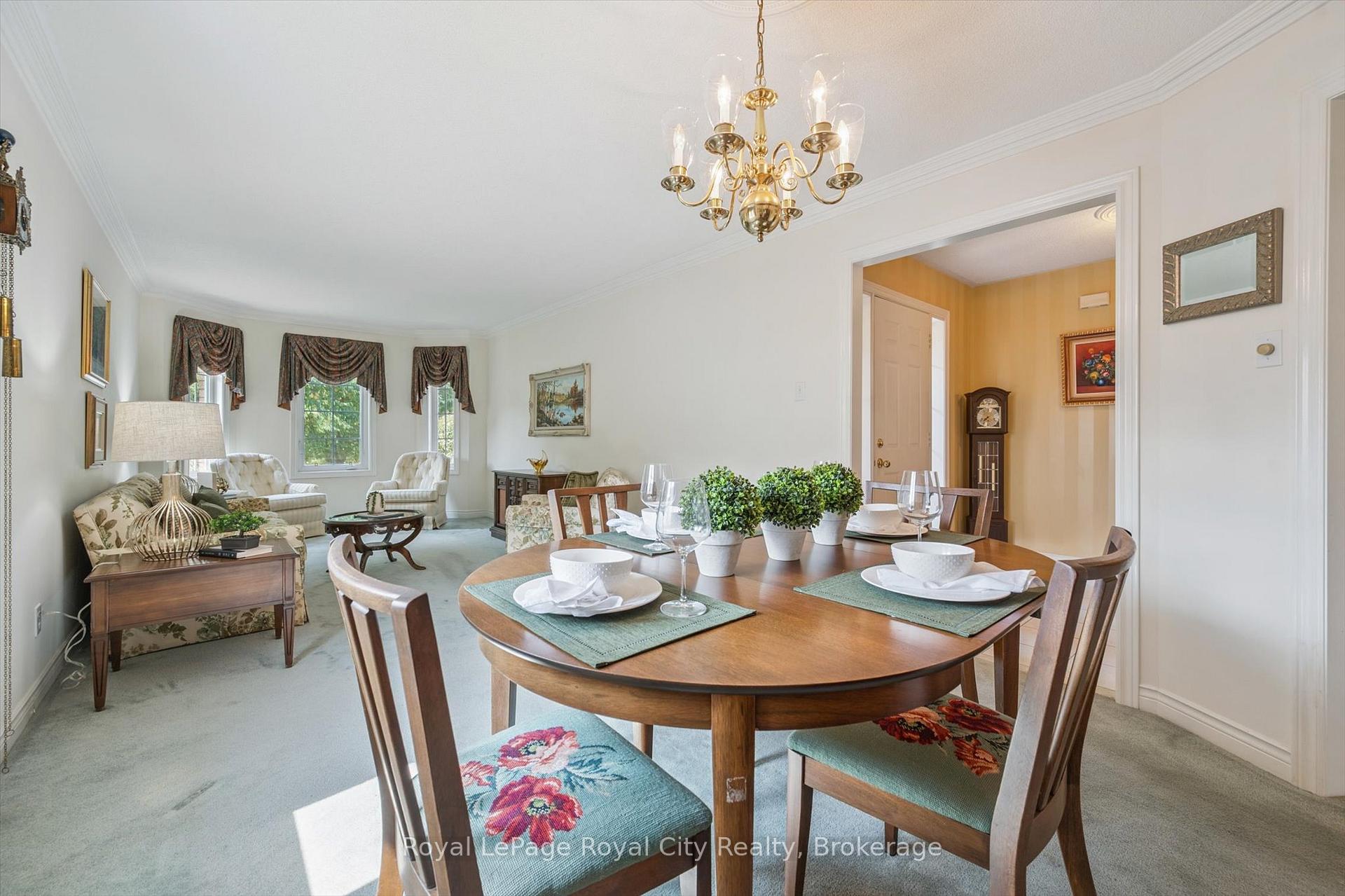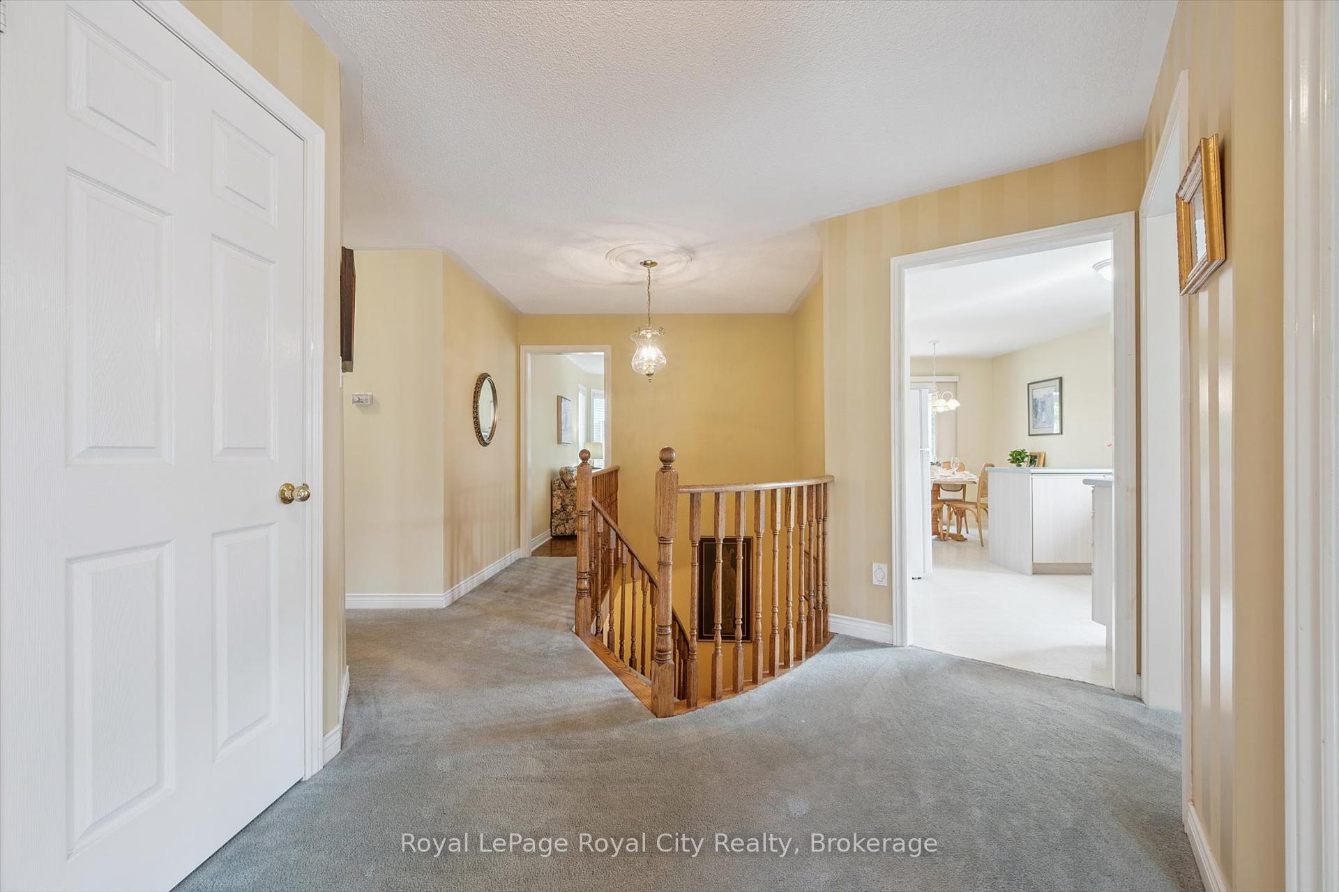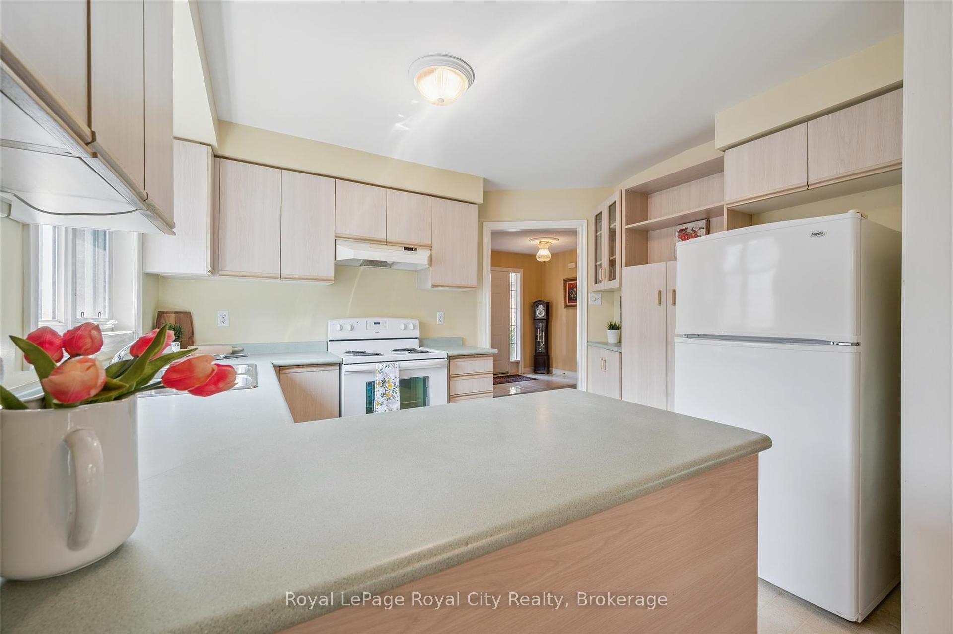 Bring your decorating flair and make this bright, spacious home your own. With an abundance of natural light, this home offers a grand Foyer entrance, featuring an open circular staircase down to the lower level, an elegant Living Room combined with a formal Dining Room area, a cheerful Kitchen with functional layout, a Breakfast Nook and walkout onto the backyard deck. Along side the eat-in Kitchen and looking out into the backyard is the relaxed Family Room space, with gas fireplace. Down the wide hallway, and through the double doors you will find the Primary Bedroom with 3 piece Ensuite, two more bedrooms complemented by a main-floor bathroom complete this level. The lower level is fully studded and insulated but left unspoiled for your future plans. The double attached garage with direct lower level access adds convenience and functionality. Imagine the posibilities, book your visit this beautiful Elora bungalow today.