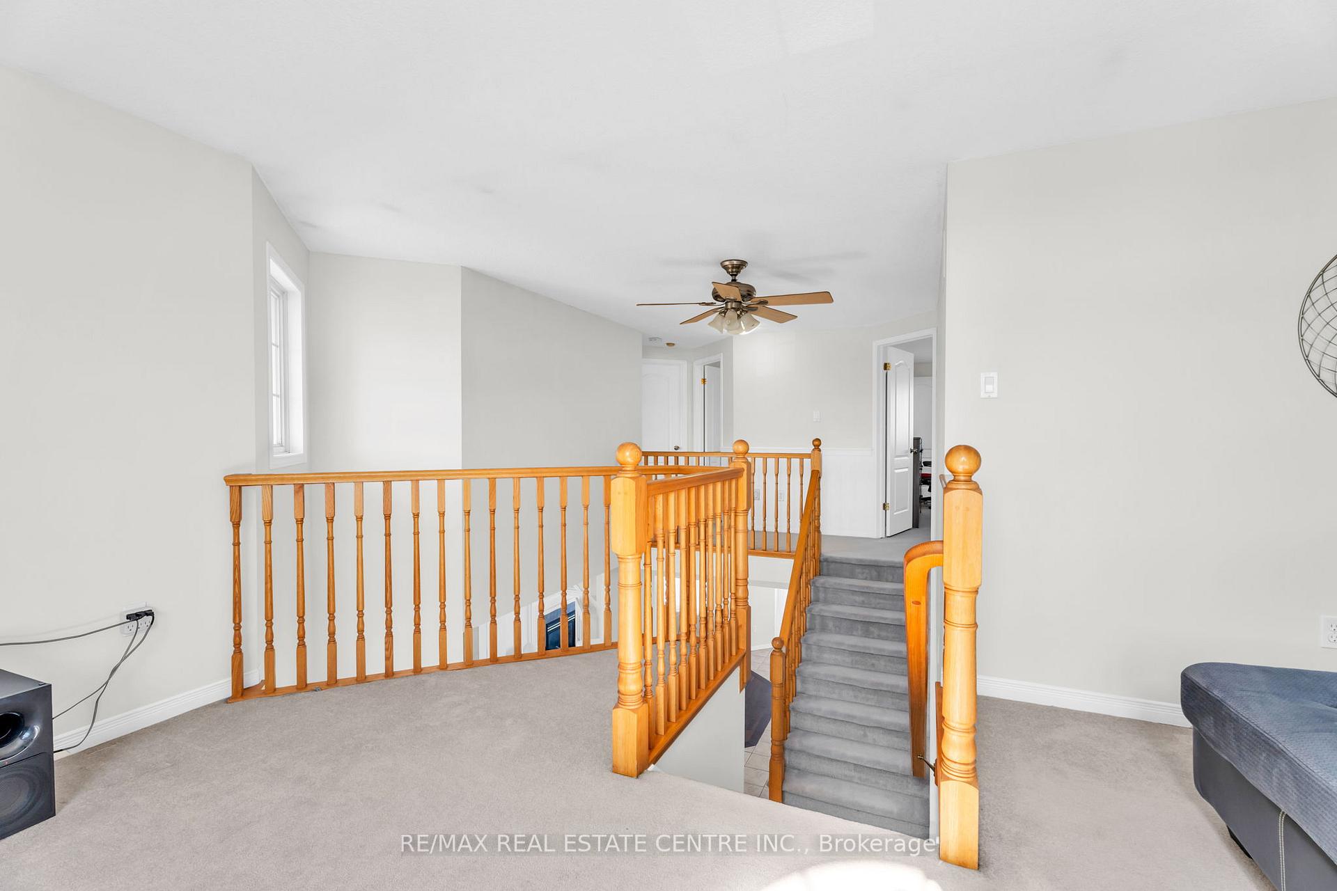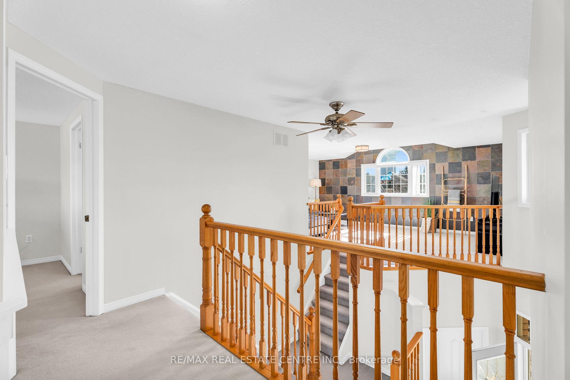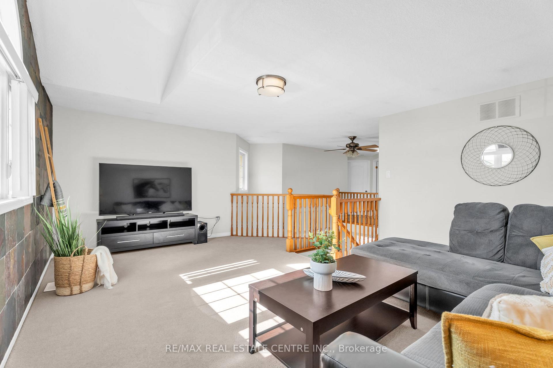 Welcome to 27 Cameron Court, an exceptional family home situated in Orangeville’s sought after west end. With 1,990 sq ft of above grade living space, this home has plenty of room for the entire family. Step inside to a bright and thoughtfully designed main level, featuring a spacious kitchen complete with granite countertops, a centre island, stylish backsplash, and stainless steel appliances. The sun filled breakfast area overlooks the large backyard and offers a walkout to the elevated deck. The living room showcases hardwood flooring and a gas fireplace, and is connected to a main floor office, ideal for today’s work from home lifestyle. A convenient two piece powder room, laundry room, and direct access to the garage complete this level. Upstairs you’ll find three generously sized bedrooms, with the primary bedroom featuring a walk in closet and private four piece ensuite. An additional upper level family room enhances the homes functionality, providing even more valuable living space. The unfinished walkout basement presents the opportunity to customize to your needs, with direct access to the backyard and endless potential. The backyard is a standout feature, with great views and an abundance of outdoor space for entertaining.