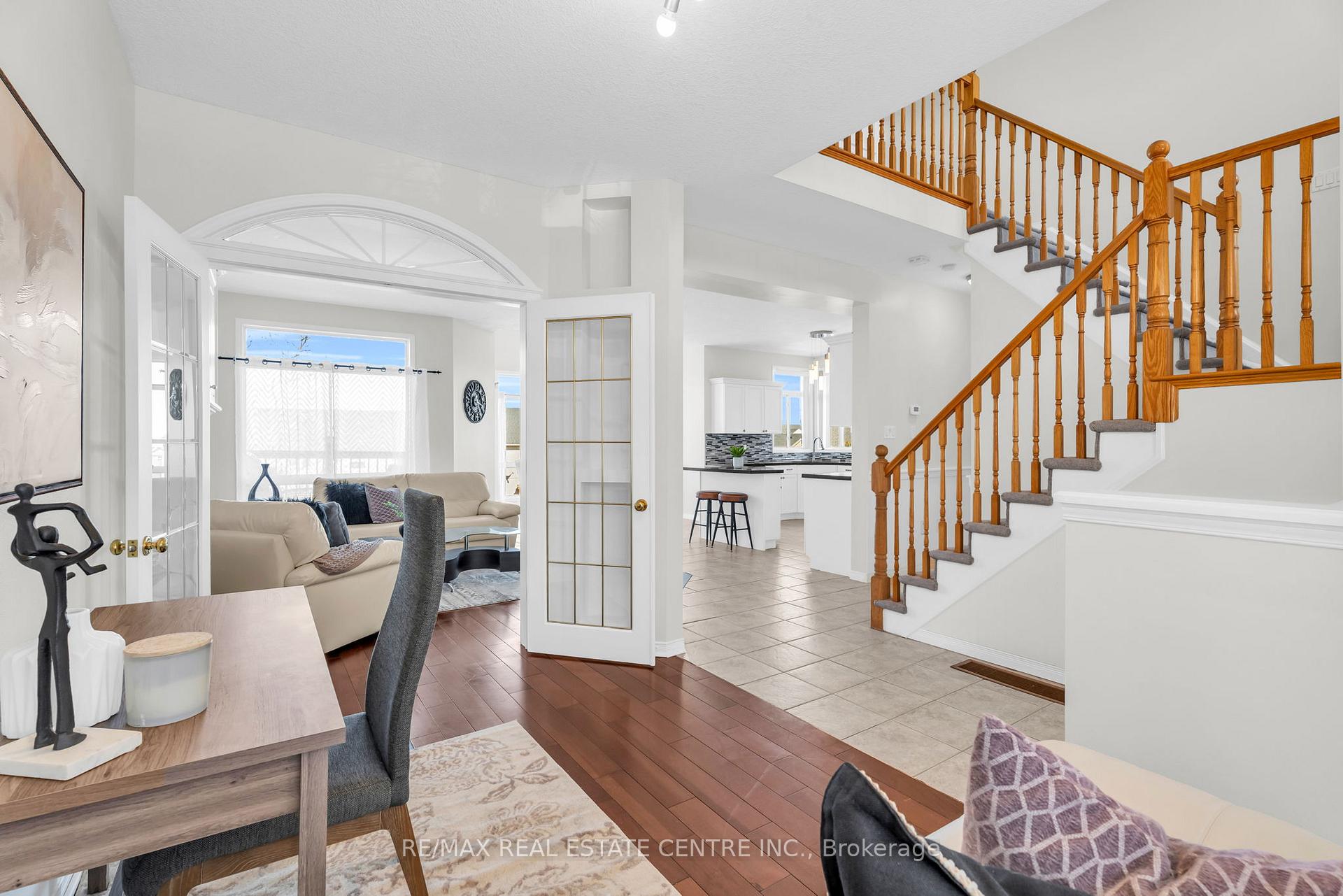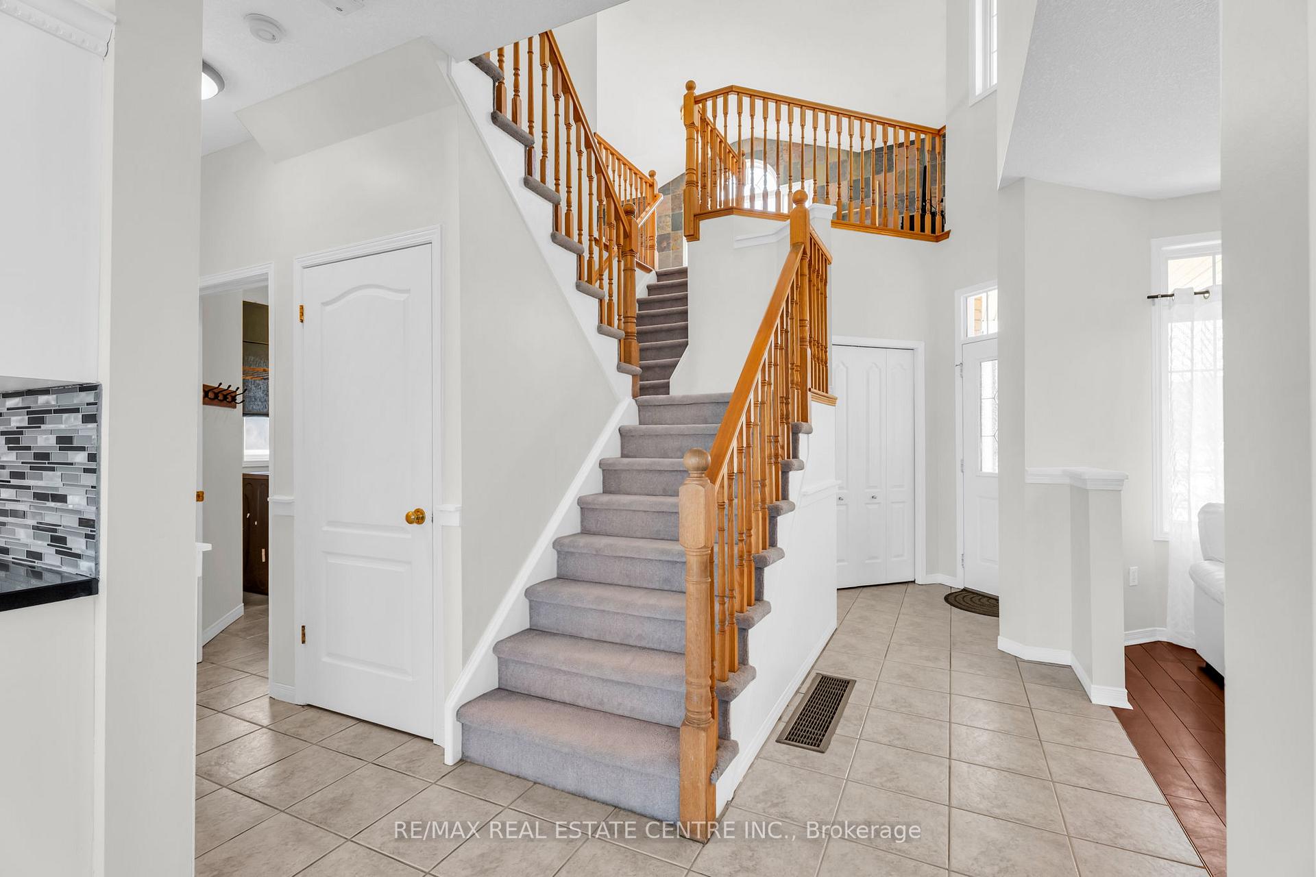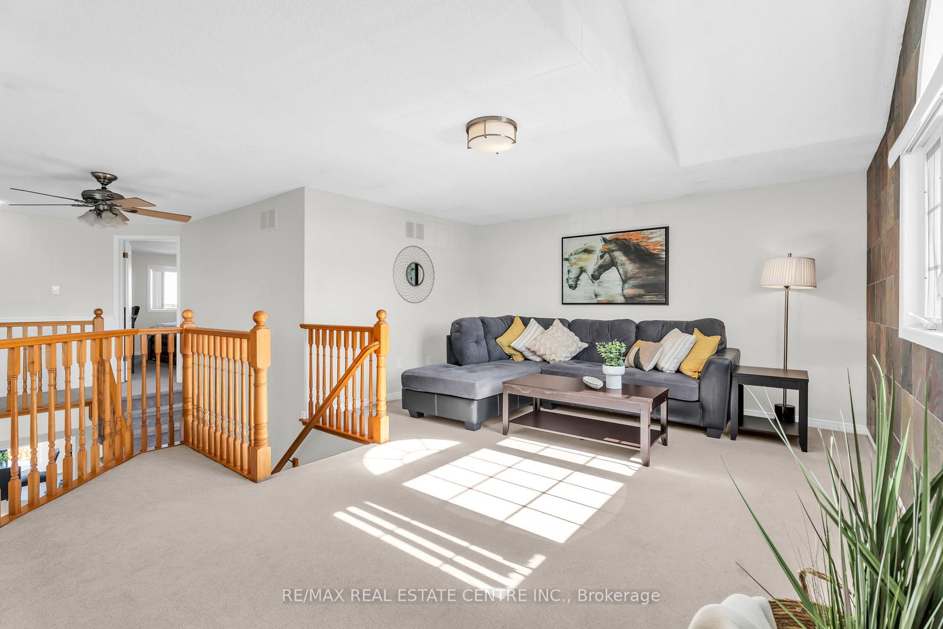 Welcome to 27 Cameron Court, an exceptional family home situated in Orangeville’s sought after west end. With 1,990 sq ft of above grade living space, this home has plenty of room for the entire family. Step inside to a bright and thoughtfully designed main level, featuring a spacious kitchen complete with granite countertops, a centre island, stylish backsplash, and stainless steel appliances. The sun filled breakfast area overlooks the large backyard and offers a walkout to the elevated deck. The living room showcases hardwood flooring and a gas fireplace, and is connected to a main floor office, ideal for today’s work from home lifestyle. A convenient two piece powder room, laundry room, and direct access to the garage complete this level. Upstairs you’ll find three generously sized bedrooms, with the primary bedroom featuring a walk in closet and private four piece ensuite. An additional upper level family room enhances the homes functionality, providing even more valuable living space. The unfinished walkout basement presents the opportunity to customize to your needs, with direct access to the backyard and endless potential. The backyard is a standout feature, with great views and an abundance of outdoor space for entertaining.
