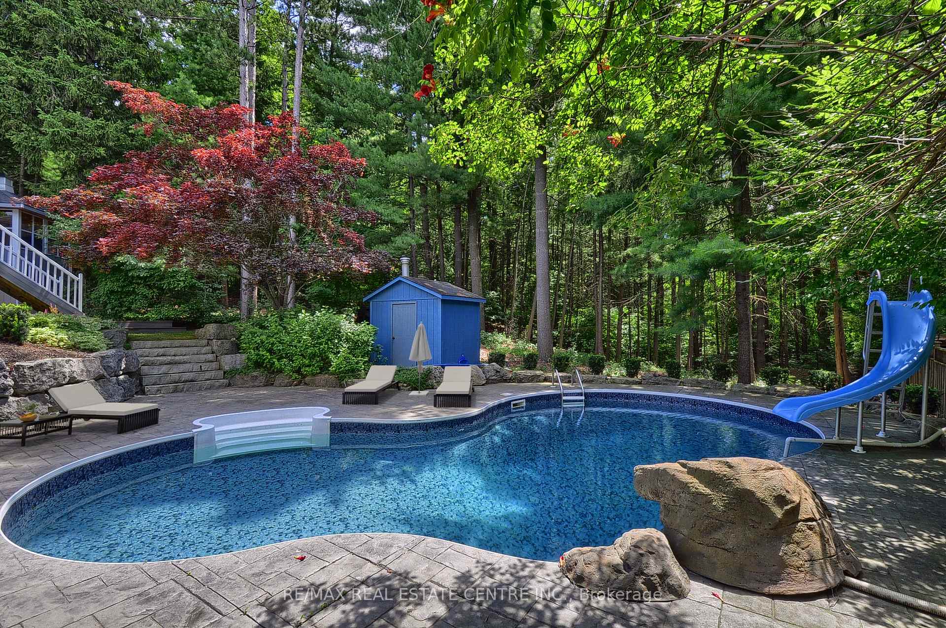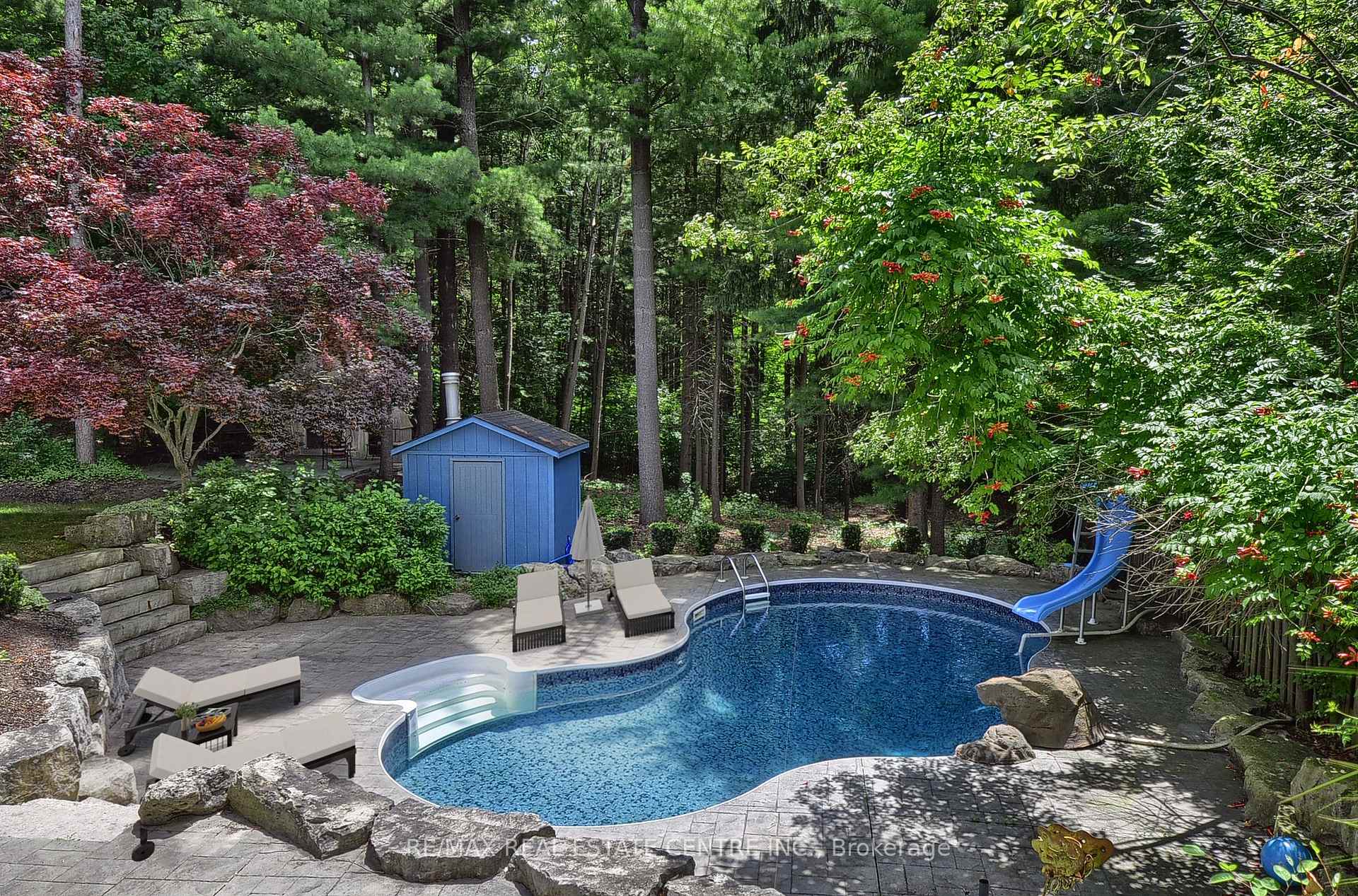 Welcome to this truly one-of-a-kind luxury bungalow in Wyldwoods – one of Doon’s most exclusive and tightly held enclaves. Tucked away on a hidden private court where homes are rarely offered, this extraordinary property sits on an expansive lot backing onto protected heritage land – offering unmatched privacy, serenity, and the peace of mind that no homes are behind you.Surrounded by mature trees, the backyard is a private resort-style oasis with an in-ground pool, maintenance-free composite deck with bridge to a fully finished outdoor living area, and French doors from both the primary bedroom and kitchen. A secluded patio nestled in the trees features a wood-burning fireplace.This custom-built bungalow has been fully transformed within the last three years, showcasing Venetian plaster walls and meticulously sourced finishes. The main level offers three spacious bedrooms, two with private ensuites plus a third full bathroom. The primary ensuite features imported artisan tiles from Spain, a soaker tub, oversized glass shower, and granite counters.The showpiece kitchen includes custom built-ins, an island table with attached wine wall, and a one-of-a-kind ceiling mural.The fully finished walk-out basement opens to the pool and features a massive media room, spa-inspired bathroom with enclosed steam shower, and a complete private apartment with separate garage walk-down entrance – ideal for multigenerational living or additional income.Three gas fireplaces with distinctive stone mantels. Dream triple garage with wall-mounted whisper-quiet openers and hydraulic car lift/hoist.Updates: AC (2024), pool heater (2019), pool liner (2018), pool pump (2010).A rare offering combining privacy, prestige, and resort-style living in a location that simply cannot be replicated.