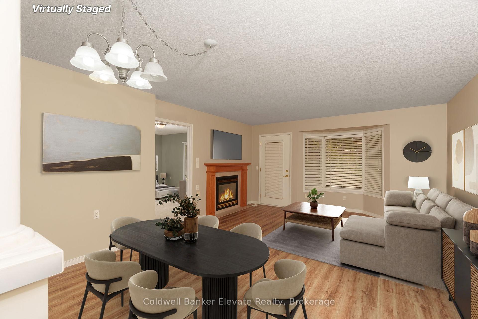 Welcome to Trinity Village Terrace, a 1,184 sq. ft. life lease townhome featuring 2 bedrooms and 3 bathrooms, all situated on a single, accessible level. The freshly painted interior, including the garage, provides a clean and modern feel throughout. The open-concept layout includes vinyl flooring in the living and dining area and large windows that create a bright, welcoming atmosphere. Enjoy added comfort with a gas fireplace in the living room and the convenience of a Stannah Canada stairlift for easy accessibility. Main level laundry enhances everyday practicality. The professionally finished basement, adding approximately 1,115 sq. ft., is ideal for family visits or a caregiver suite, featuring a full kitchen, living room, dining area, den, and a 3-piece bathroom. Ideally located just 2 minutes from Fairview Park and 5 minutes from Fairway Station, with pharmacies, grocery stores, and shopping nearby, this property perfectly combines comfort, functionality, and accessibility.