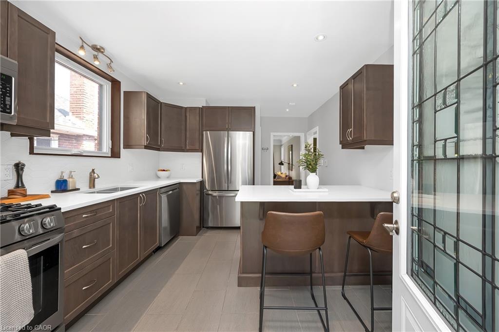 Welcome to 273 Bold Street, a meticulously maintained bungalow nestled in the heart of Kirkendall, just steps from vibrant Locke Street. This recently updated home seamlessly blends modern upgrades with classic charm. The main level features an upgraded kitchen with quartz countertops, in-floor heat, and stainless-steel appliances. The main level also includes a spacious living room and two generously sized bedrooms, both with ample closet space, and refinished hardwood floors. A separate entrance leads to the beautifully finished lower level, offering a full kitchen, a comfortable living area, a bedroom, and a stylish 3-piece bathroom. Outside, the fully fenced backyard has been professionally maintained, boasting a covered patio, raised garden beds, and an elegant interlocking stone patio, perfect for outdoor gatherings. Completing the property is a private driveway with ample parking space. Situated in one of Hamilton’s most sought after neighbourhoods, this move-in-ready home offers an exceptional opportunity to enjoy both convenience and charm. Don’t miss out—schedule your viewing today!