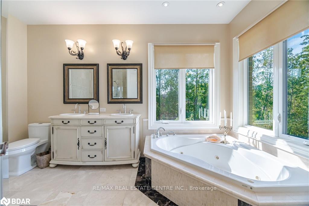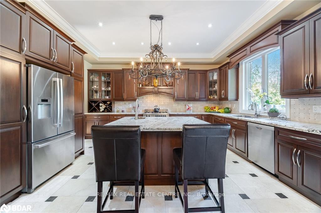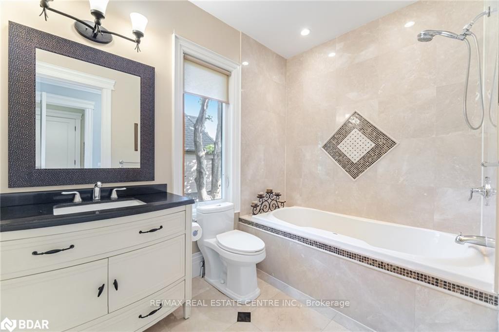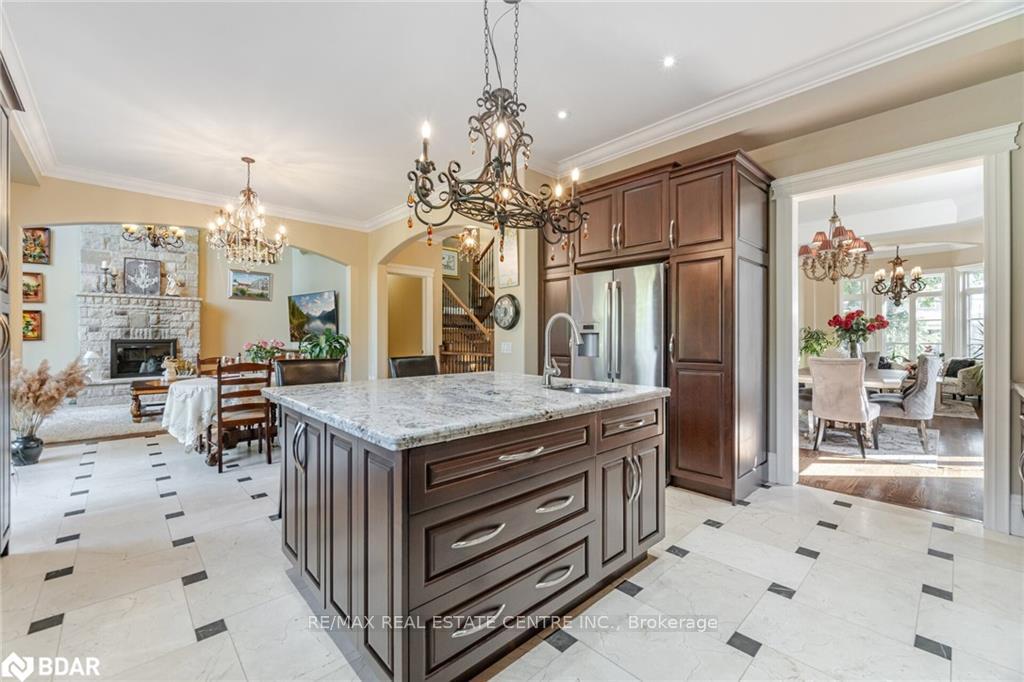 Welcome to this exquisite custom-designed French château-style residence, nestled on a sprawling 74 by 158-foot lot in the heart of Old Milton. Blending timeless elegance with modern luxury, this beautifully crafted home offers over 5,400 square feet of living space, including 3,858 square feet above grade, plus a fully finished 2-bedroom basement apartment with a separate entrance – perfect for multigenerational living or rental potential. Thoughtfully designed for those who value superior craftsmanship, the home features a full brick exterior with a striking stone front façade, a custom solid wood front door, and a durable 50-year roof. Inside, 10-foot ceilings on the main floor, and 9-foot ceilings on both the second level and basement create a sense of openness. The grand family room showcases a soaring 20-foot open-to-above ceiling, centered around a wood-burning fireplace with a beautiful natural stone mantel. A stunning 4′ x 4′ skylight illuminates the solid wood floating staircase, complementing the oak hardwood floors and the natural stone tiles in the foyer and kitchen. The bathrooms are marble-finished with heated floors. Extensive custom millwork, solid wood doors, and thoughtfully designed open-concept living spaces enhance the home’s warmth and sophistication. The chef-inspired kitchen is a culinary masterpiece, outfitted with premium appliances, custom cabinetry, and a spacious central island ideal for both everyday living and entertaining. The private backyard is surrounded by lush greenery and features a spacious 400-square-foot deck and above ground swimming pool, perfect for outdoor entertaining or quiet relaxation. Situated in a prestigious and tranquil neighborhood, this residence offers an unmatched lifestyle of comfort, luxury, and convenience, with close proximity to schools, charming shops, fine dining, and quick access to a major highway.