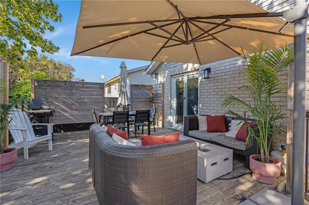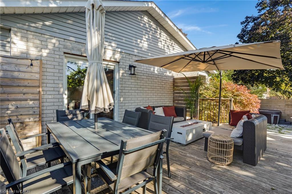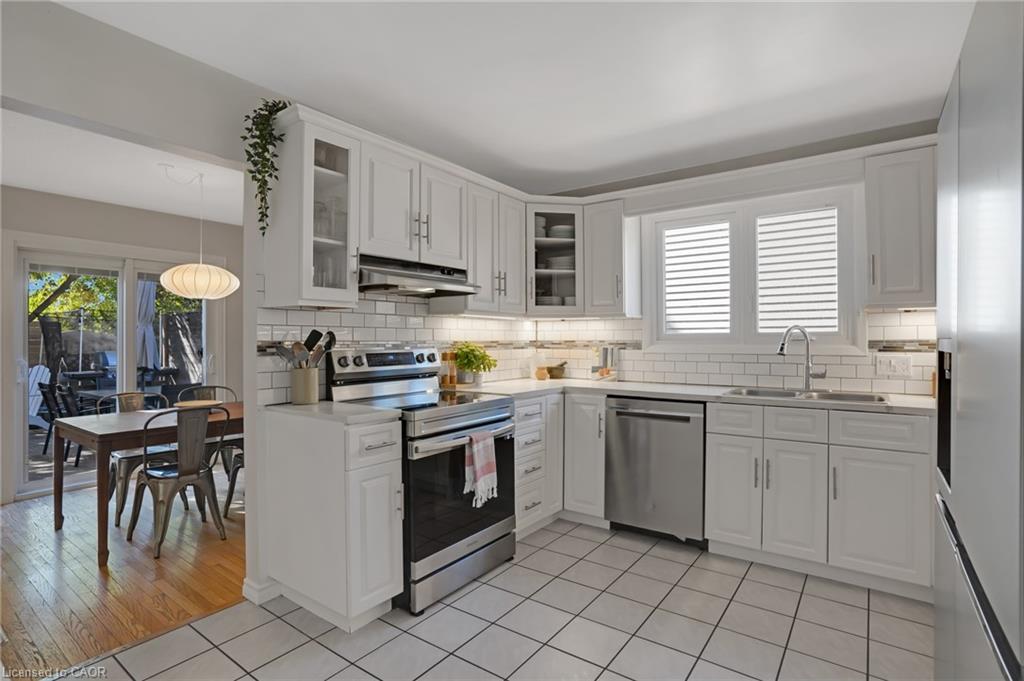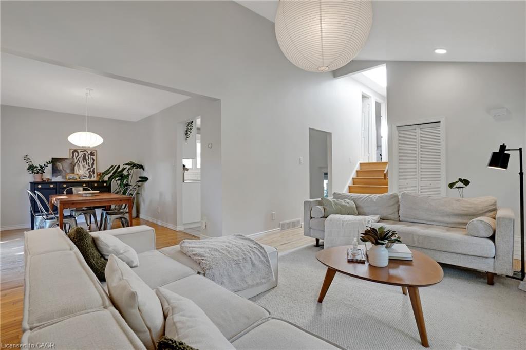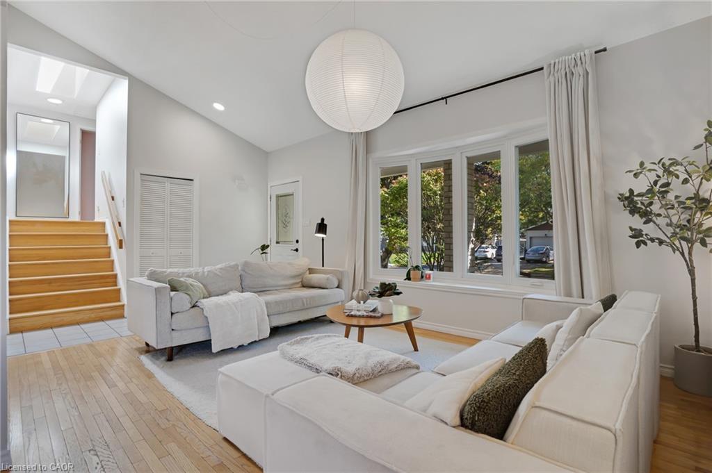 Welcome to 276 Camille, a bright and airy 3 bed 2 bath family home located in the highly sought after neighbourhood of Lexington/Lincoln Village in Waterloo. Step inside to cathedral ceilings, plenty of natural light with lots of large windows and hardwood floors in the stunning living room. The beautifully updated kitchen has newer stainless steel appliances, subway tile backsplash and opens up to the dining room with sliders to a huge deck and fully fenced, private yard where you can and enjoy lounging, BBQs and your hot tub! Up the extra wide stairs you will find 3 spacious bedrooms, a skylight, 4 pce main bathroom and double closets in the primary. On the lower level you will love the cozy family room with a gas fireplace with floor to ceiling brick mantel, inside entry from garage as well as a side door and 2 pce bathroom. Down one more level is a fully finished rec room complete with a dry bar and plenty of storage space. Plenty of updates including furnace (2020) and windows (2022) Close to Rim Park, Groceries, Transportation, Schools and the Expressway! Located extremely close to the expressway, 5 mins to Conestoga college and 8 mins to both UW and WLU, homes for sale in this neighbourhood do not last long!