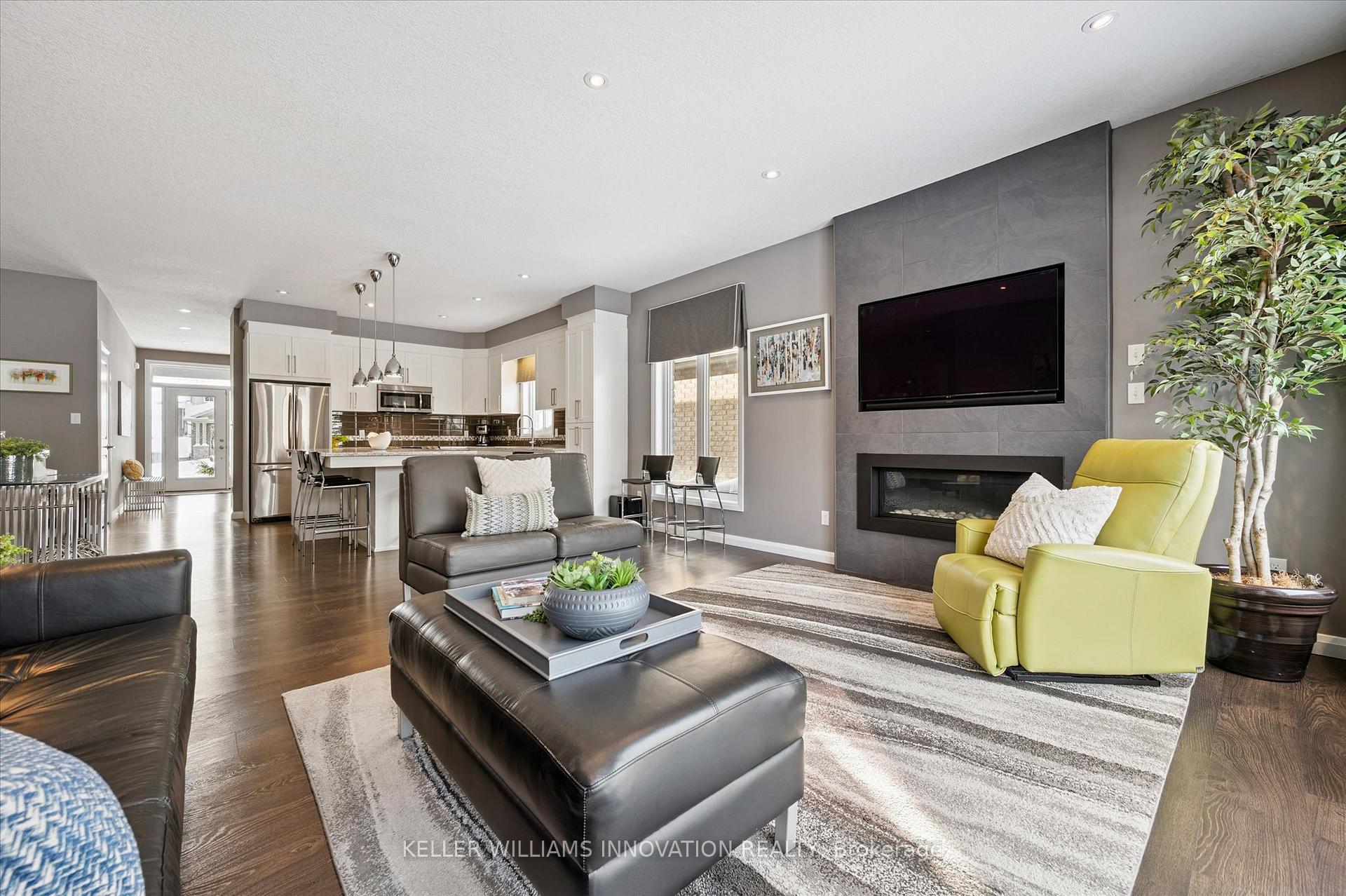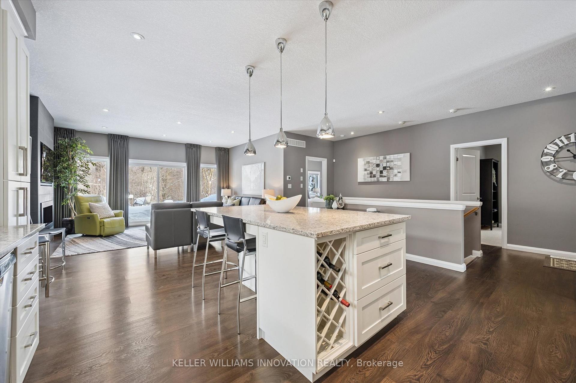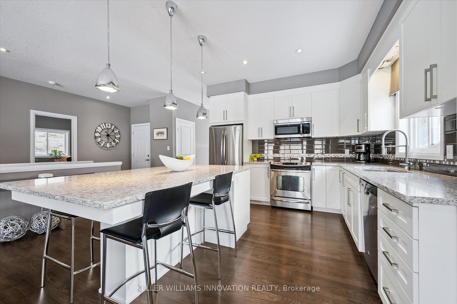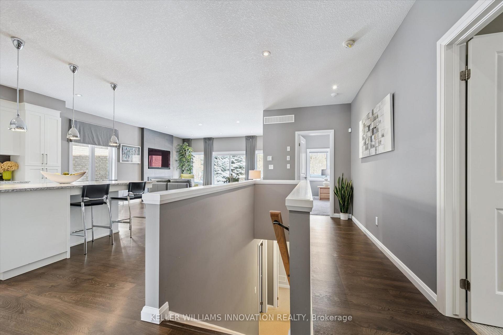 This beautiful stone and brick, 2+1 bedroom bungalow backs onto a protected forest and offers more than 1754 sq ft of total finished living space. Enter through the front foyer, with an adjacent formal dining room with an extra large window looking out onto the front porch. Don’t need a formal dining room? This would be a perfect home office or living room. Head past the 2 piece powder room and into the modern open concept kitchen and great room. The kitchen’s ample cupboard space, wine rack, oversized island and built-in appliances, makes this space the heart of the home. The great room features plenty of natural light and an impressive custom gas fireplace. The rear sliding doors lead out to the backyard, overlooking the private green garden and trees. The large 2 tiered back deck has a BBQ line and is perfect for those summer family gatherings! The main floor primary bedroom has 2 closets and a 4 piece ensuite with walk-in shower and a freestanding bathtub. There is one additional bedroom found on the main floor. The partially finished basement features a large bedroom and 4 piece bathroom. If you are looking for separate living quarters for additional family members, the unfinished half of this basement is the ideal opportunity to design exactly what works for your needs. Located in a great location, close to the playground at Mountain Holly Park and the Geo Time Trail. This home has easy access to The Boardwalk, Costco, HWY 8, Laurel Creek and more!